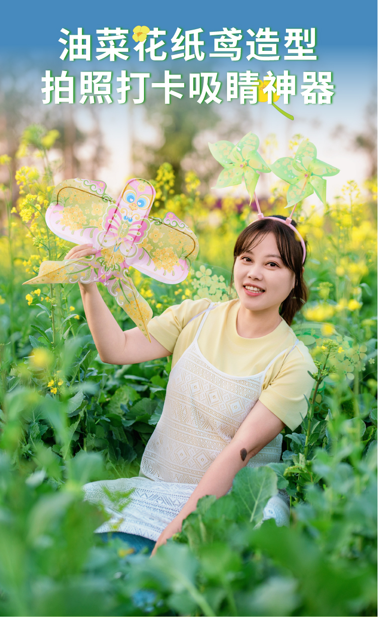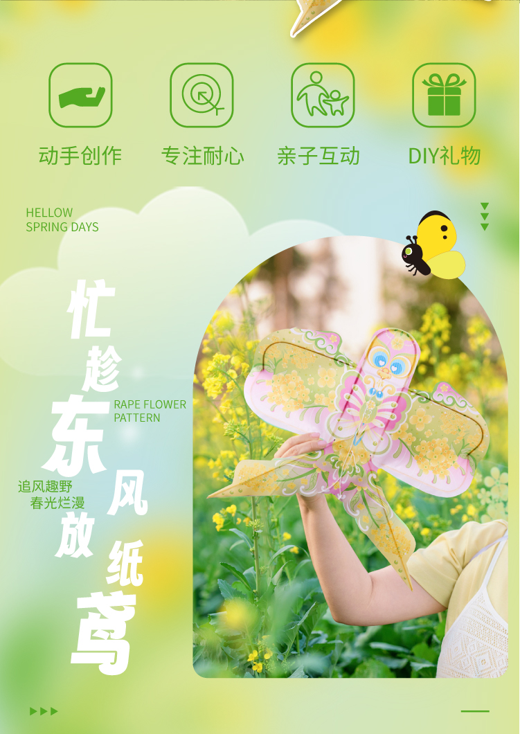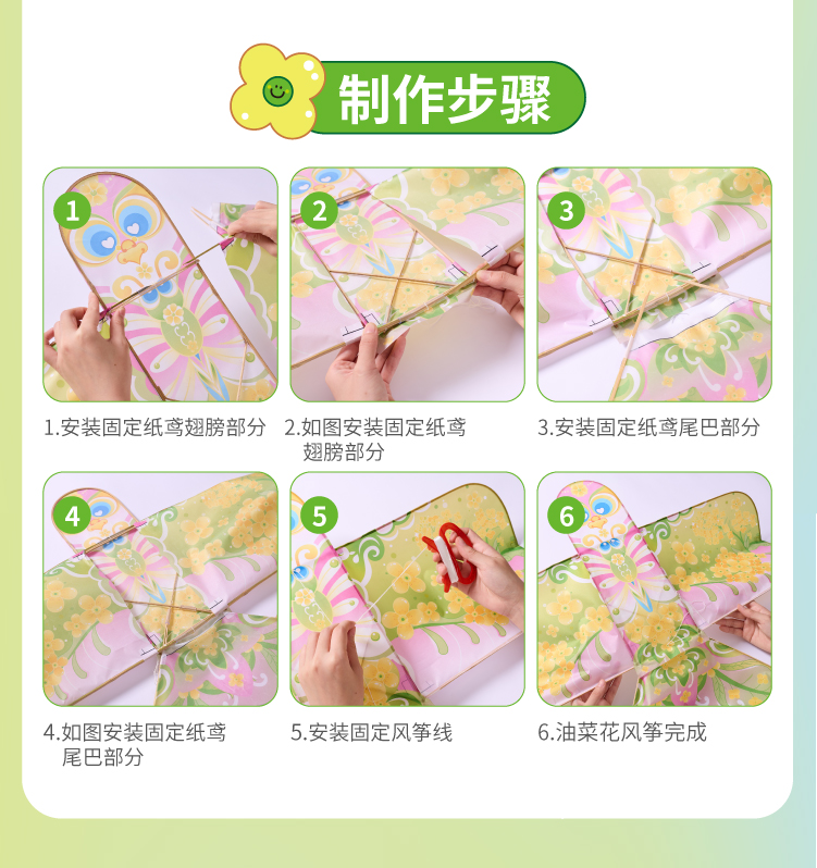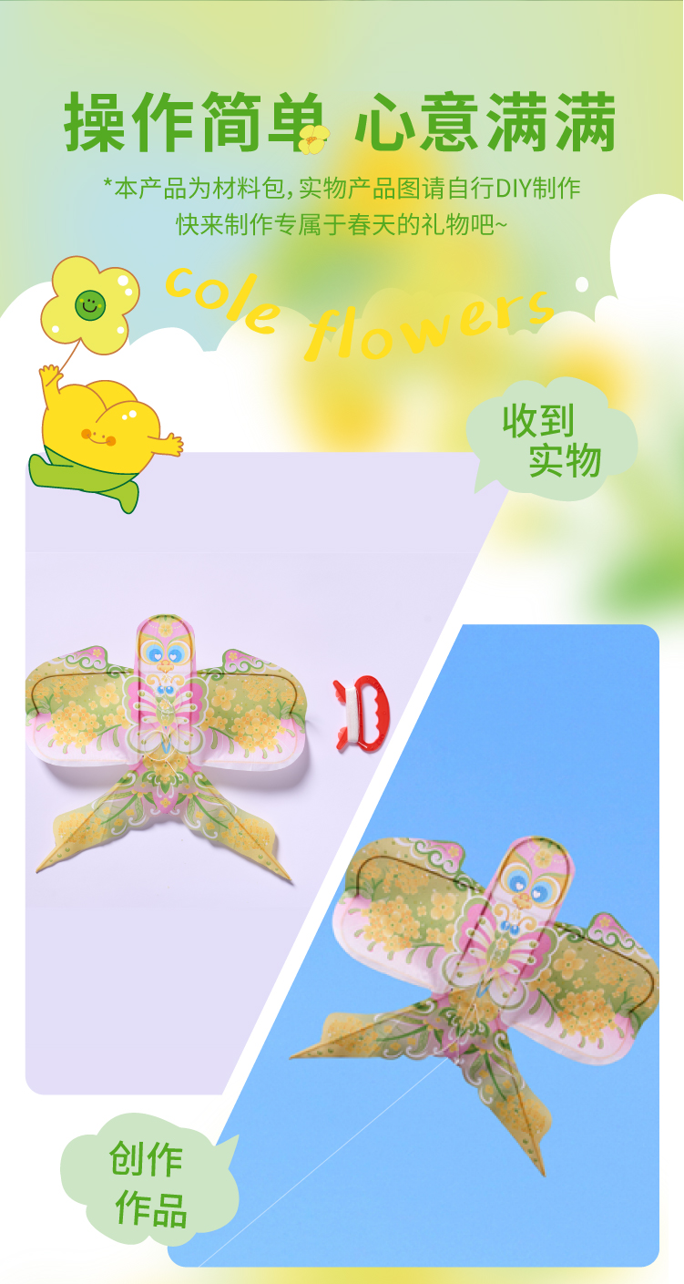 户外春天油菜花风筝手工diy微风易飞儿童制作材料包纸鸢手持潍坊