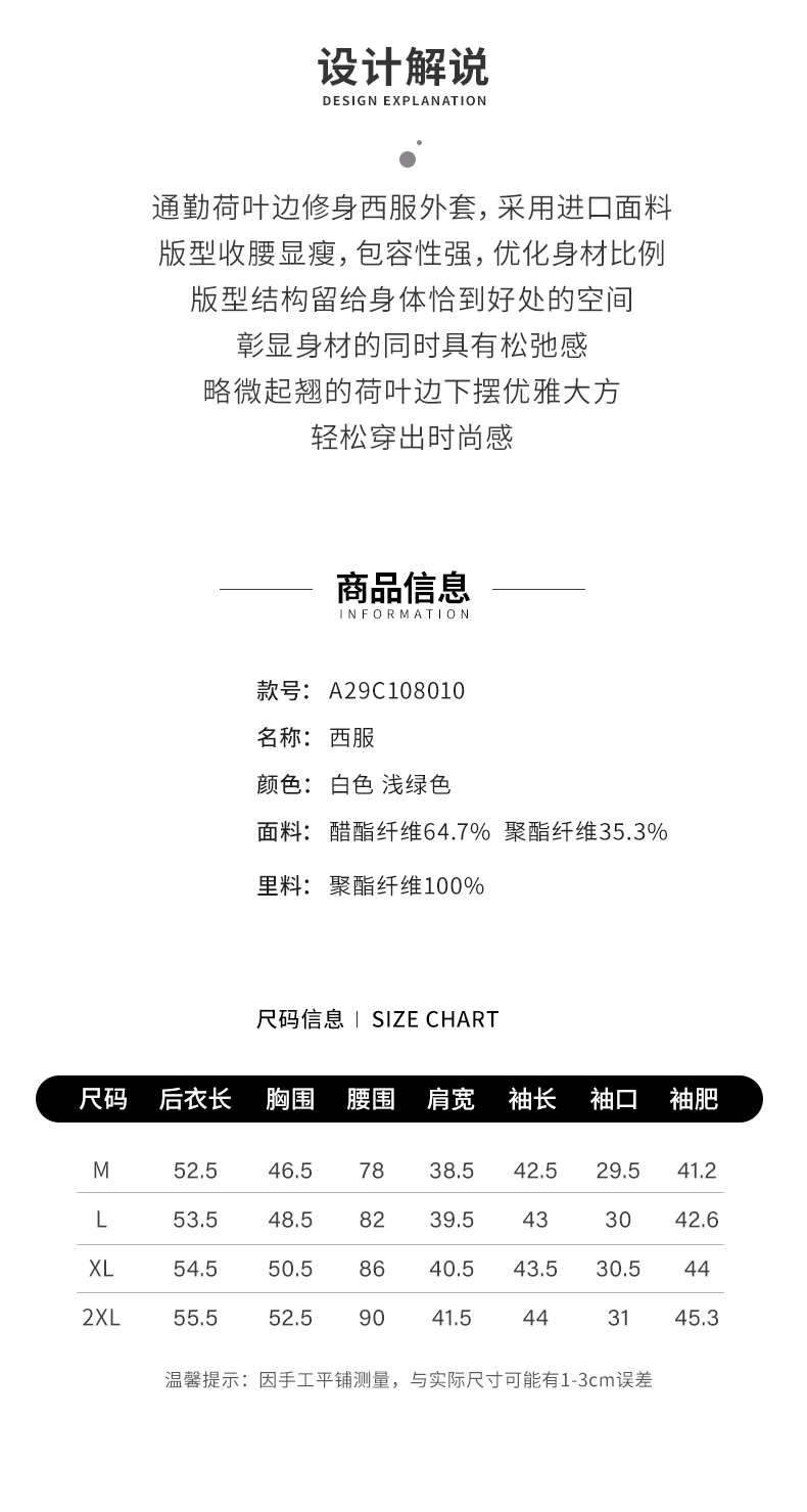【商场同款】阿菁娜春季新款通勤荷叶边西服外套A29C108010