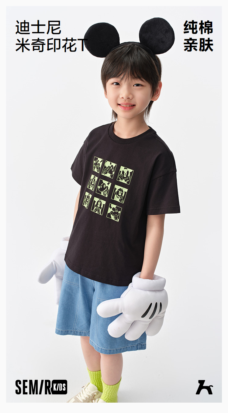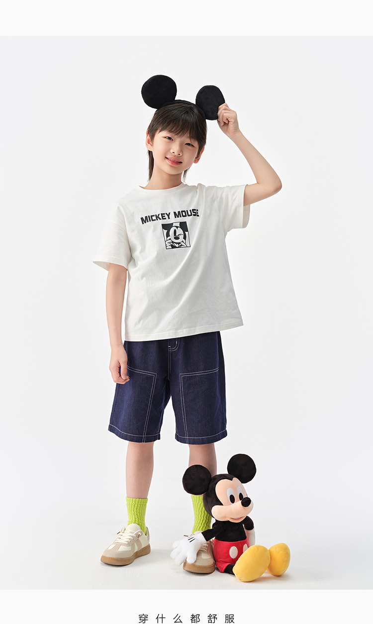 【迪士尼IP】森马儿童短袖T恤2025新款纯棉上衣米奇印花男童夏装