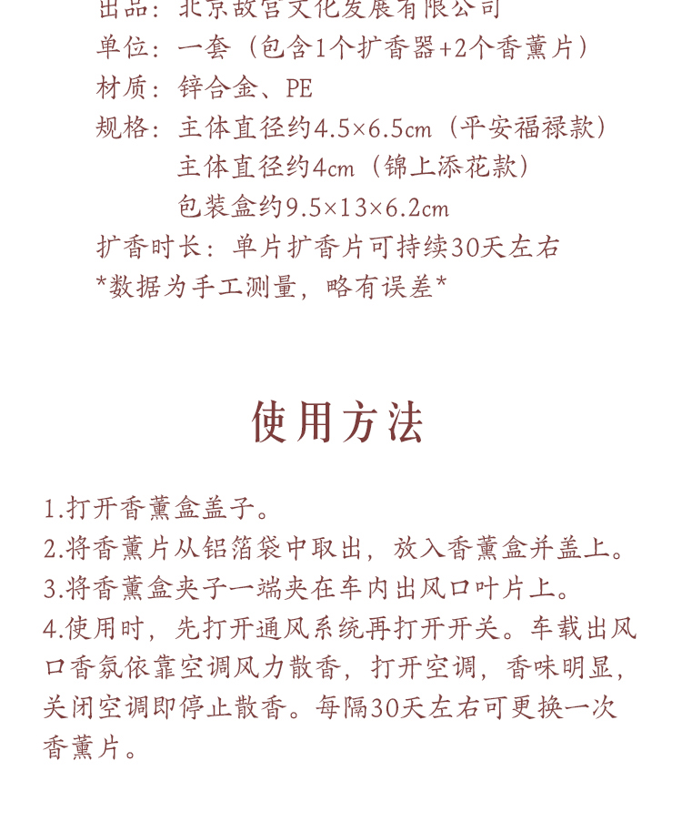 【故宫香氛】平安福禄车载香氛香薰摆件空调出风口装饰饰品新年礼物