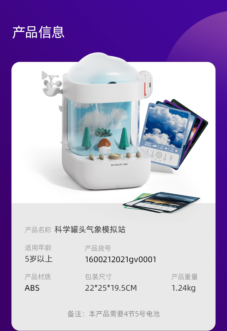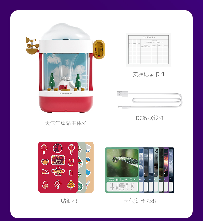 【新年限定款】科学罐头气象模拟站(高配直接送电池+螺丝刀)儿童科学实验生态站培养模拟天气降雨水量玩具