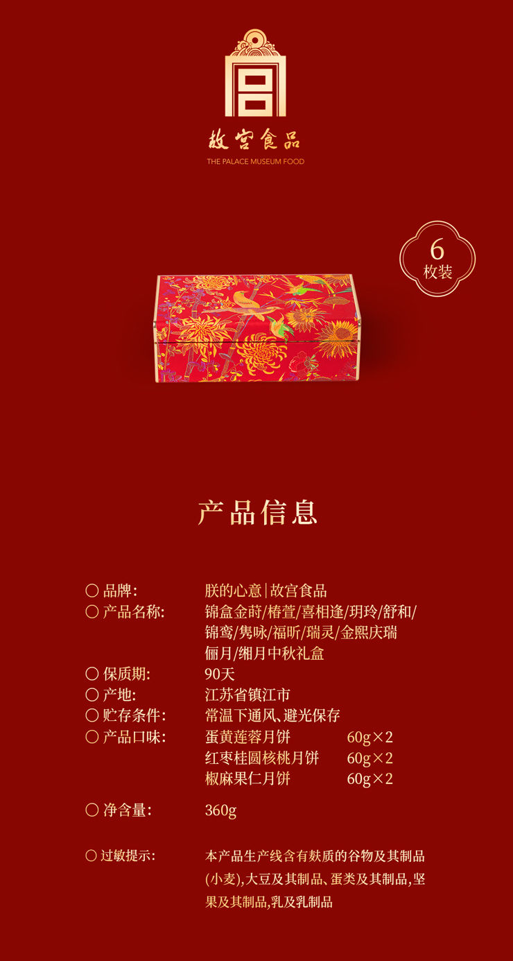 2025朕的心意 锦盒 360g 60g*6粒 故宫食品 可复用首饰收纳盒 中秋月饼礼盒