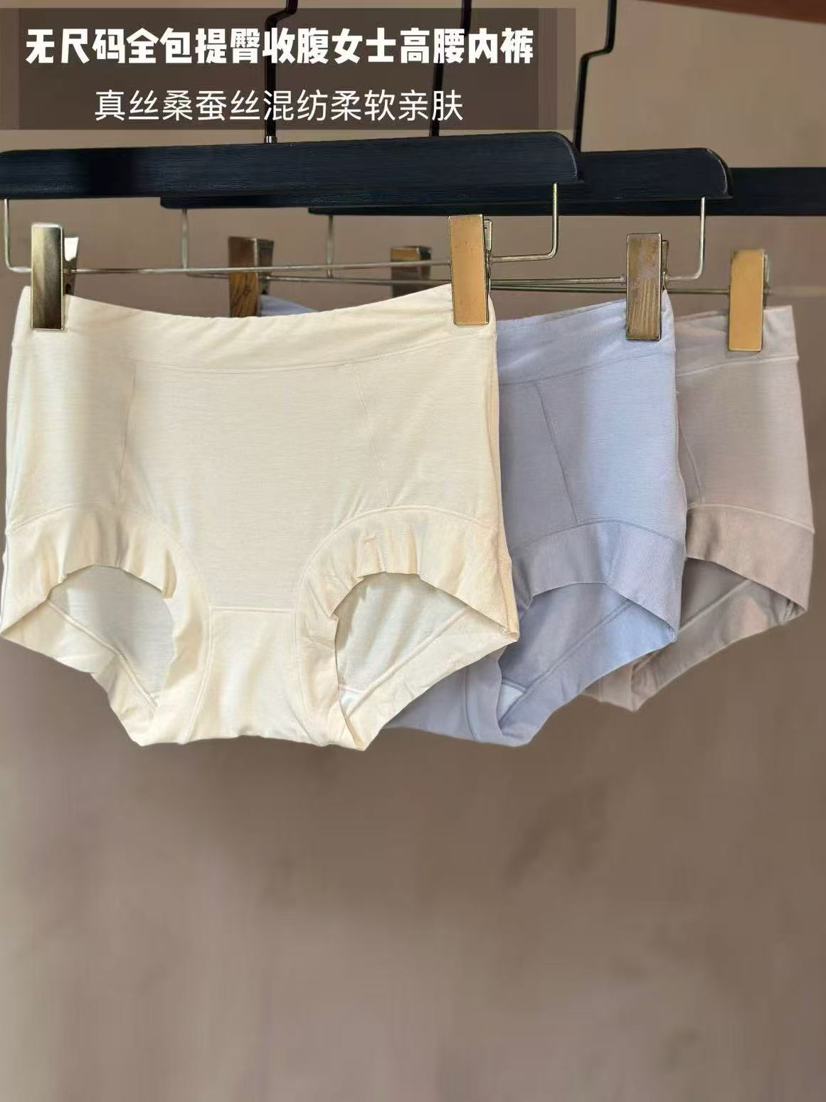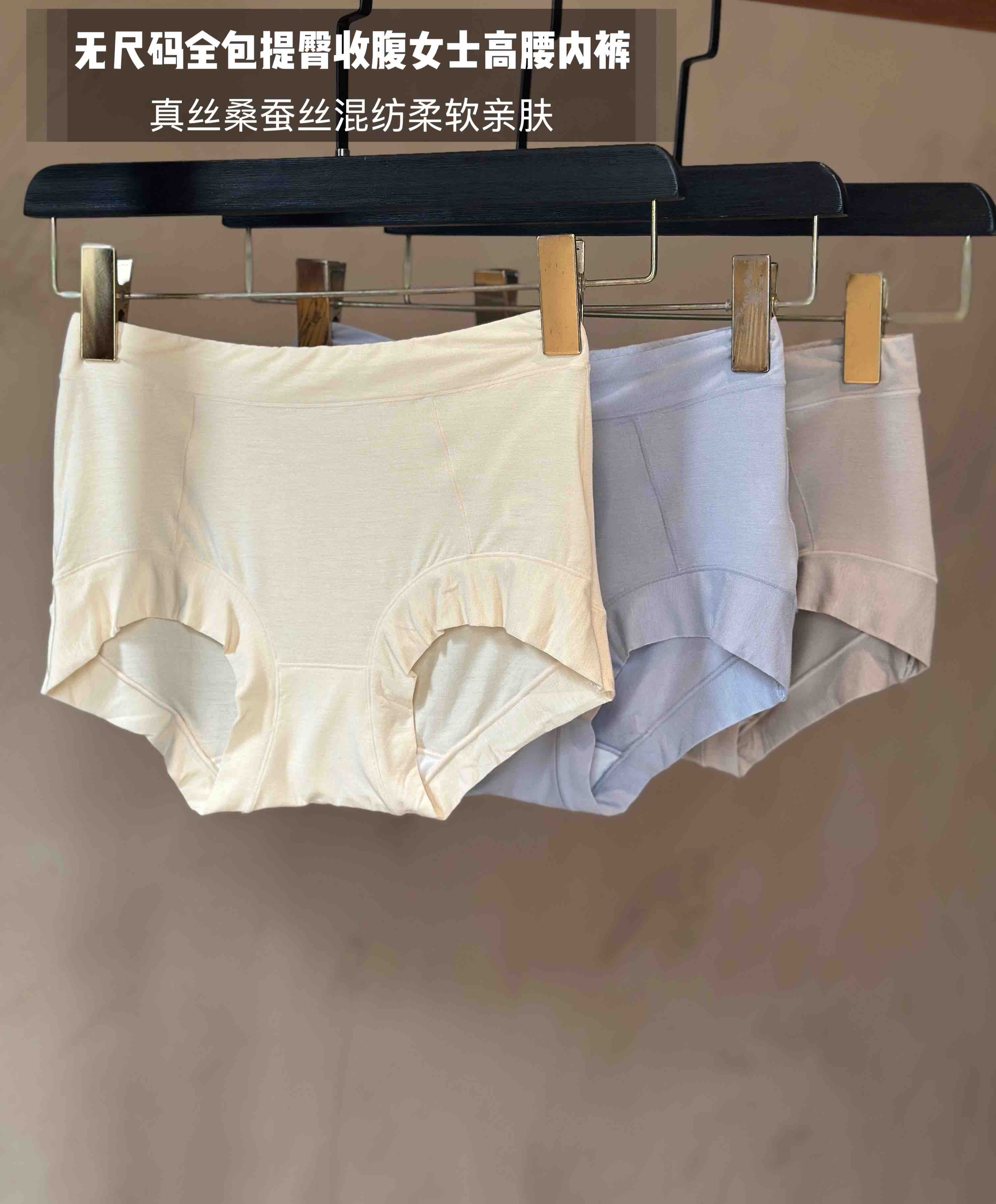 【敏感衣服不可退换】超舒适无尺码全包臀真丝桑蚕丝混纺底裆内裤,提臀收腹女士高腰内裤3条装 日单跟单品质价格给力!双层弹力宽腰边,贴身不勒腰腿部无痕裤脚,舒适包边面料亲肤柔软,弹力延展不紧勒