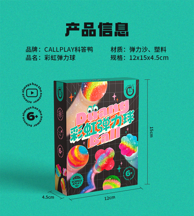 科答鸭-彩虹弹力球,DIY弹力球,会蹦跶会发光。内含4个模型,粉足量可做6次,让孩子学习趣味科学原理。