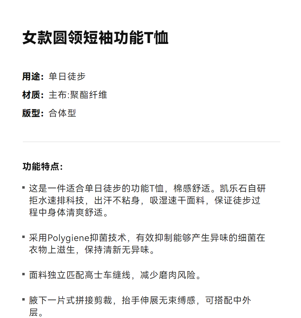 KAILAS凯乐石 女款圆领短袖功能T恤 KG2617281