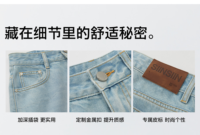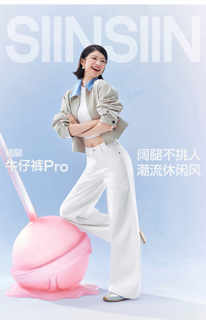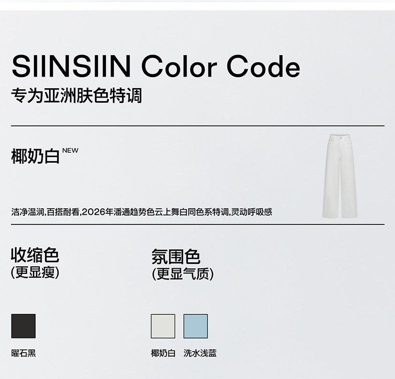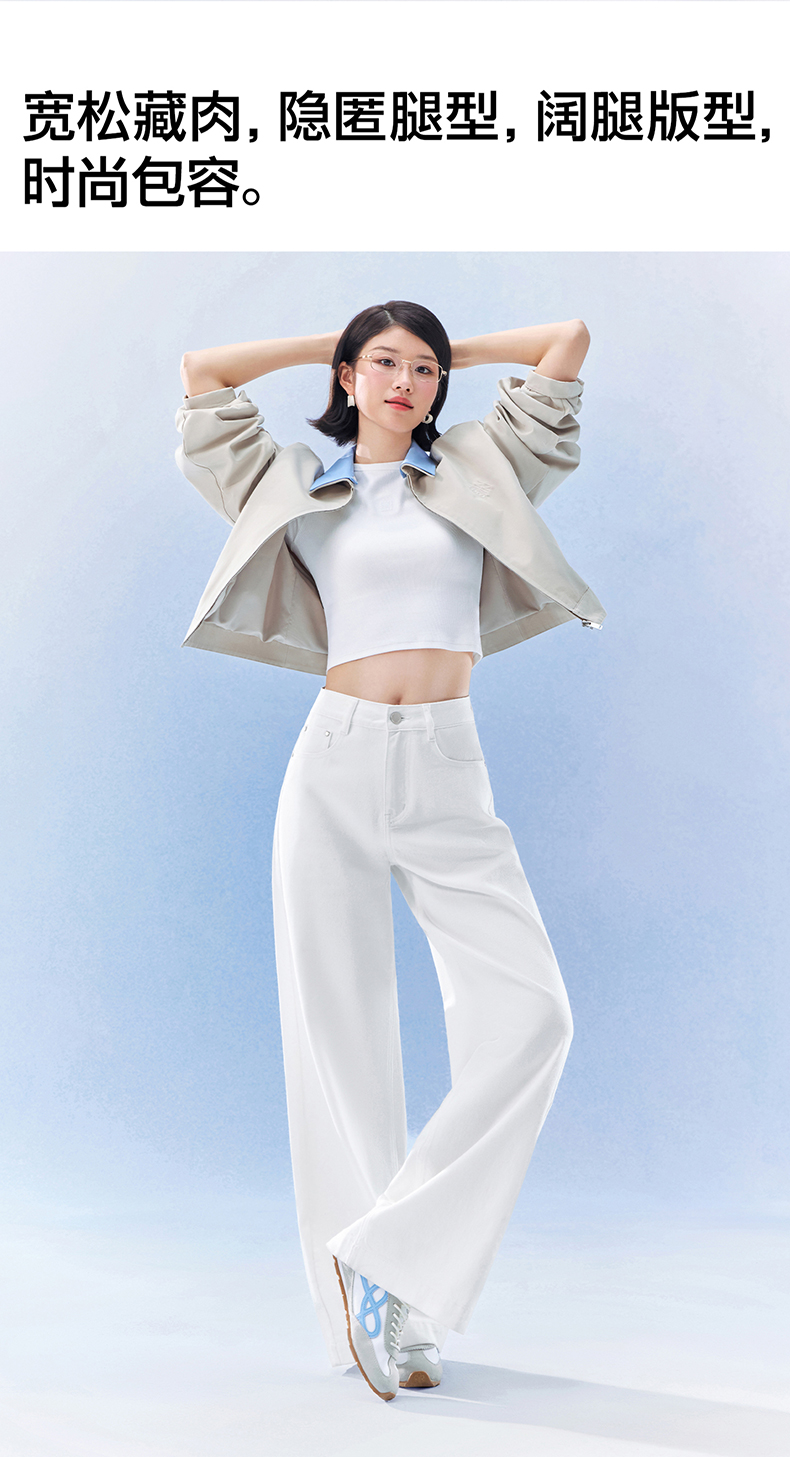 SIINSIIN阔腿牛仔裤女2026新款春季直筒长裤宽松垂感显瘦白色裤子