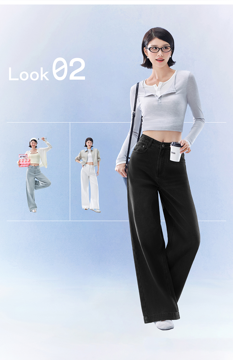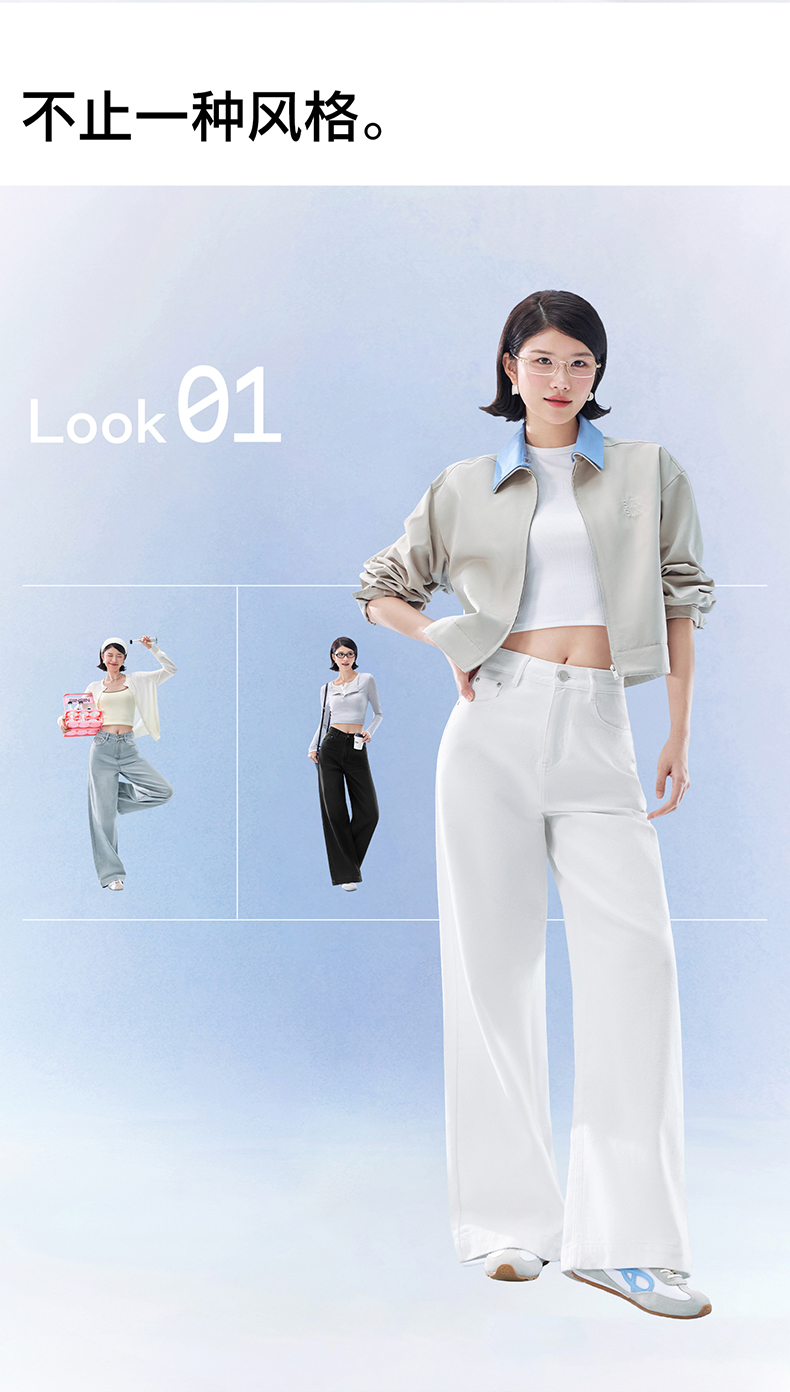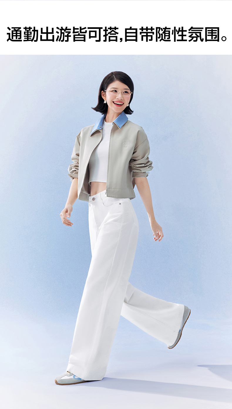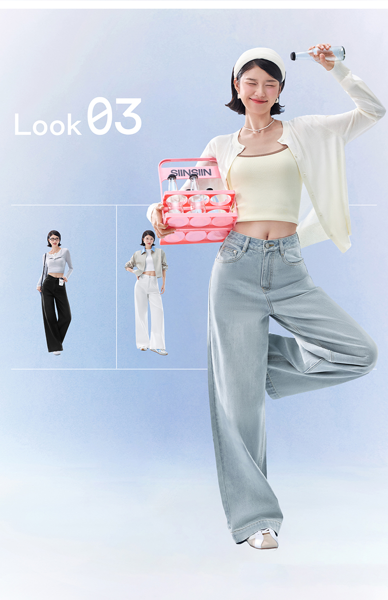 SIINSIIN阔腿牛仔裤女2026新款春季直筒长裤宽松垂感显瘦白色裤子