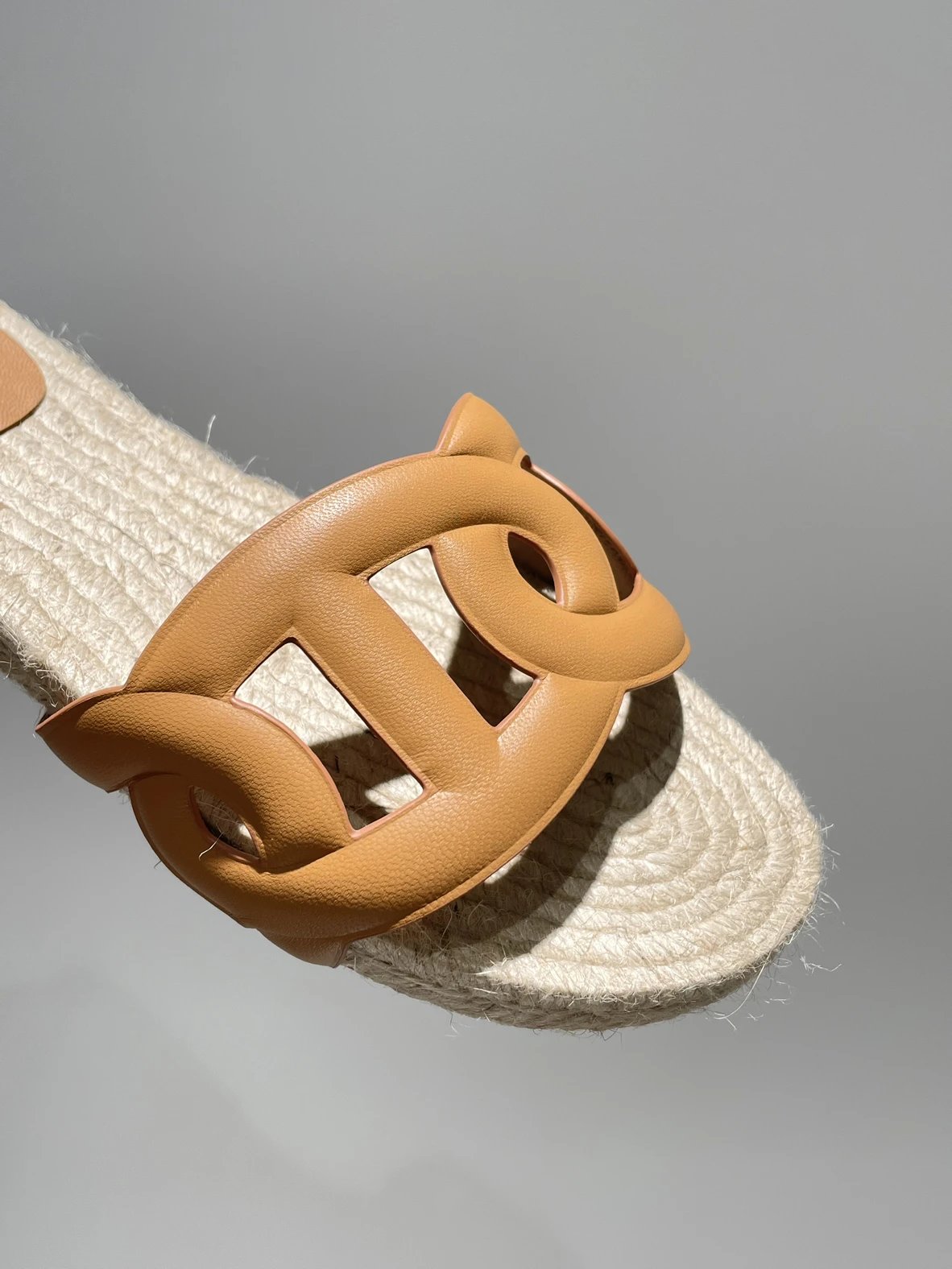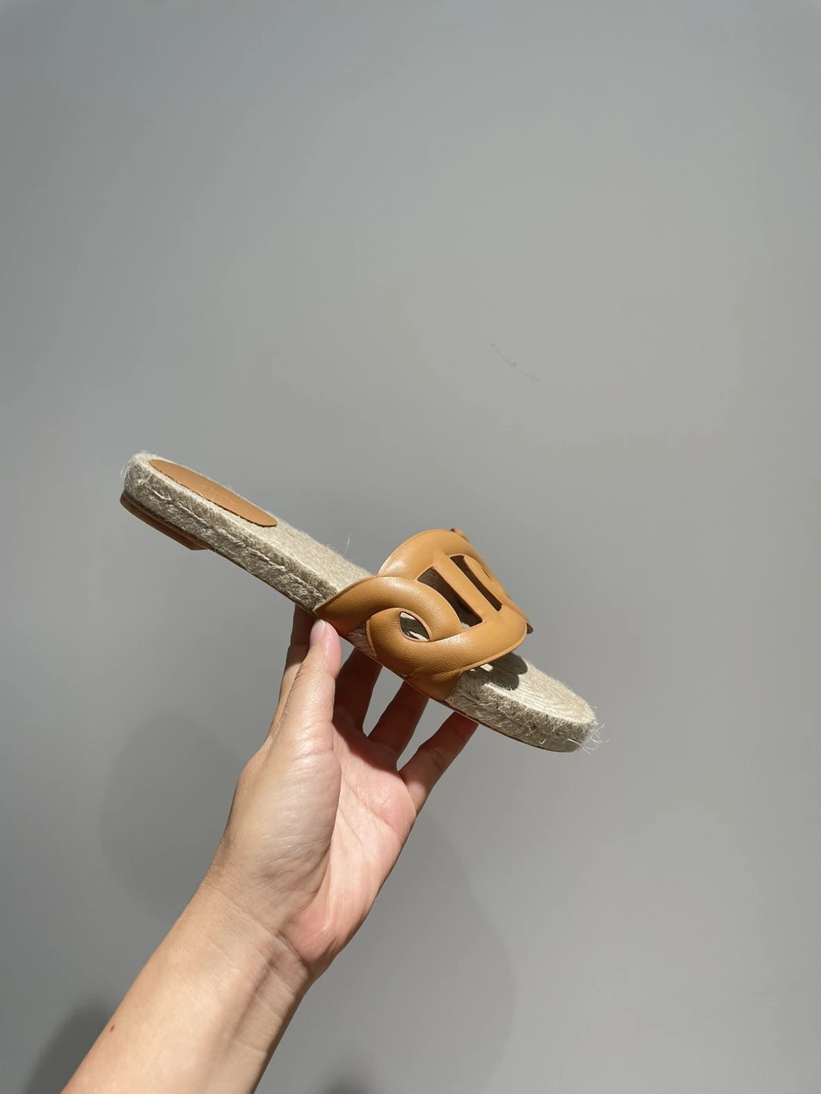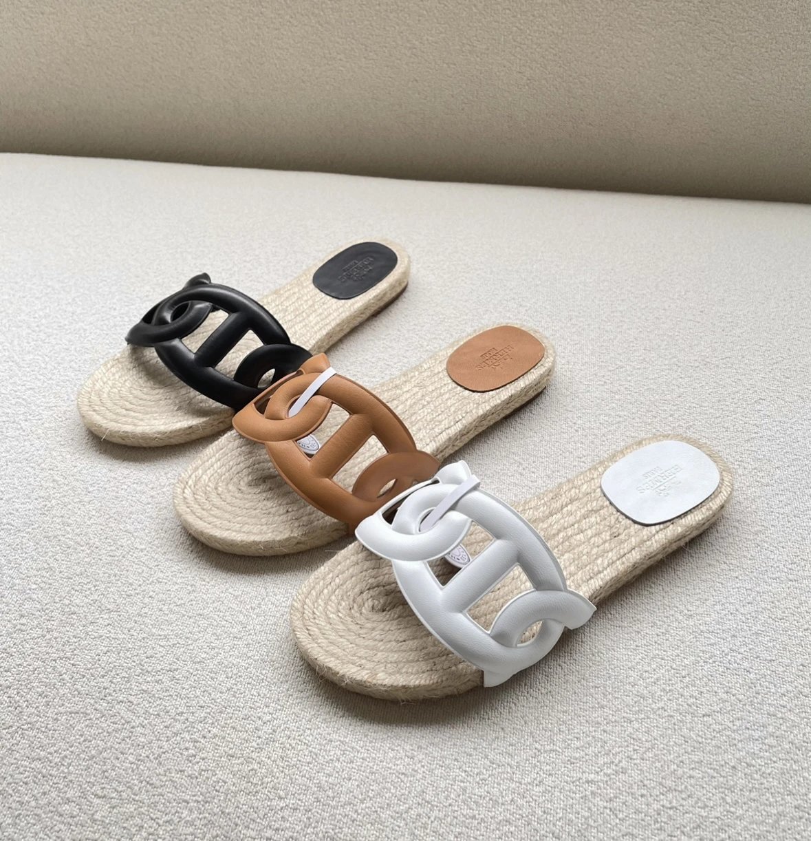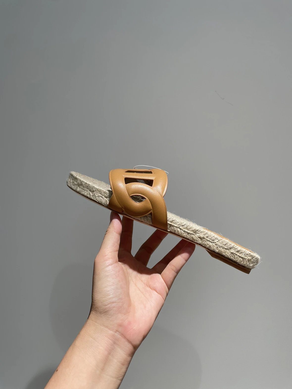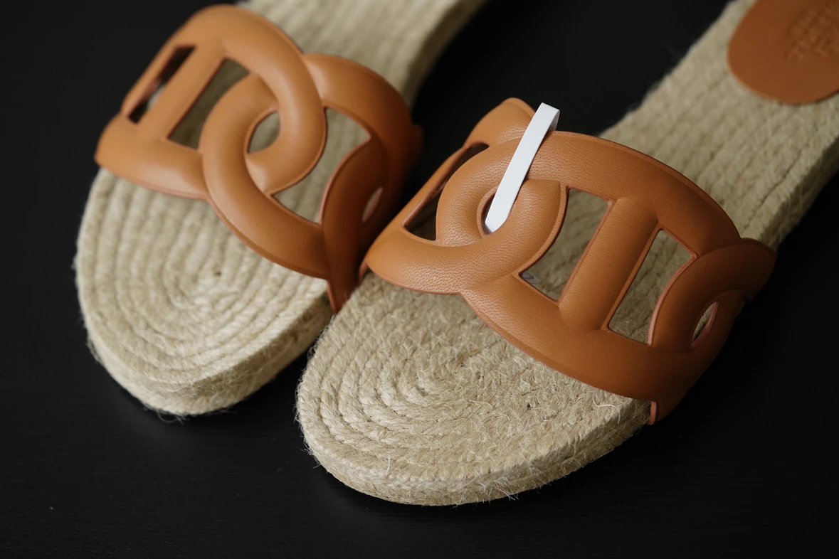 夏日必备 渠道货 经典猪鼻子草编拖鞋 三色入 混种羊皮麻绳草编底平底拖鞋