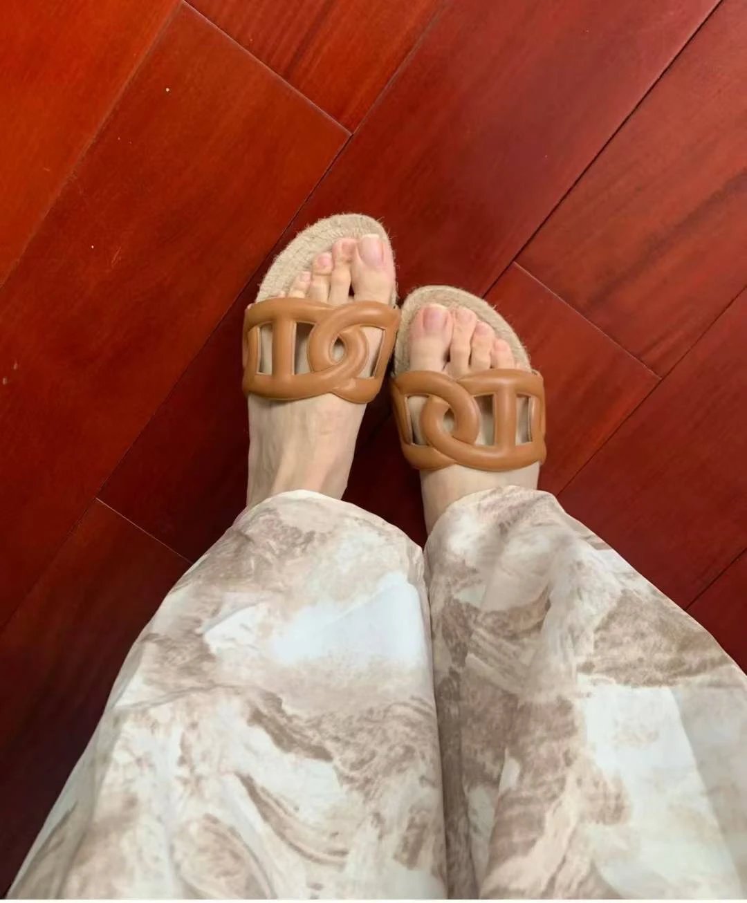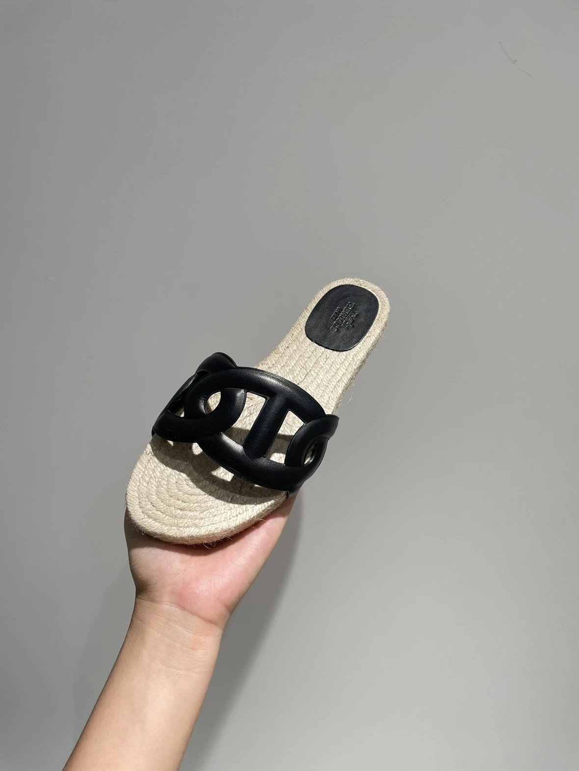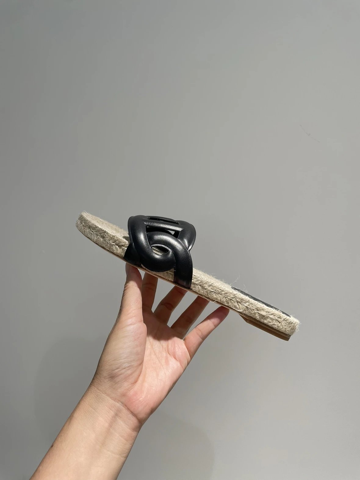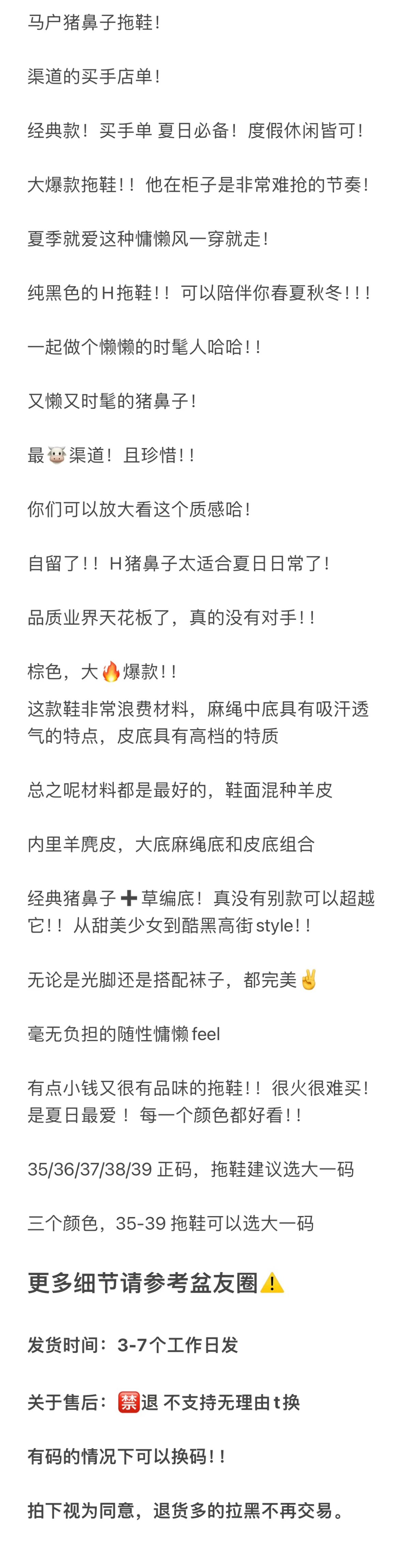 夏日必备 渠道货 经典猪鼻子草编拖鞋 三色入 混种羊皮麻绳草编底平底拖鞋