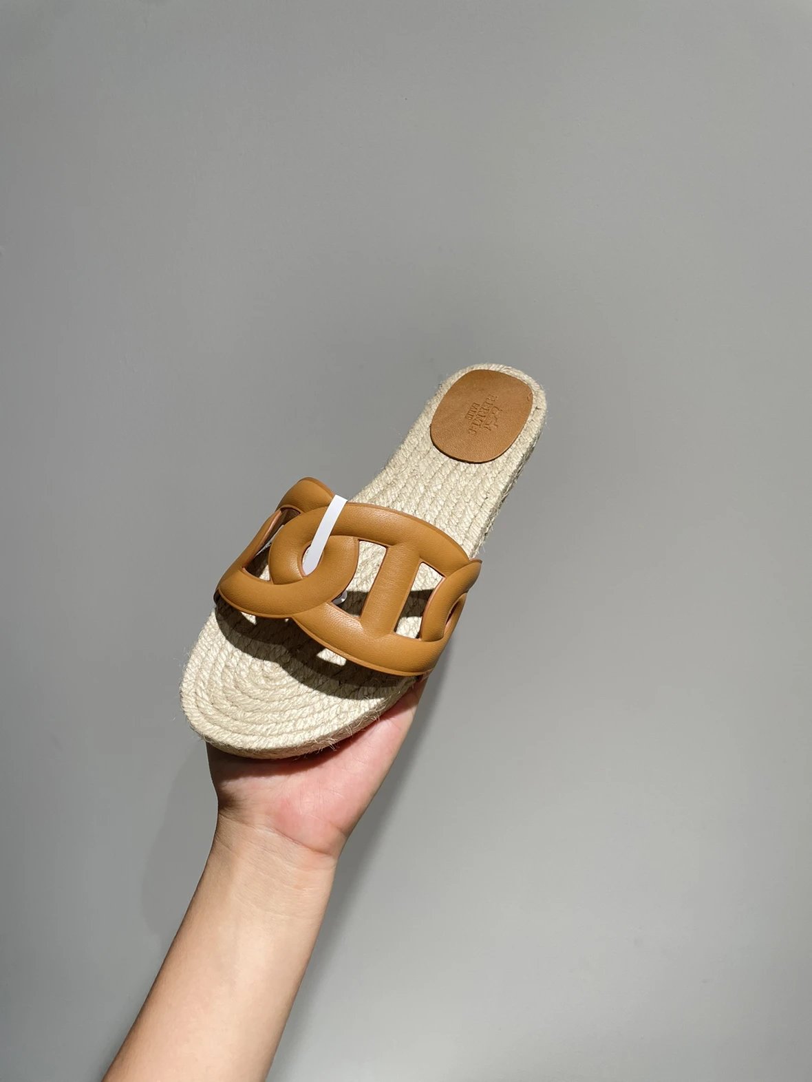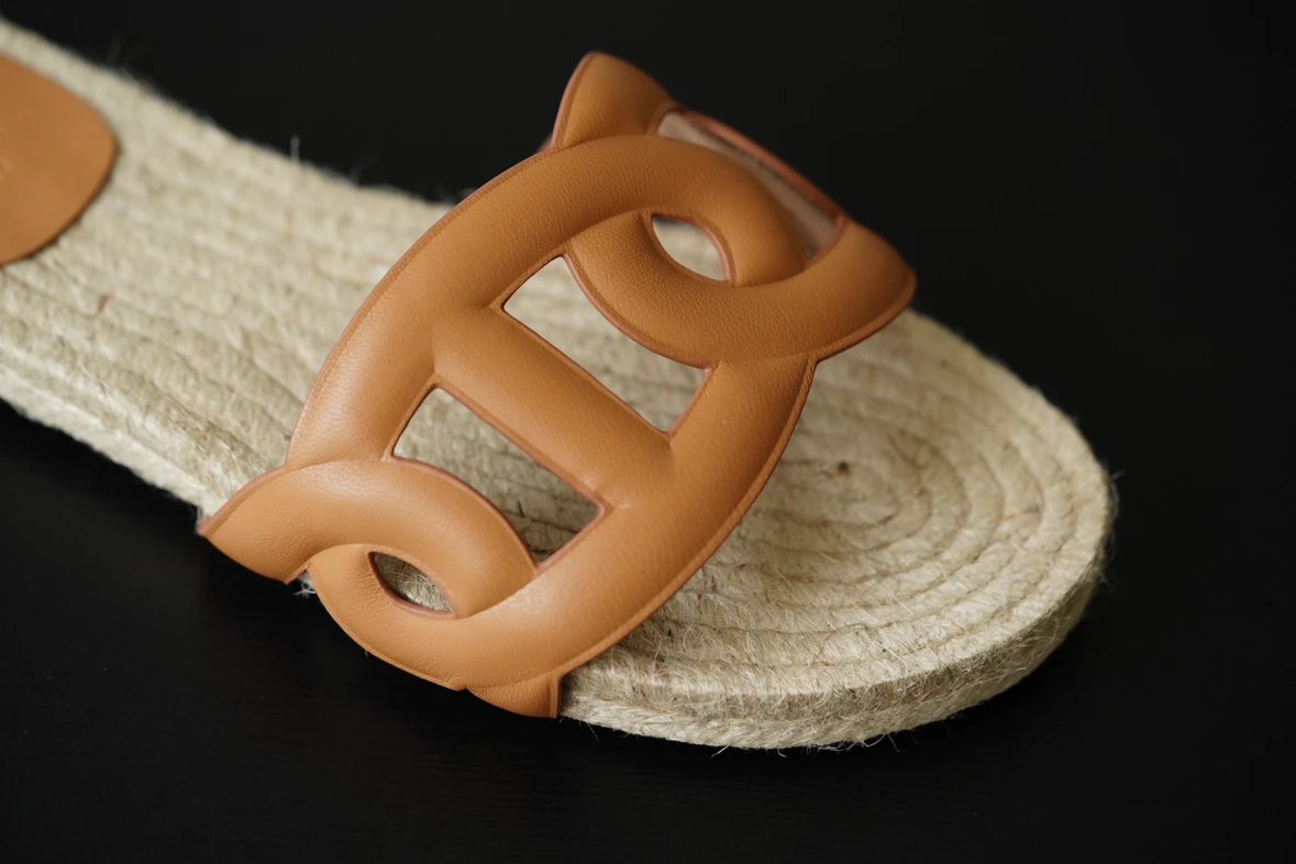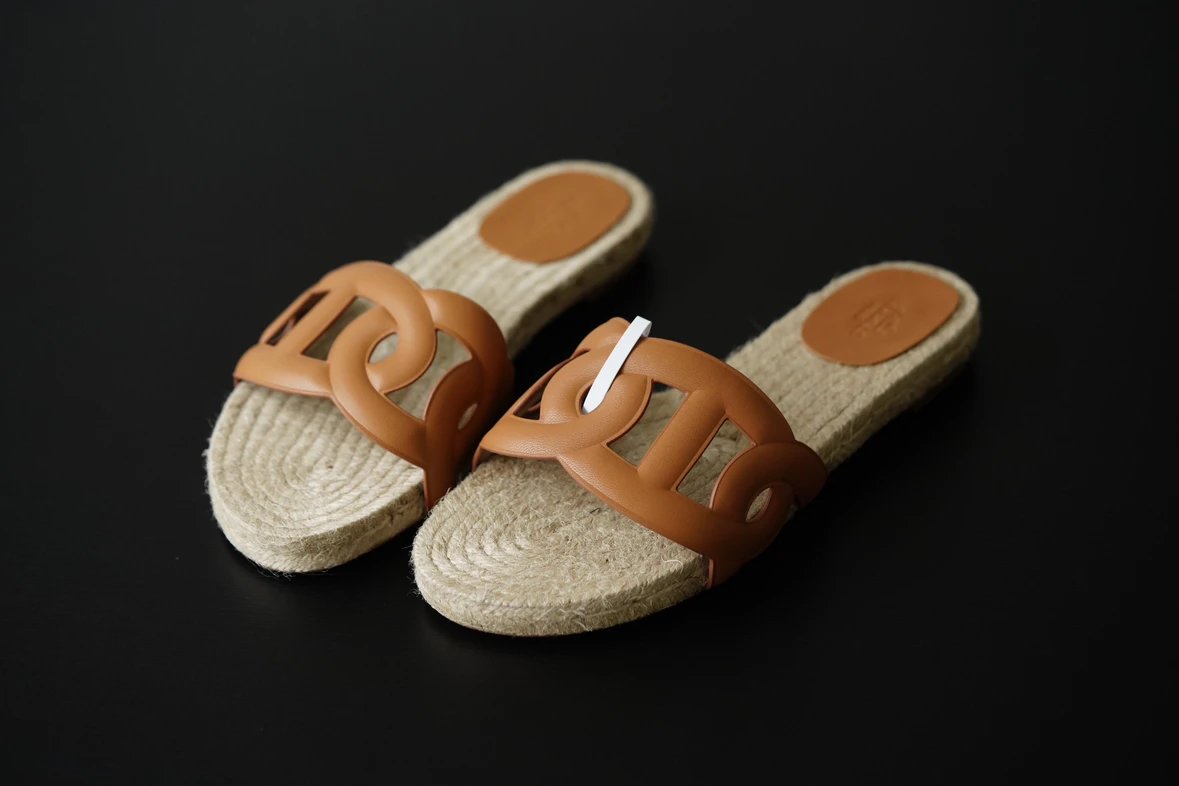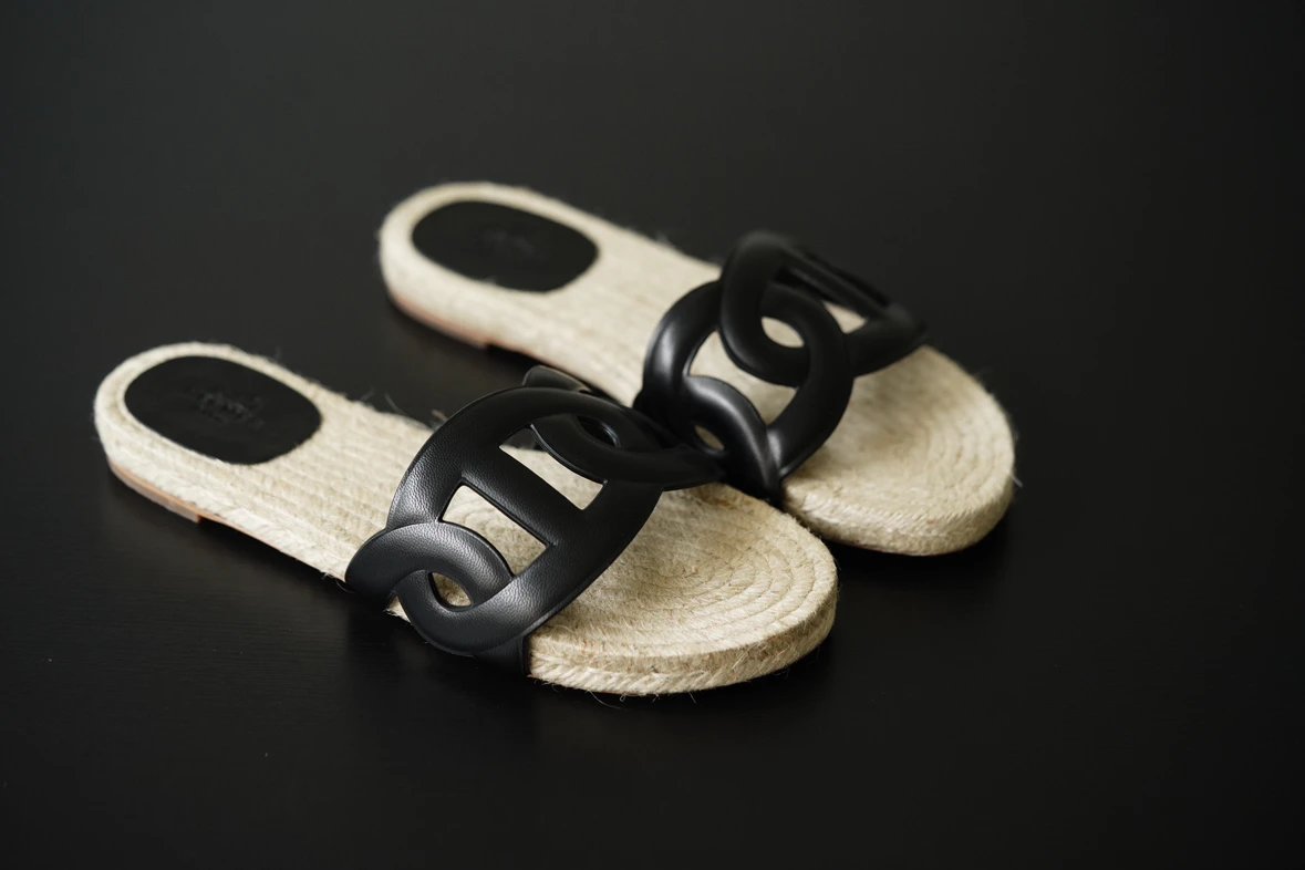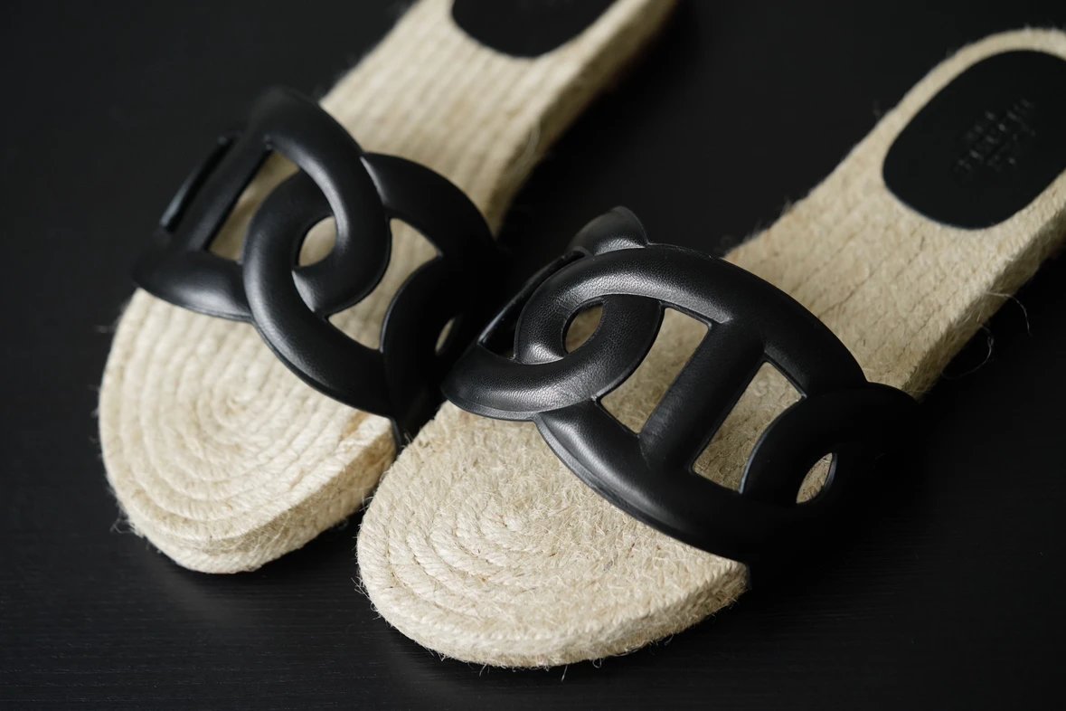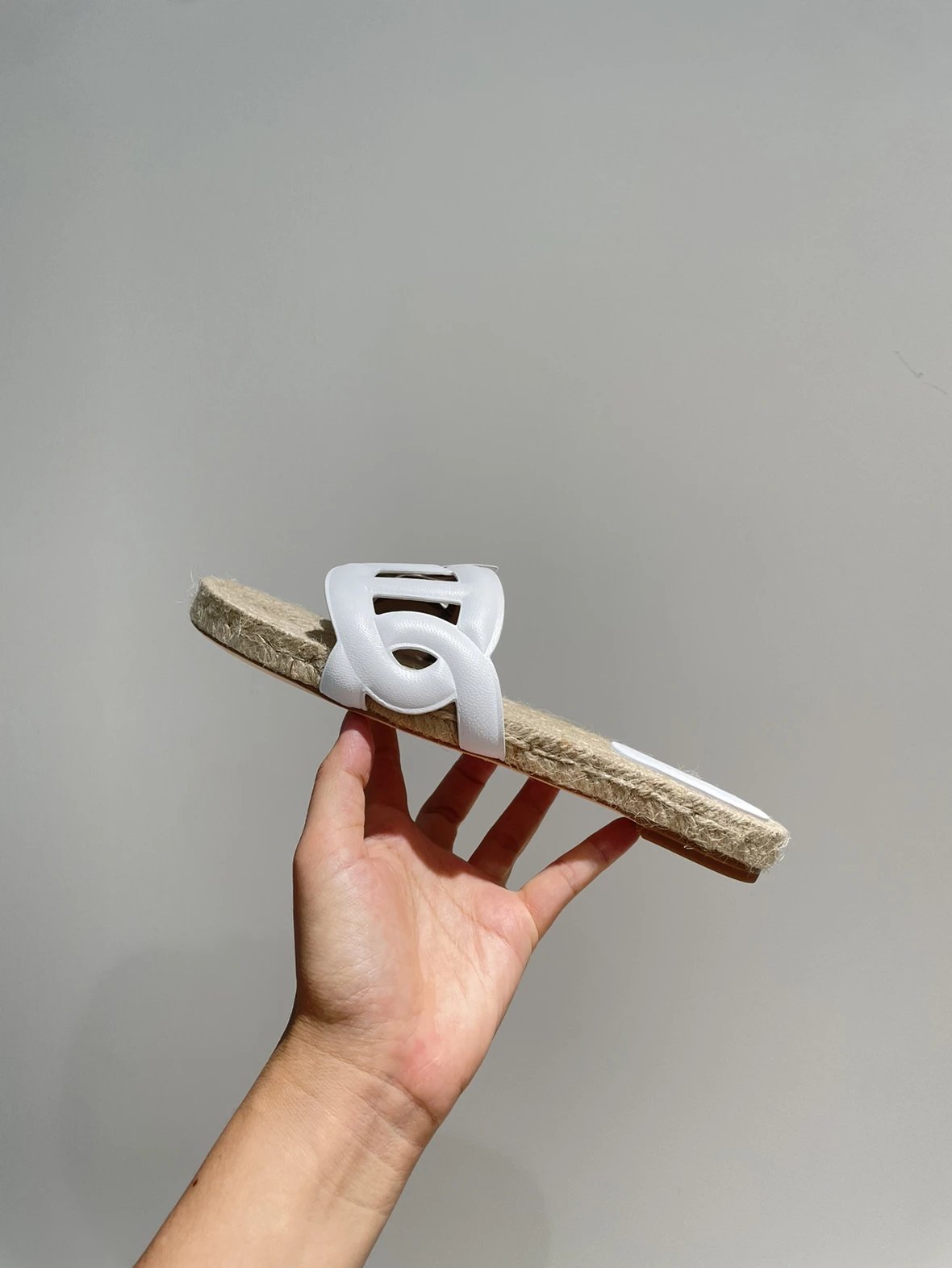 夏日必备 渠道货 经典猪鼻子草编拖鞋 三色入 混种羊皮麻绳草编底平底拖鞋