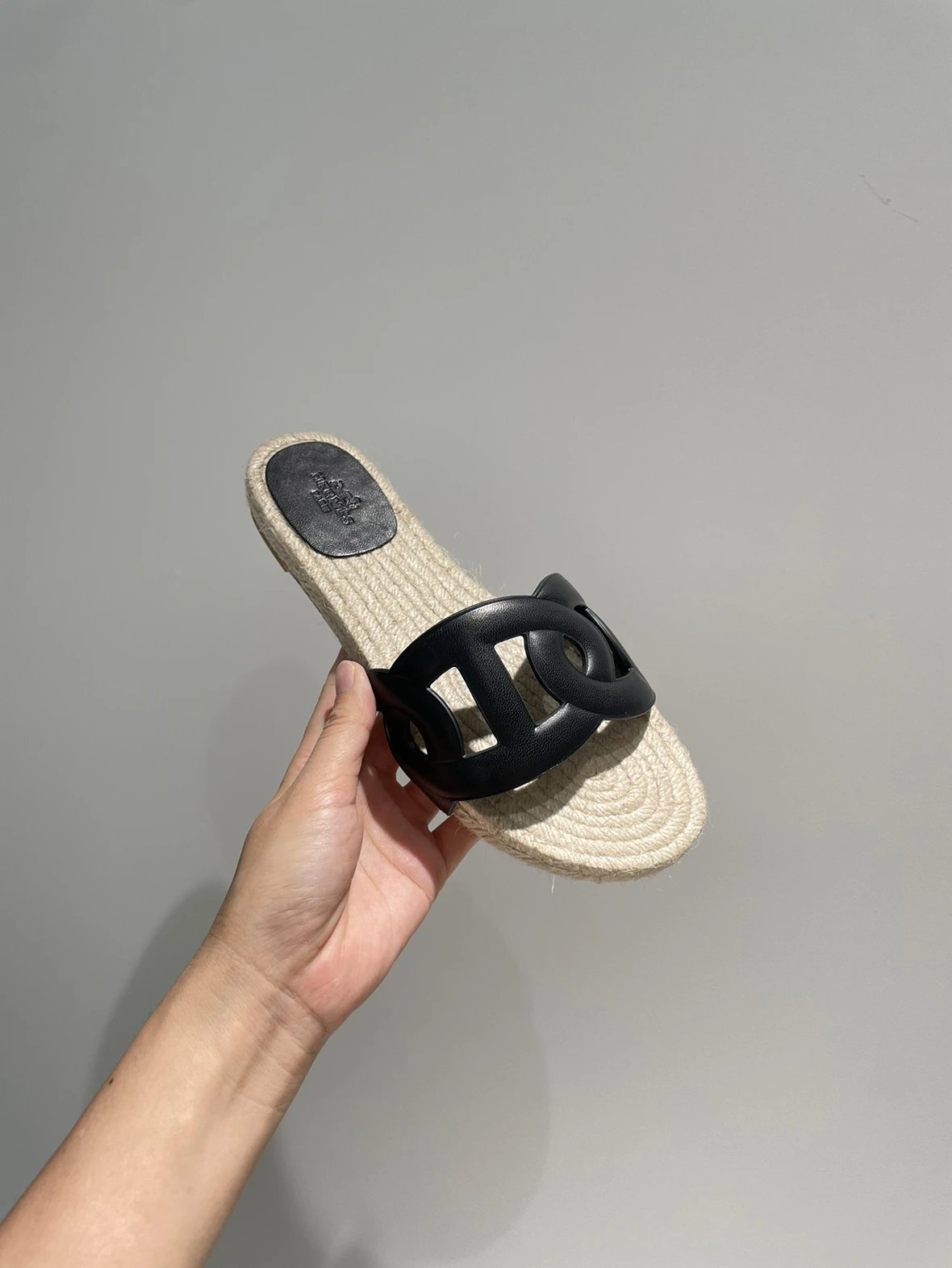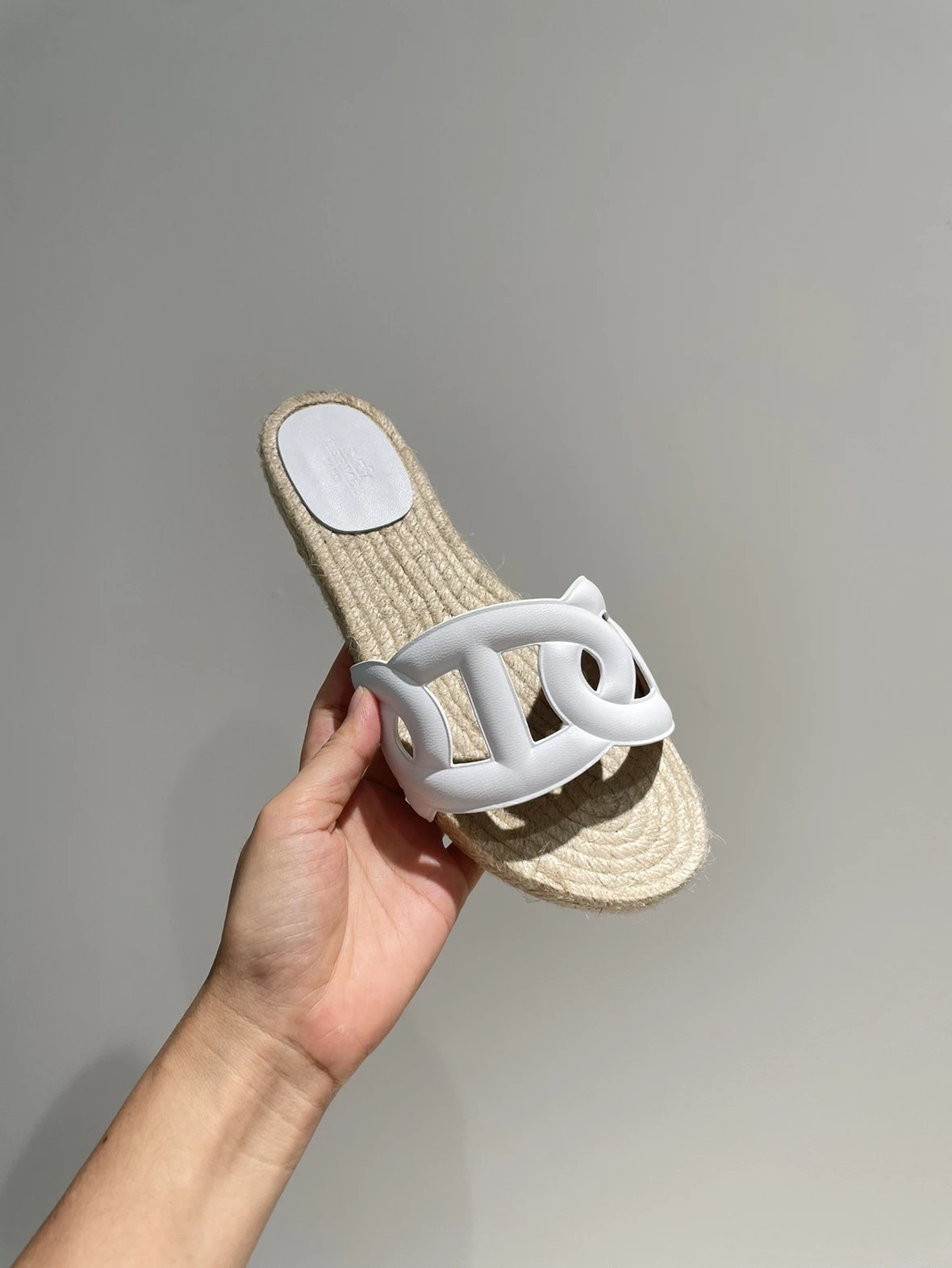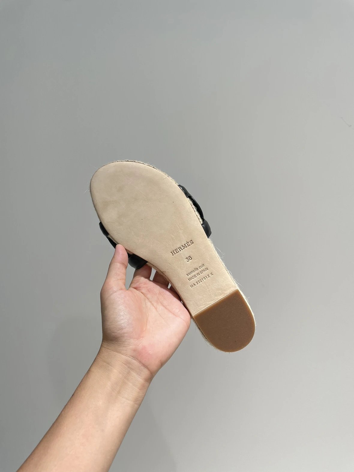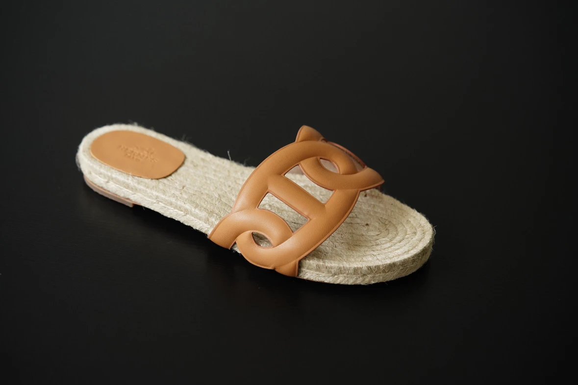 夏日必备 渠道货 经典猪鼻子草编拖鞋 三色入 混种羊皮麻绳草编底平底拖鞋