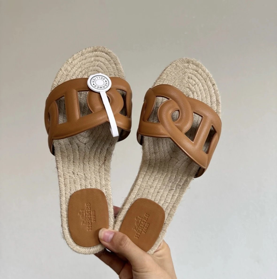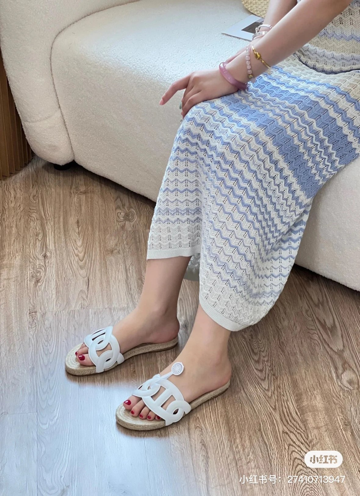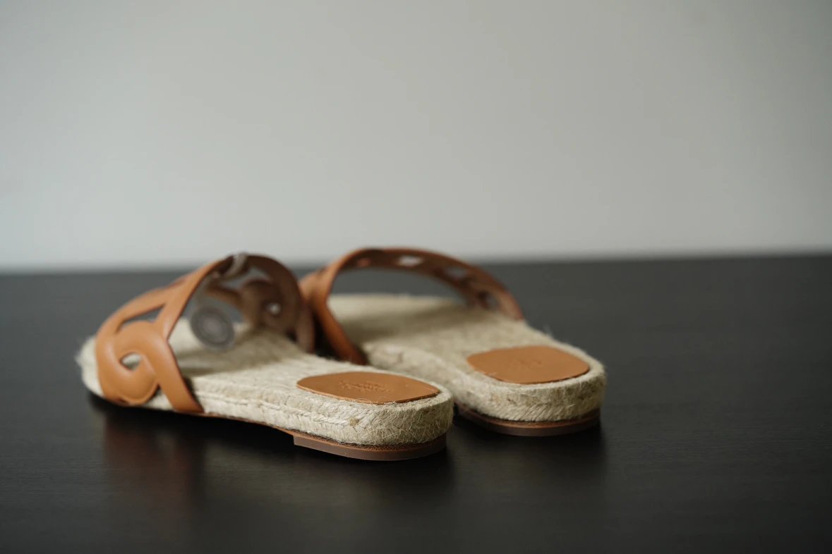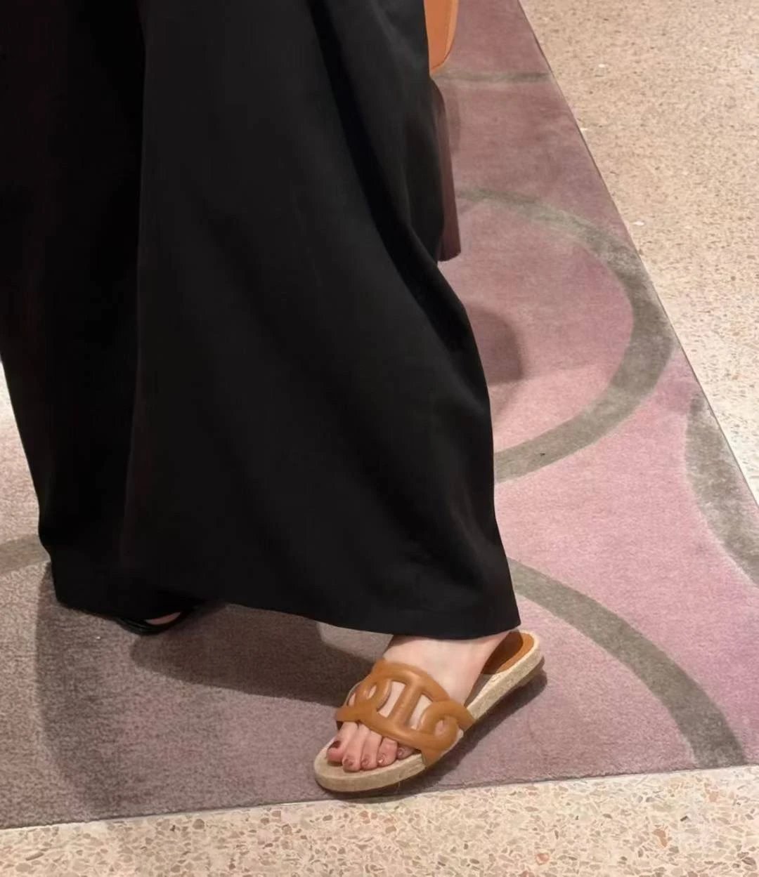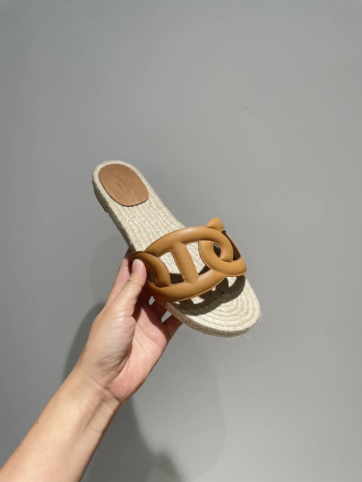 夏日必备 渠道货 经典猪鼻子草编拖鞋 三色入 混种羊皮麻绳草编底平底拖鞋