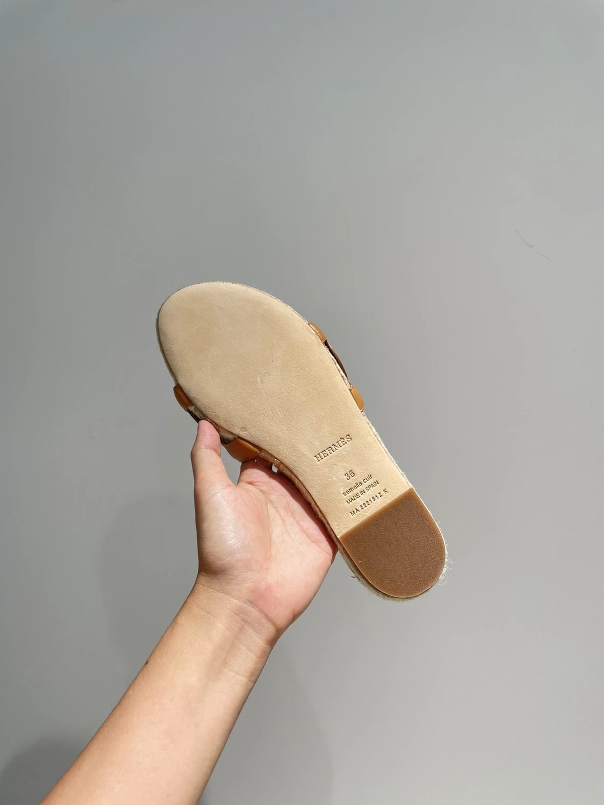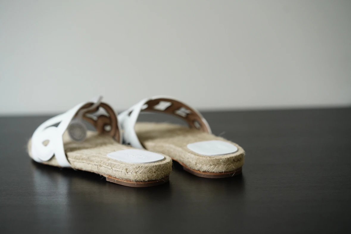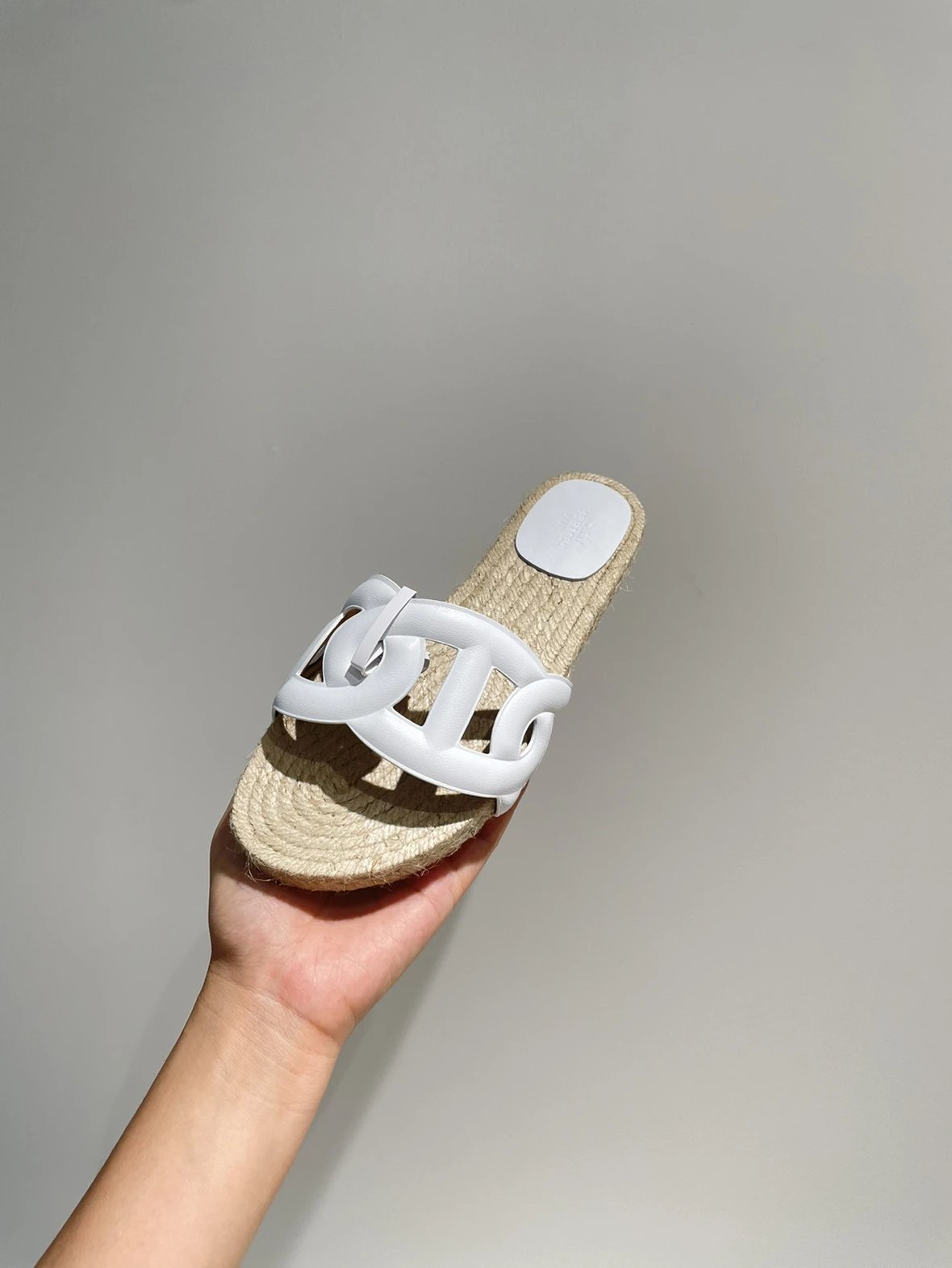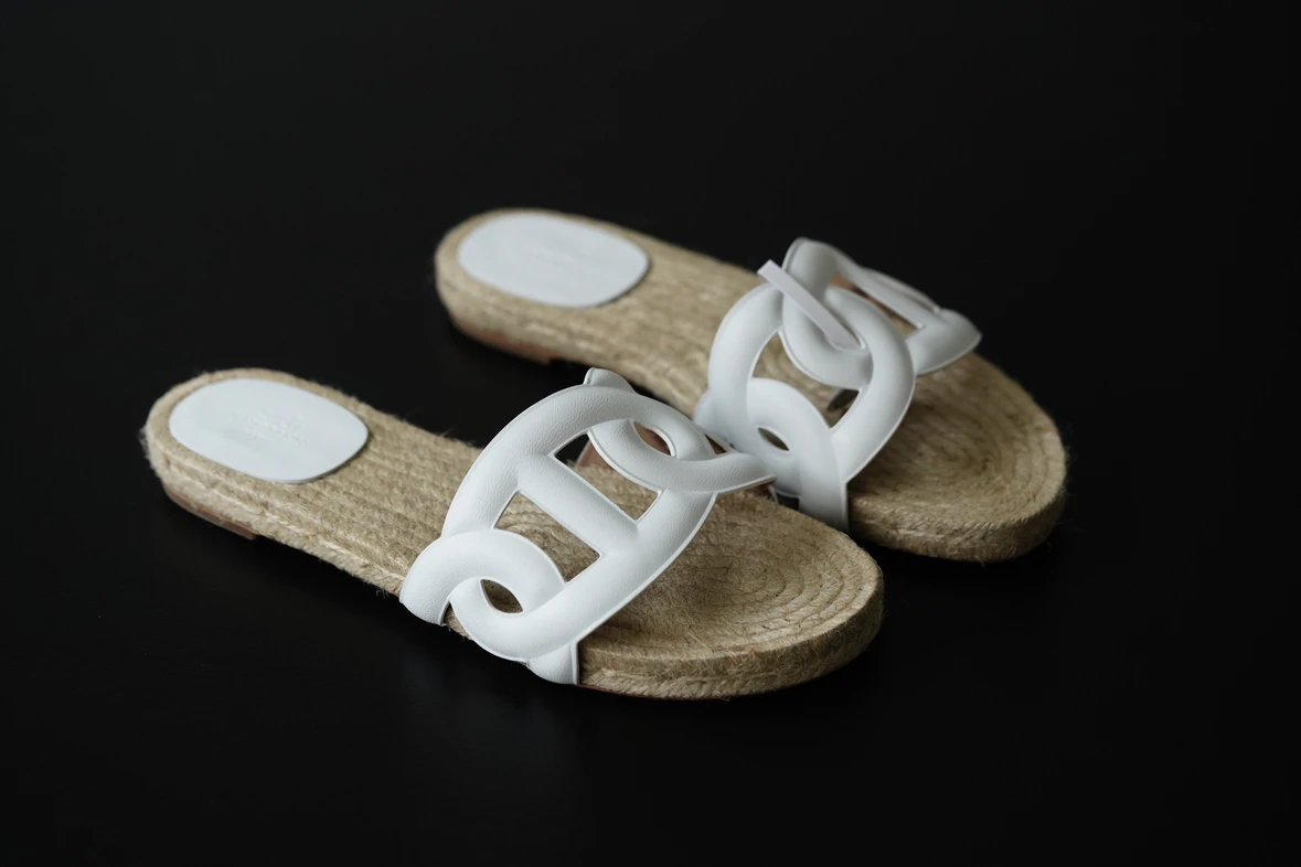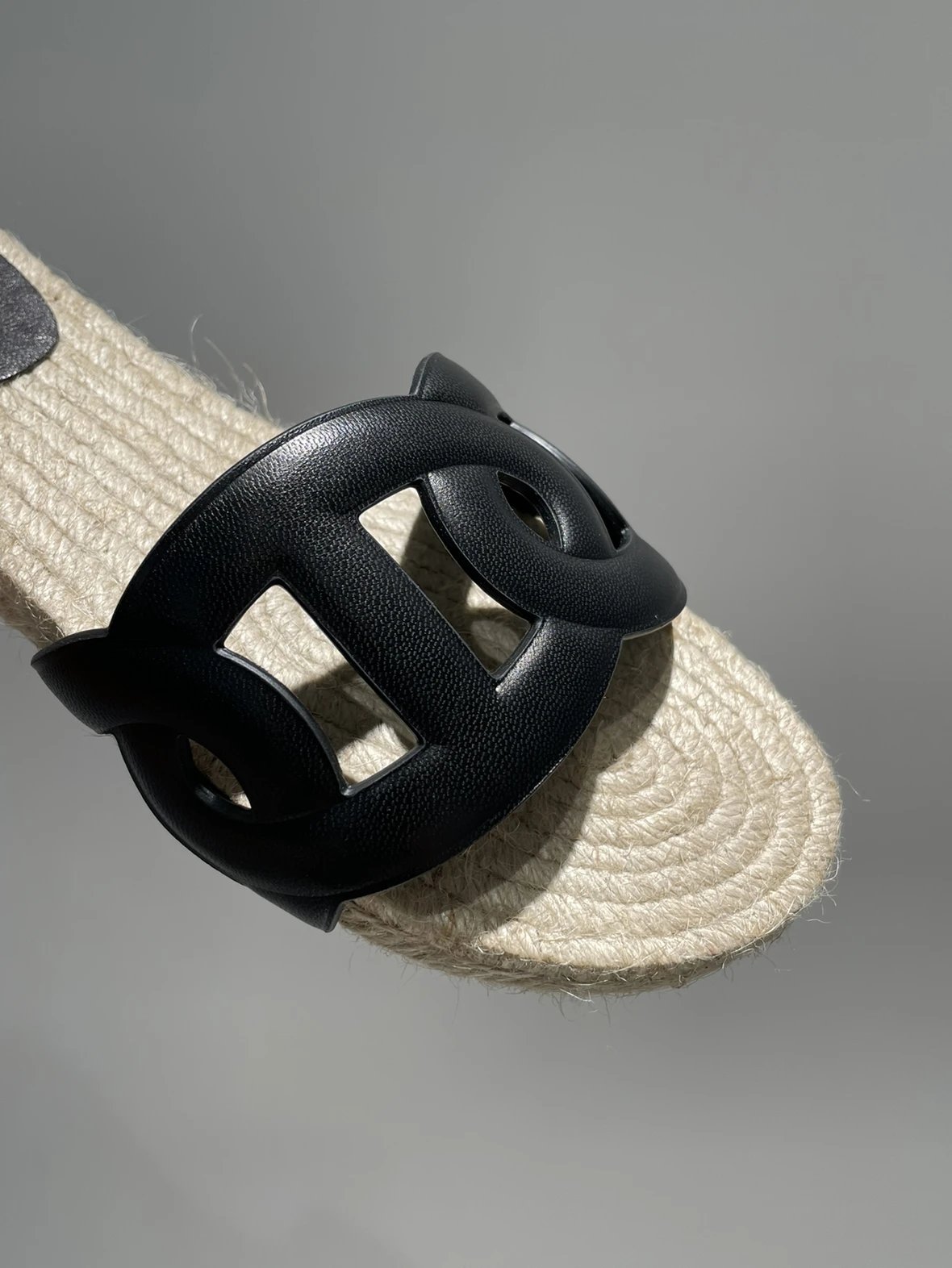 夏日必备 渠道货 经典猪鼻子草编拖鞋 三色入 混种羊皮麻绳草编底平底拖鞋