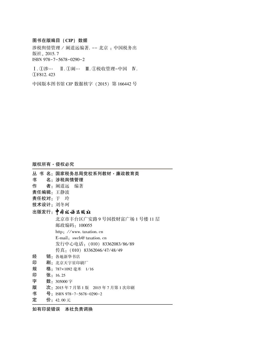 本书出版的目的,主旨帮助税务干部尤其是涉税舆情管理工作人员更好地理解涉税舆情管理面临的形势与任务,更好地掌握涉税舆情管理的方法与要求,为实现税收现代化营造良好的舆论环境。