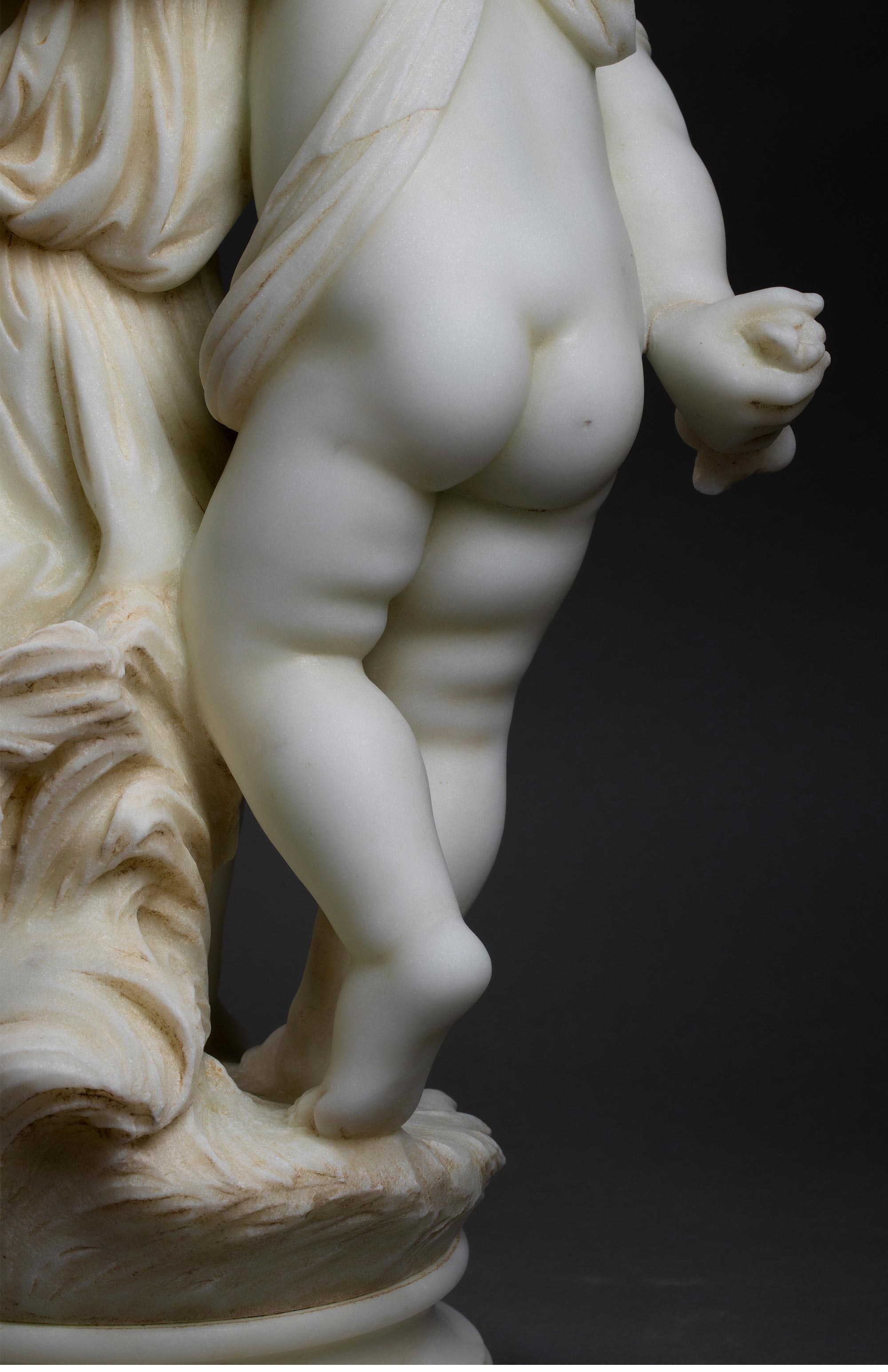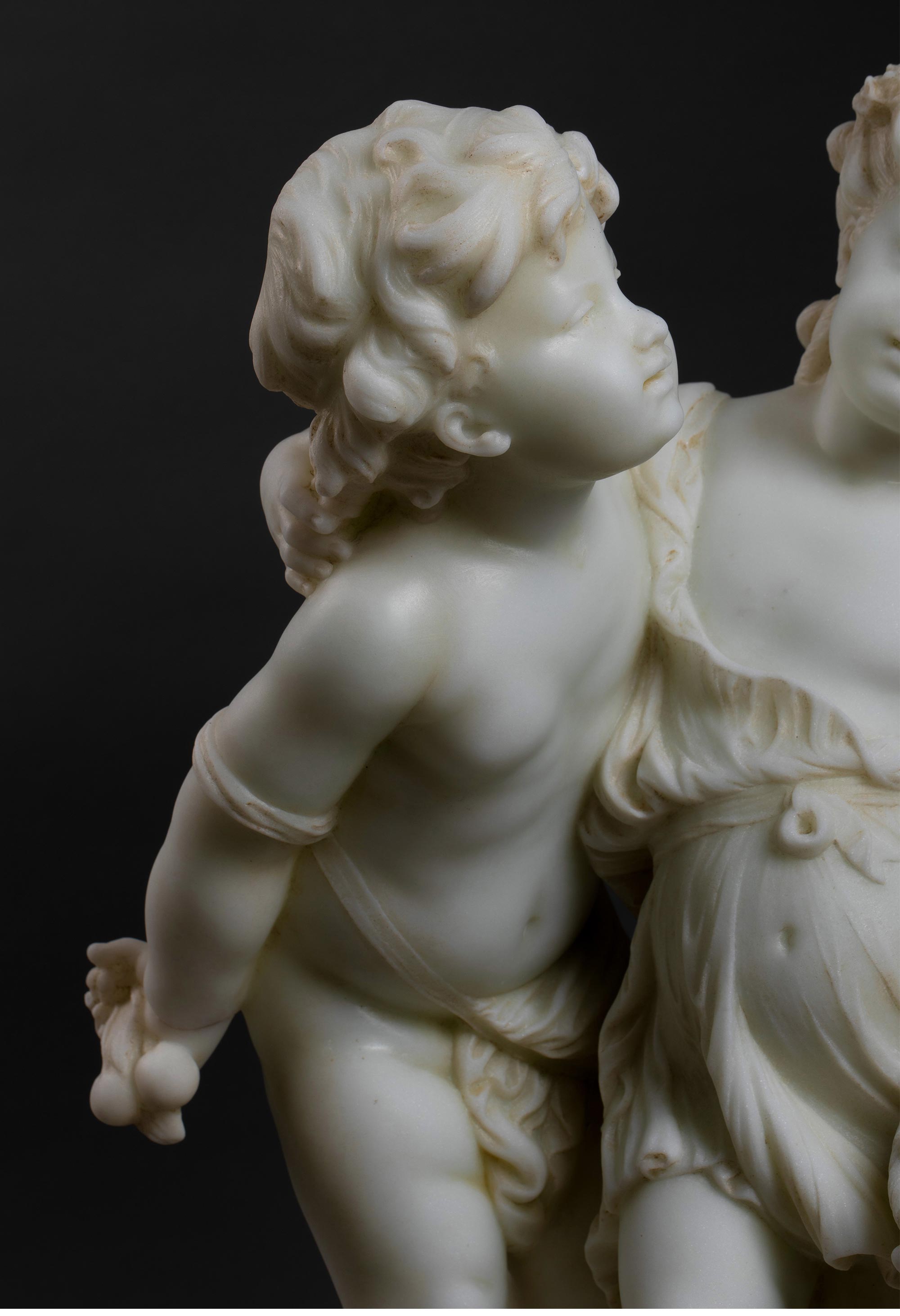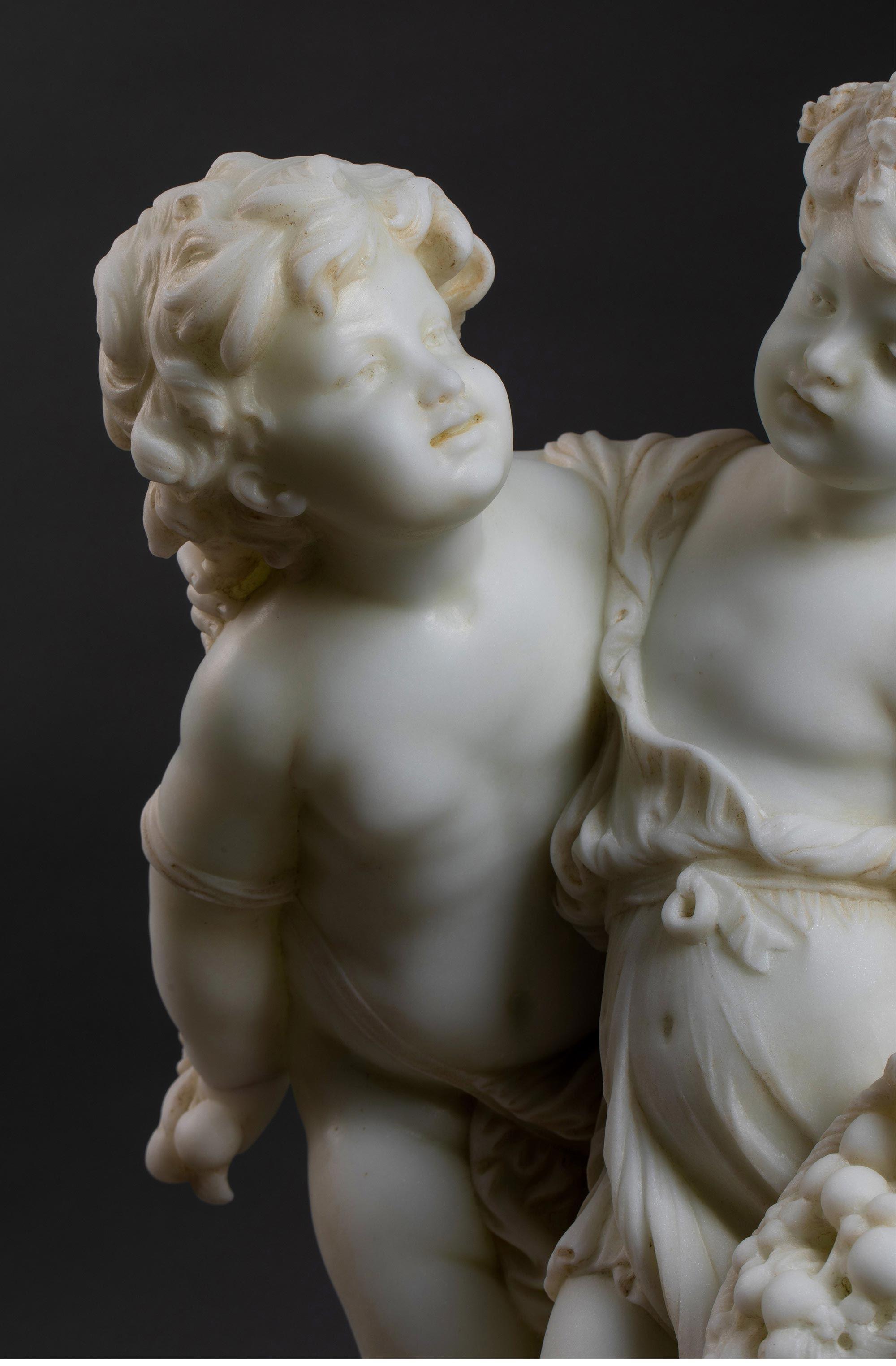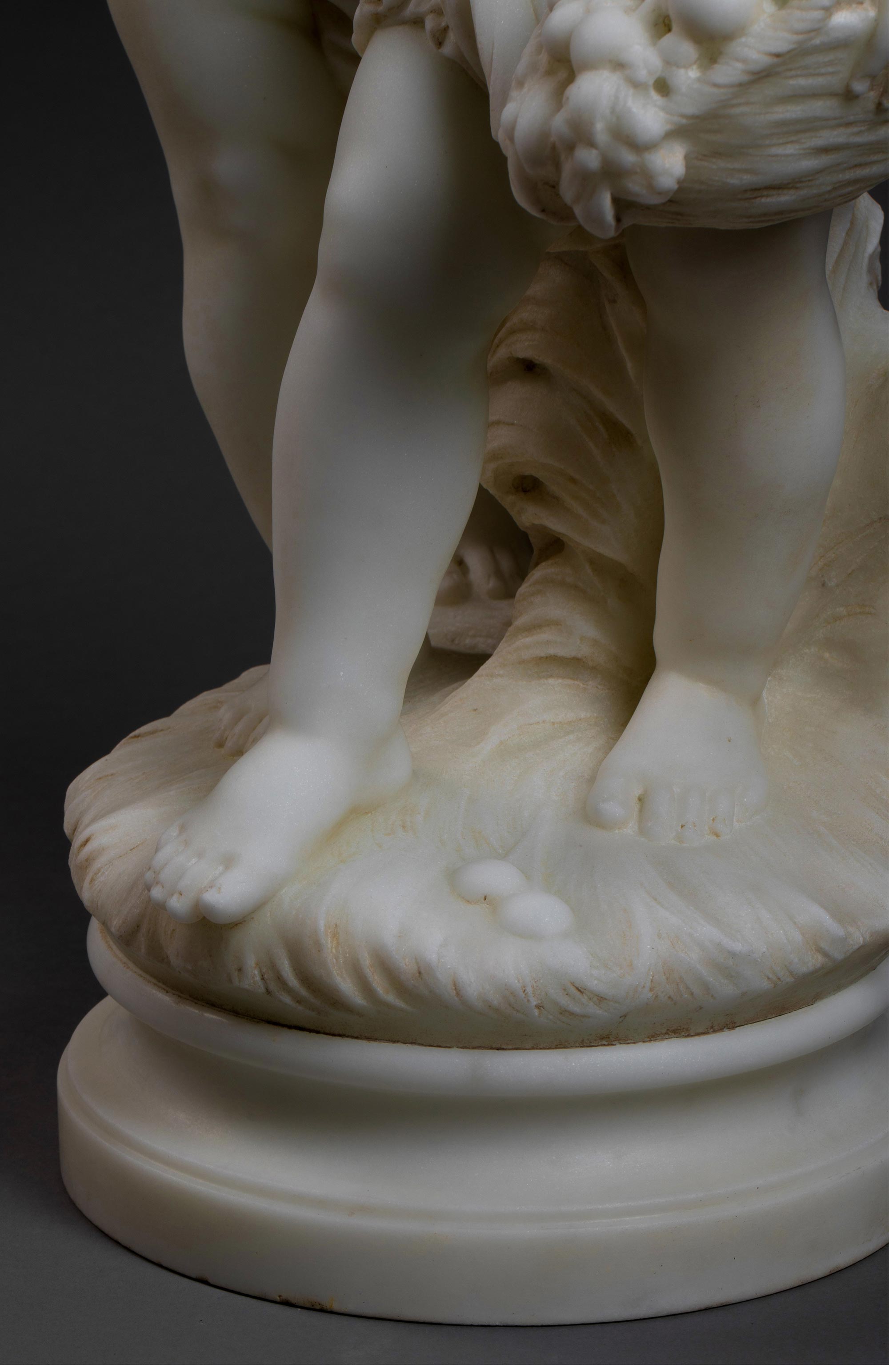 19世纪法国出品人物主题大理石雕塑作品《手持果篮的孩童》