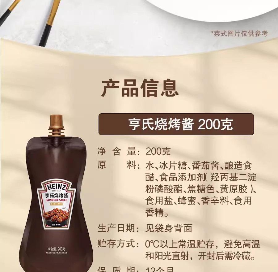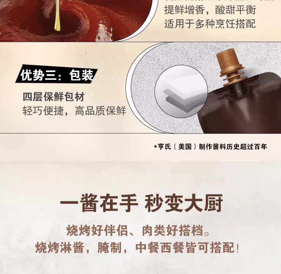 200g 亨氏烧烤酱 烧烤酱 美式果木烟熏风味 露营烤肉搭档 腌制煎炒调味酱