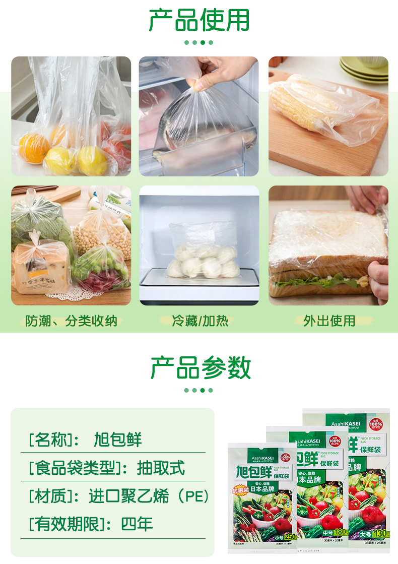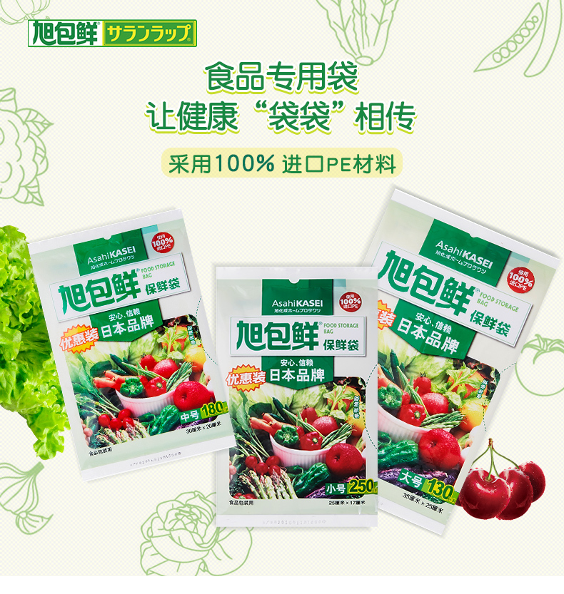 日本旭包鲜保鲜袋优惠装中号 180只三包