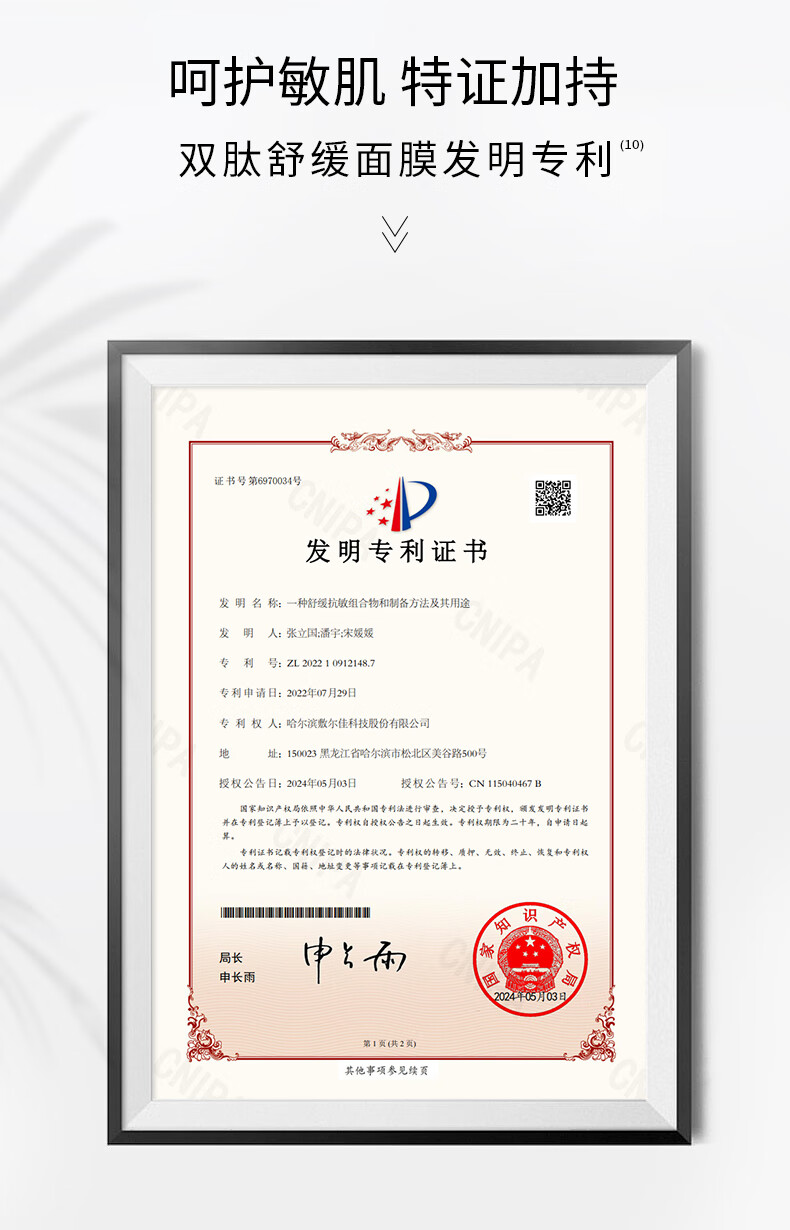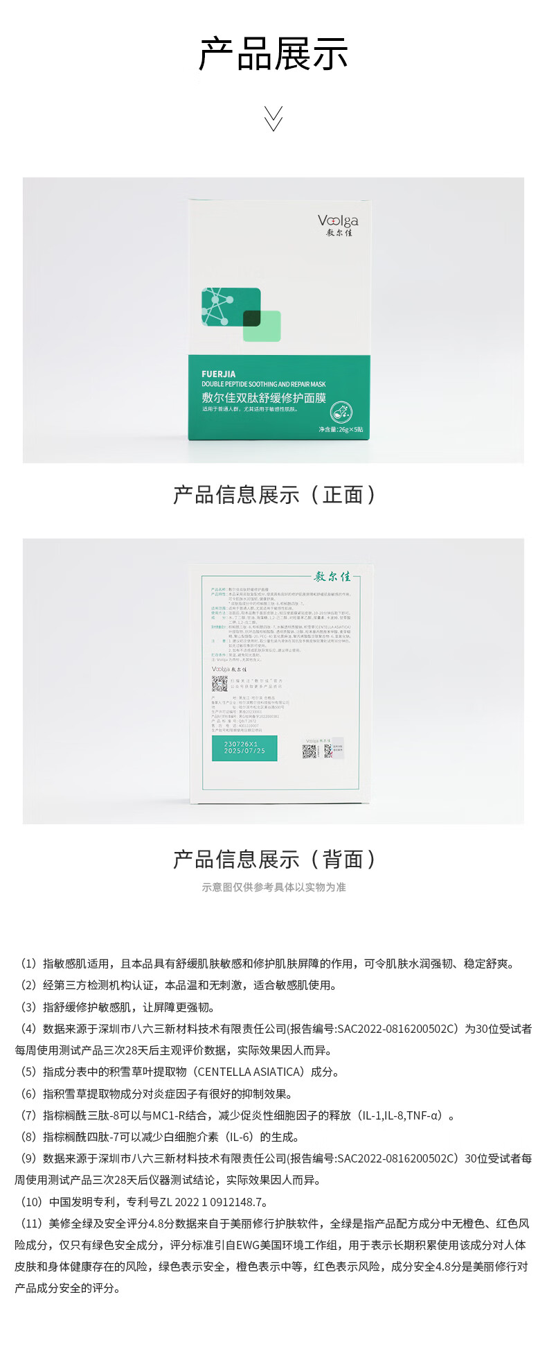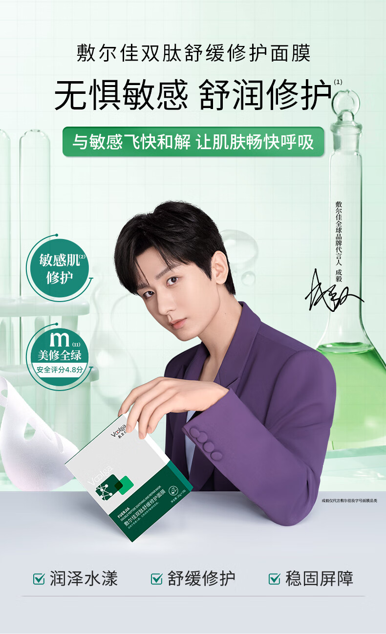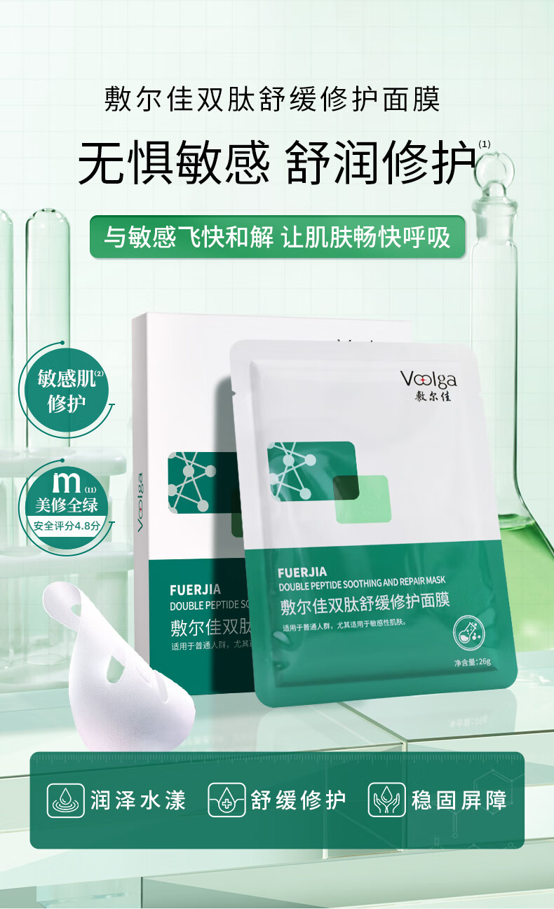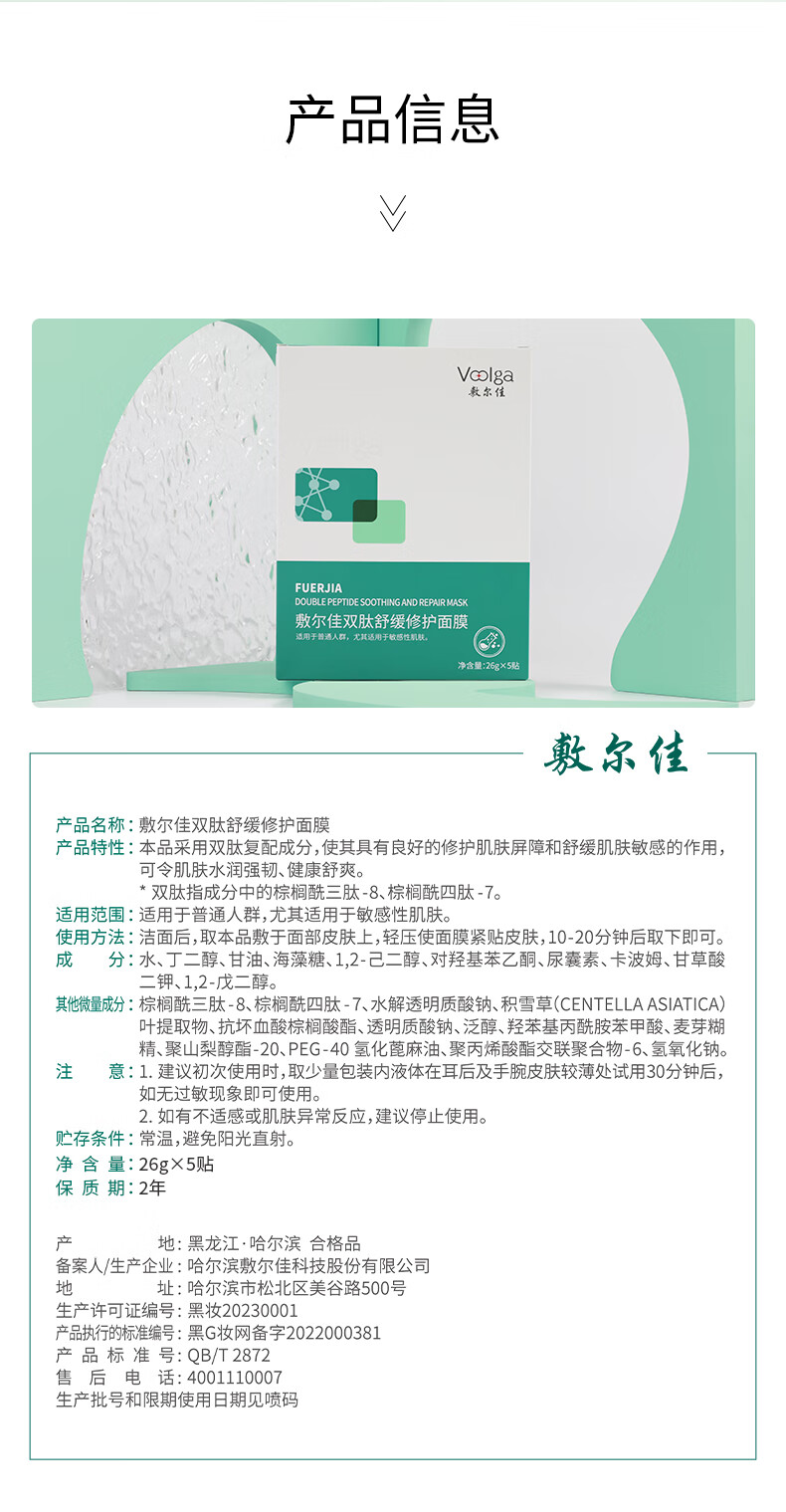 敷尔佳双肽舒缓修护面膜26g*5贴/盒