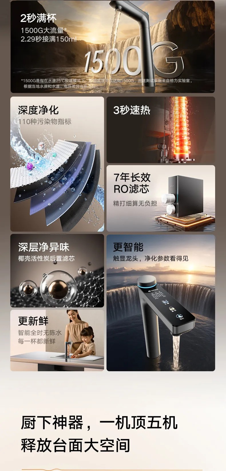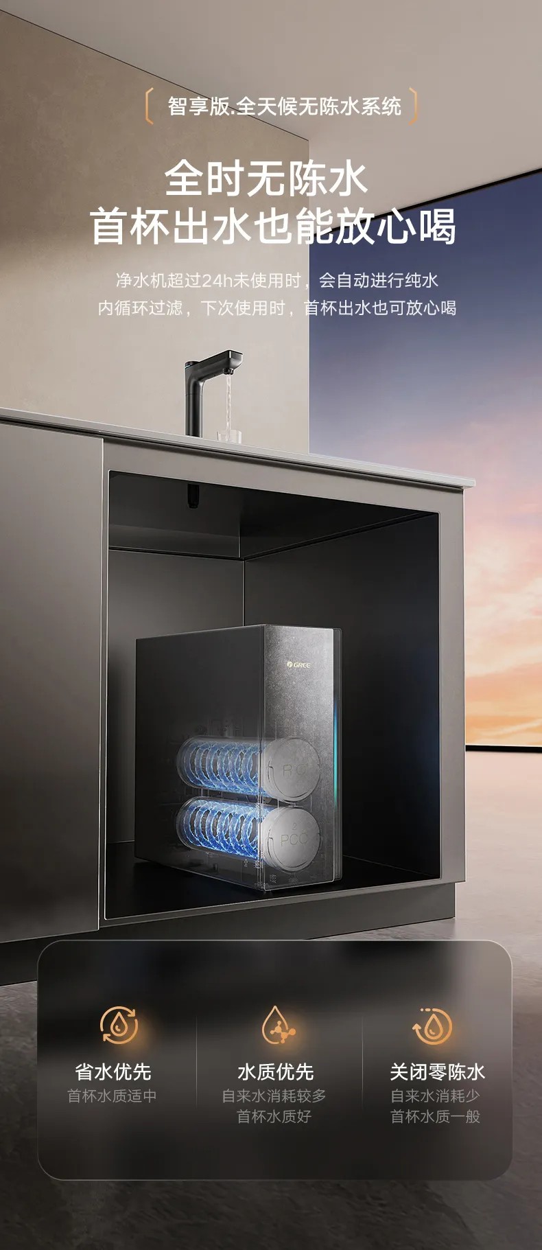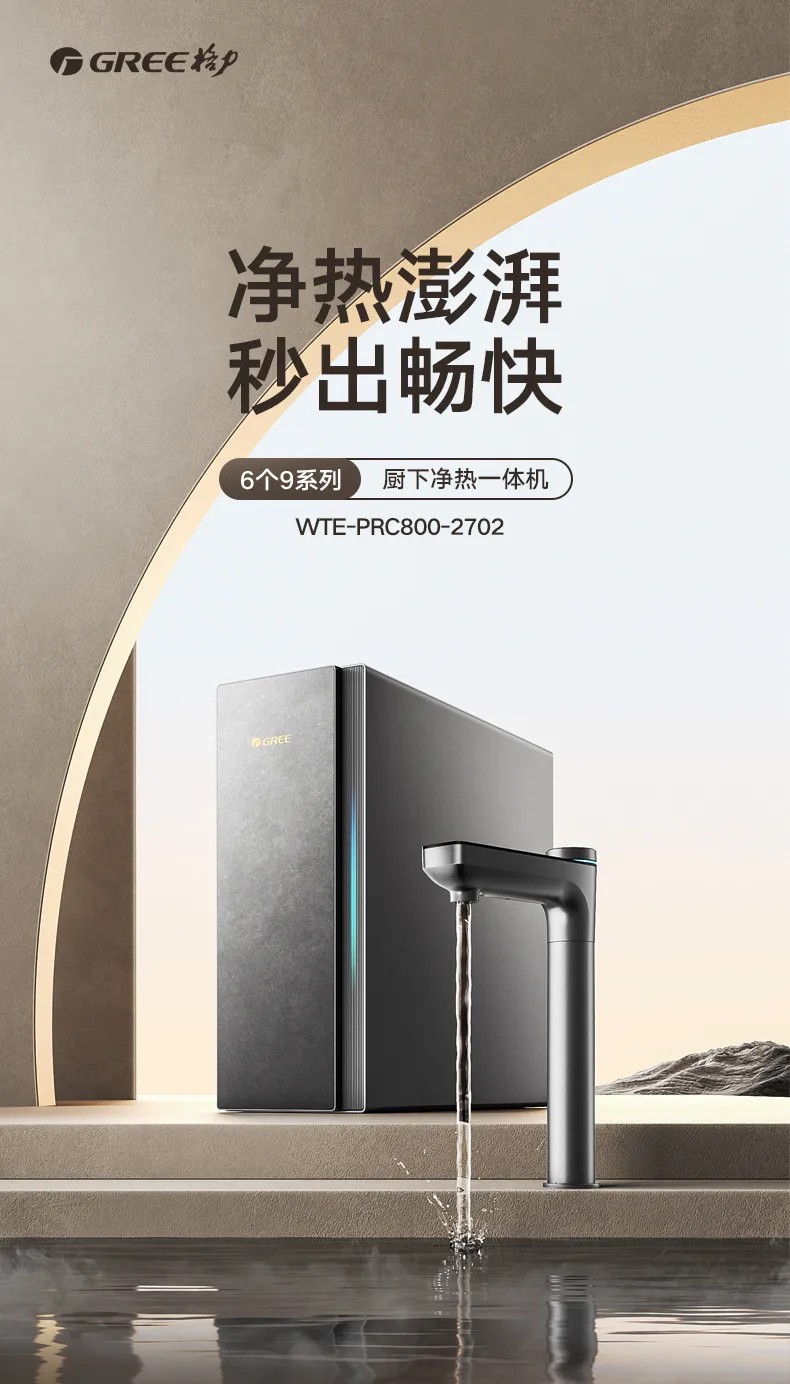 格力“6个9”系列反渗透净热一体机 净热一体 澎湃大流量 WTE-PRC800-2702 烟雨灰