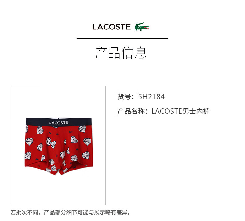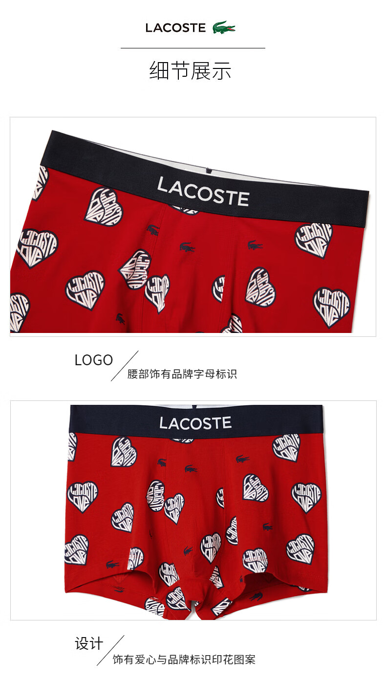 【海南专供价】Lacoste法国鳄鱼男士新款时尚舒适柔软平角内裤5H2184-10