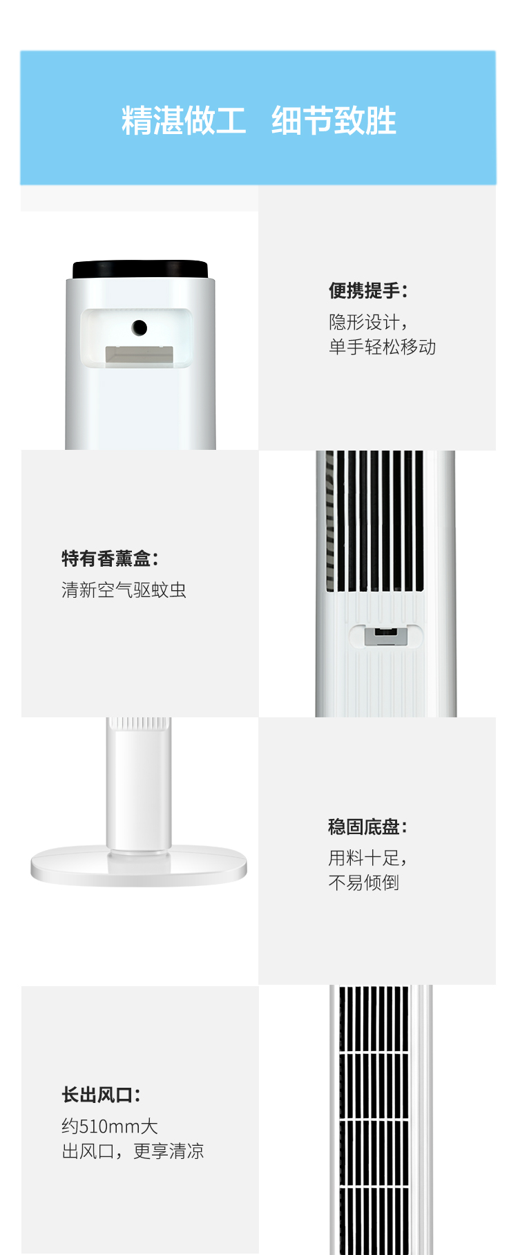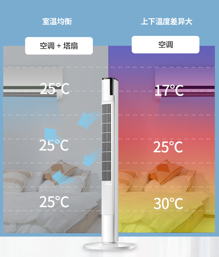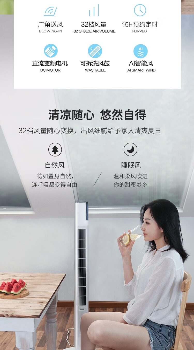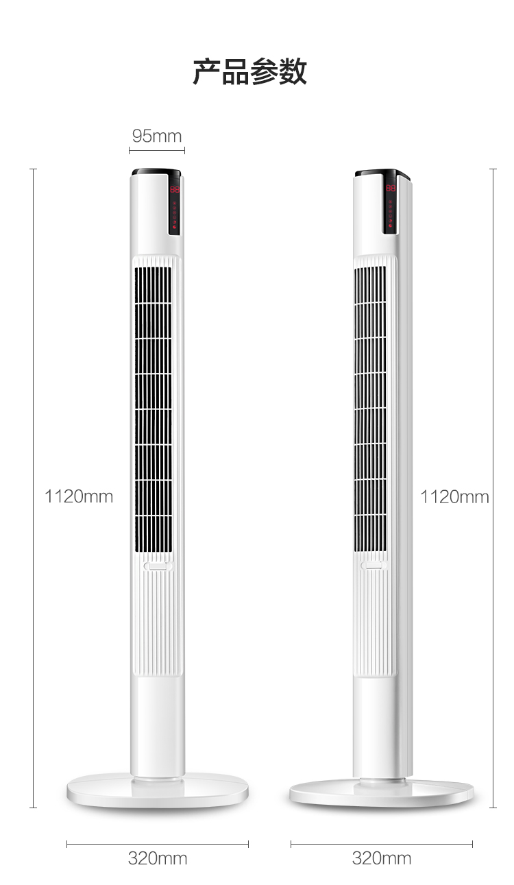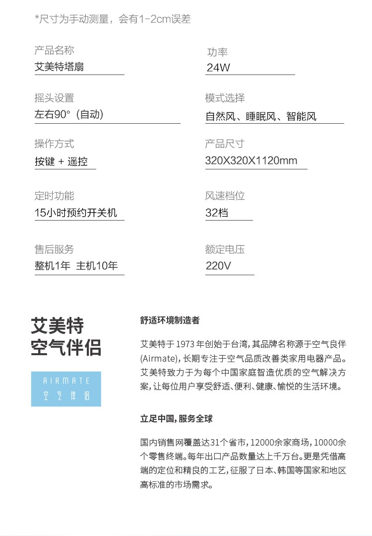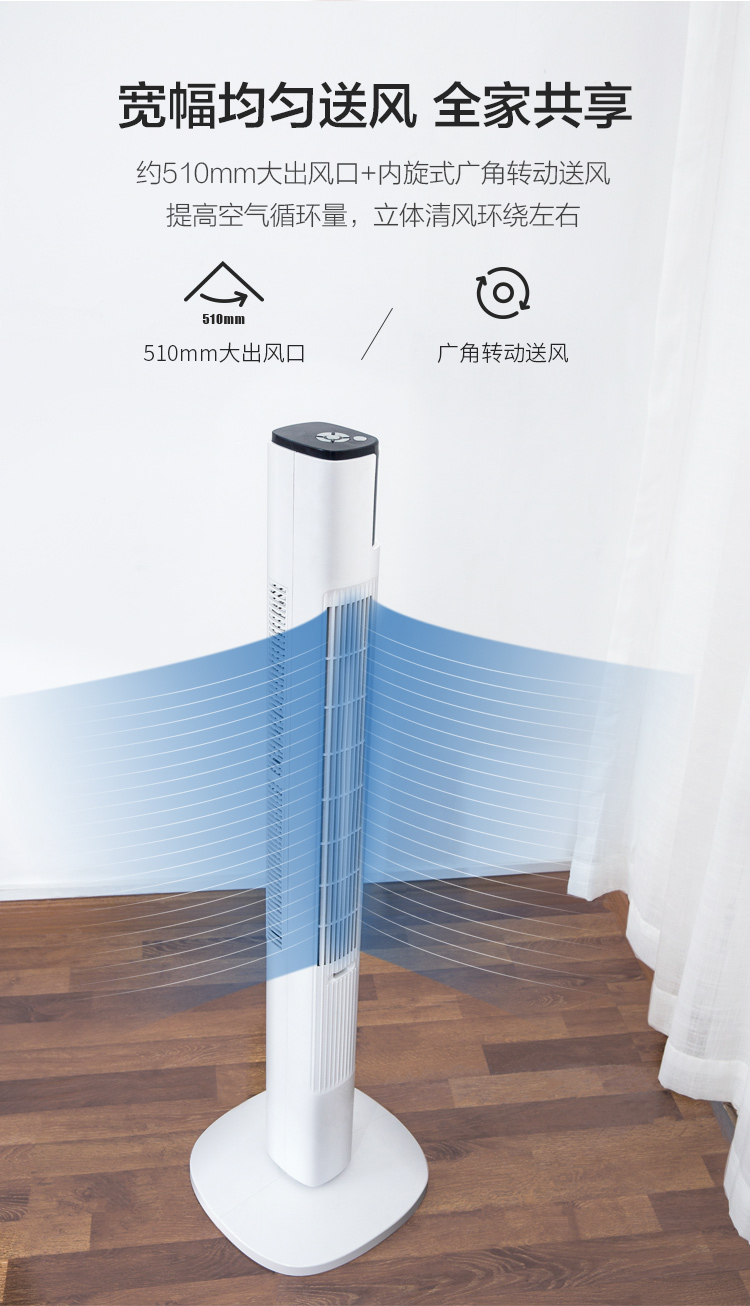艾美特(Airmate)遥控塔扇FT80R 家用直流变频可拆洗电风扇摇头办公室立式大厦扇 白色