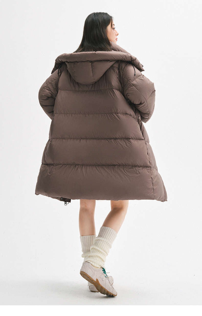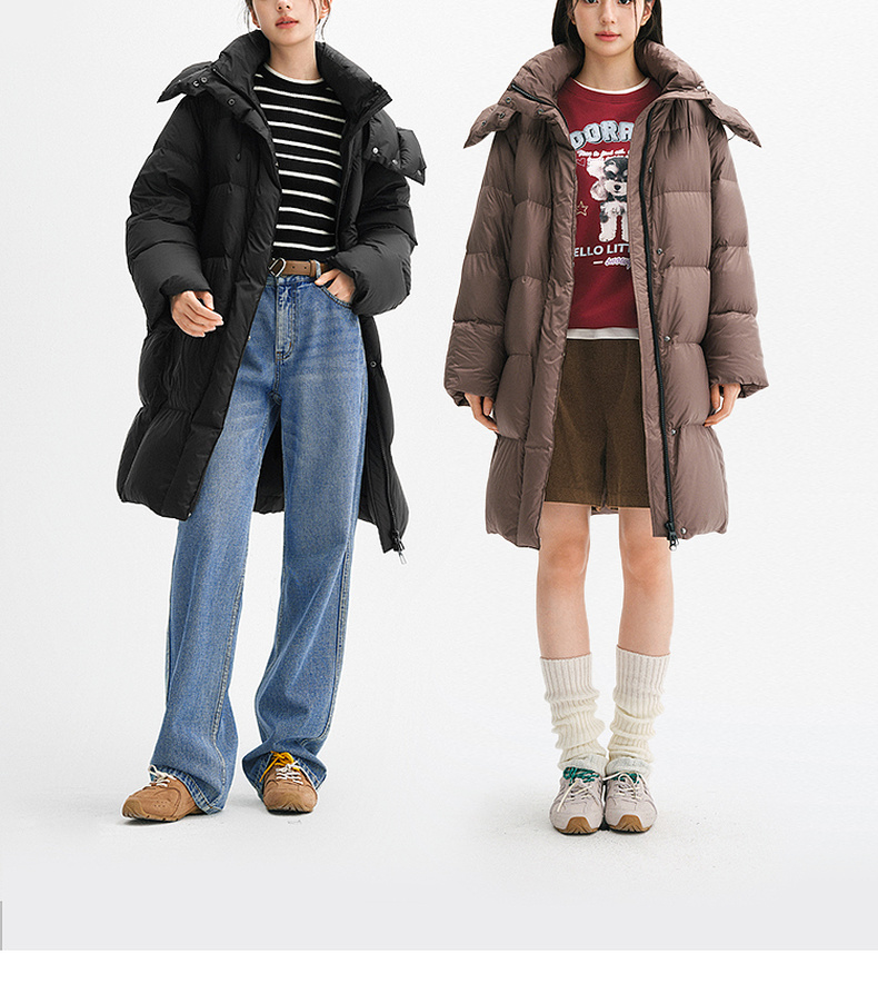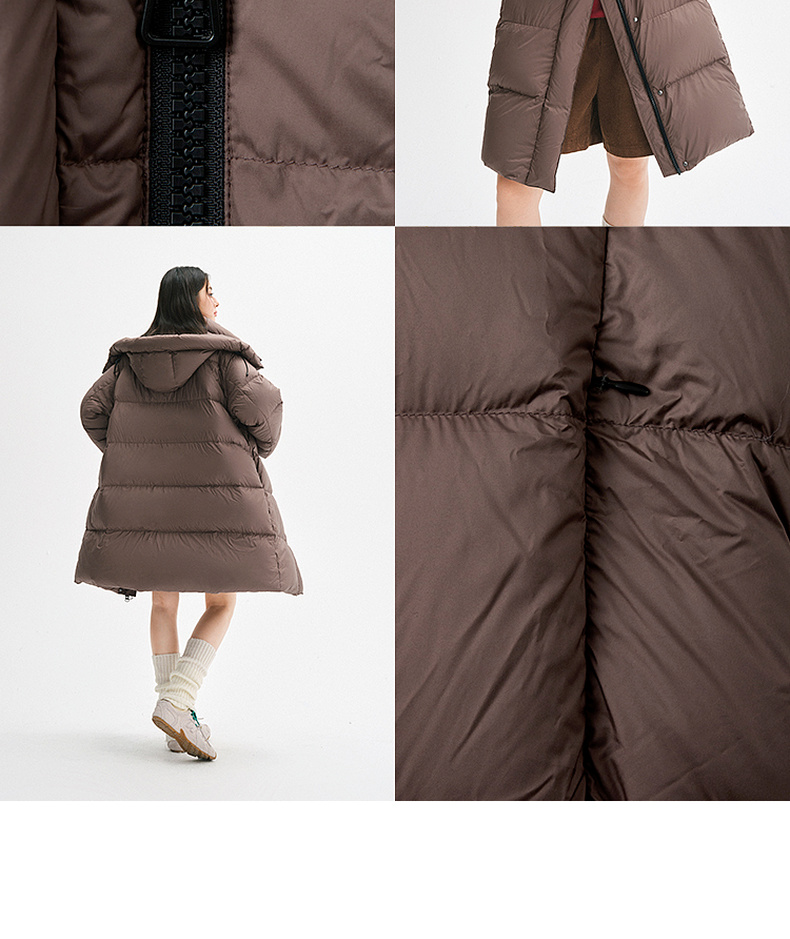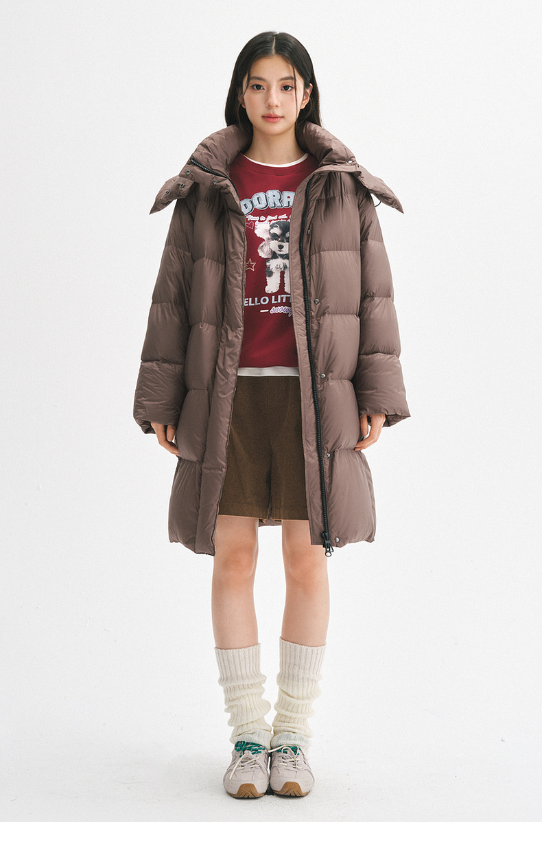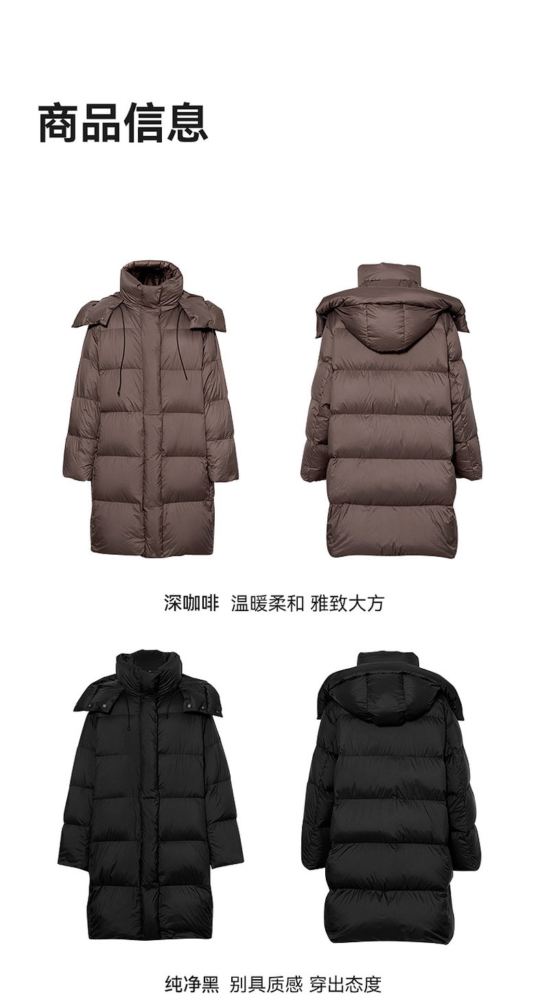 【严选】【90鸭绒】诗凡黎连帽立领防风中长款羽绒服2024年冬季新款面包服SFA180081