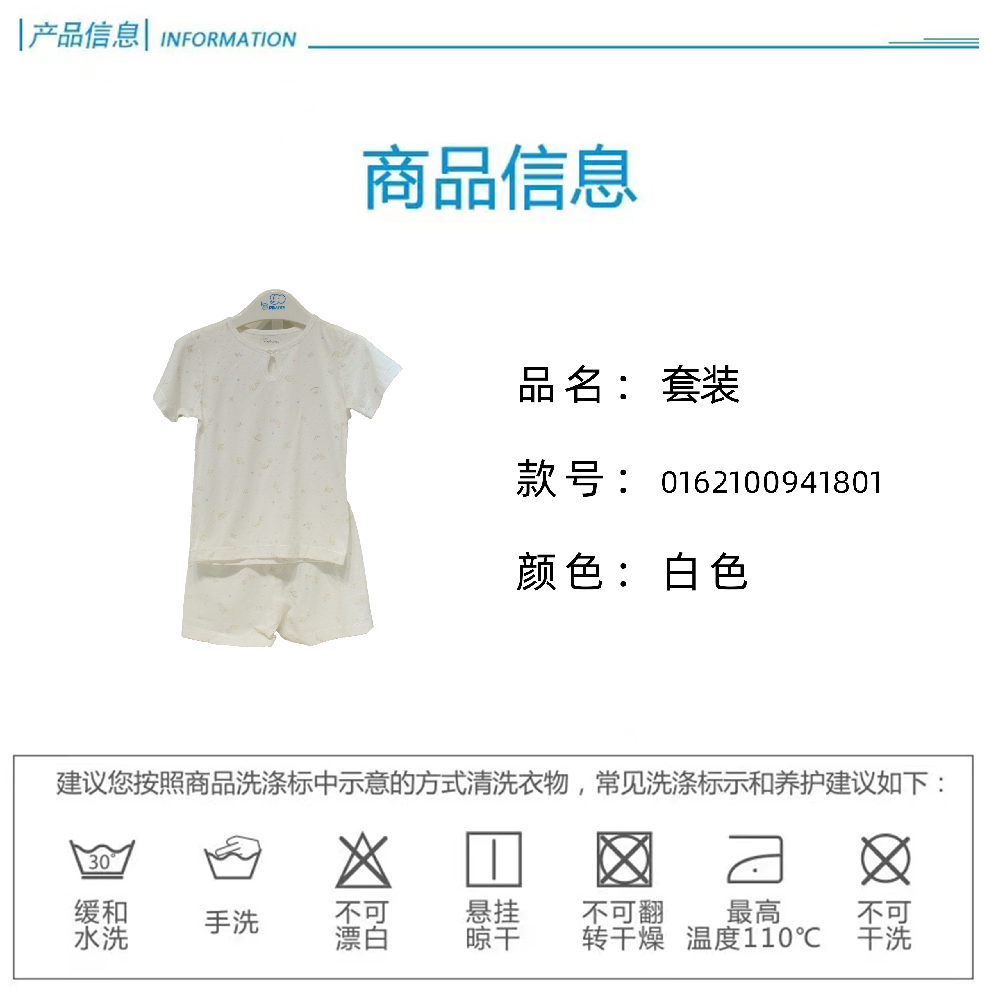 丽婴房-内衣类(夏)A7-16一粒扣短袖套装(N1优雅小象)