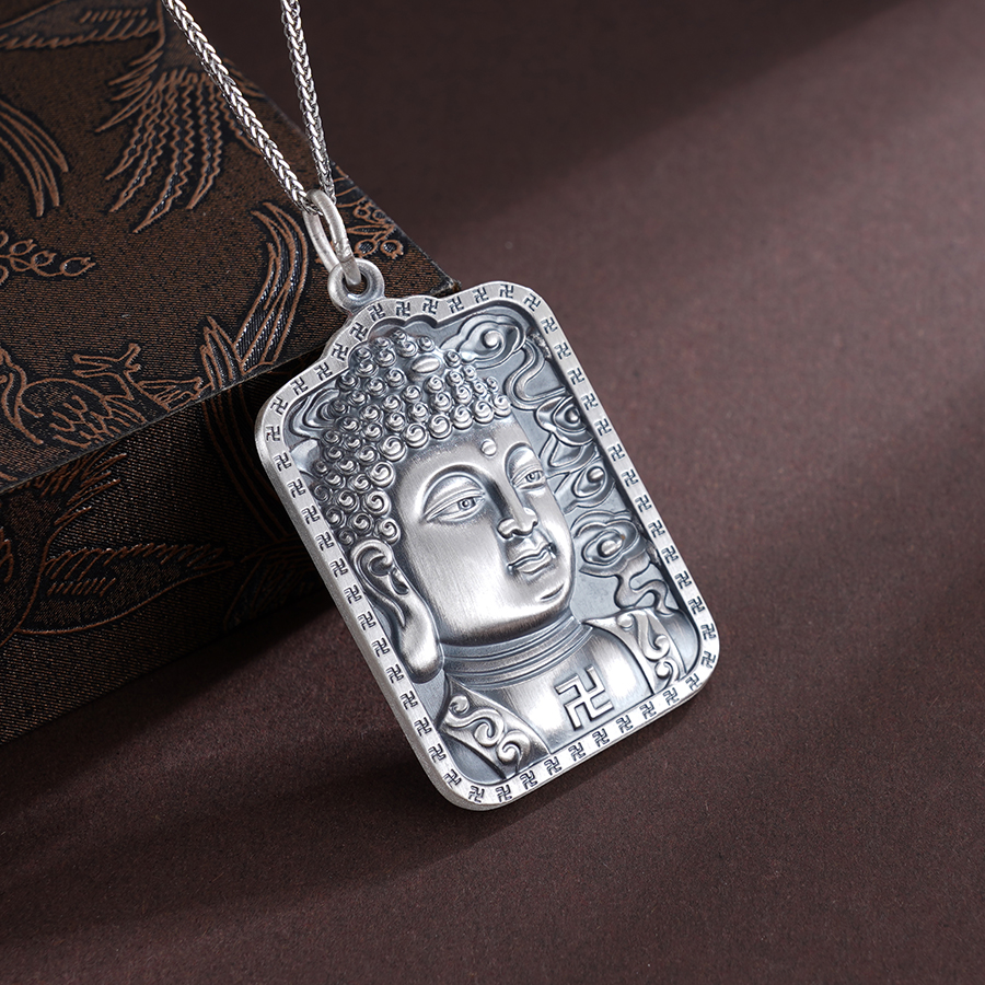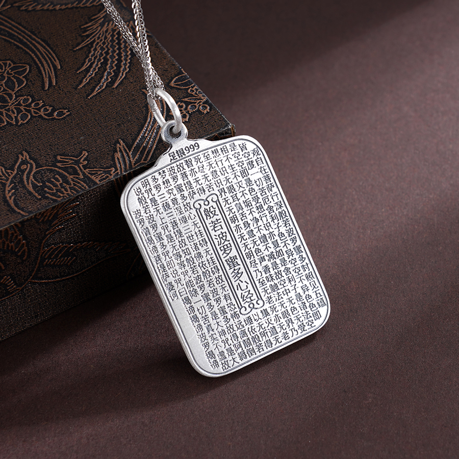 【寓意】:足银吊牌正面浮雕佛祖法相,背面精镌般若心经。随身佩戴可感佛光护佑,福慧双修,身心俱宁。