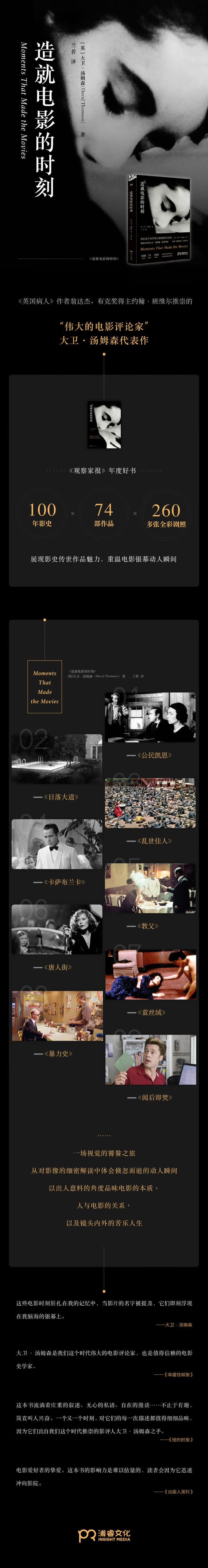 电影史学家大卫·汤姆森在代表作《造就电影的时刻》里,从1887年埃德沃德·迈布里奇早期先锋性的照片开始,选取百年电影史中包括《乱世佳人》《卡萨布兰卡》《M就是凶手》《长眠不醒》《第三个人》《公民凯恩》《火车怪客》《东京物语》《日落大道》《西北偏北》《放大》《教父》《唐人街》《出租车司机》《闪灵》《蓝丝绒》《暴力史》《声名狼藉》等70多部电影,引领读者进入一场视觉的饕餮之旅:既让我们一次性领略了影史上重要作品的魅力,又能从他对大量的影像细节的解读中体会常常被我们忽视的动人瞬间。他以独特的角度和作家精准恰当的表达,揭示了一个时刻是如何成就一部电影,从而告诉我们电影的本质,以及镜头内外的苦乐人生。