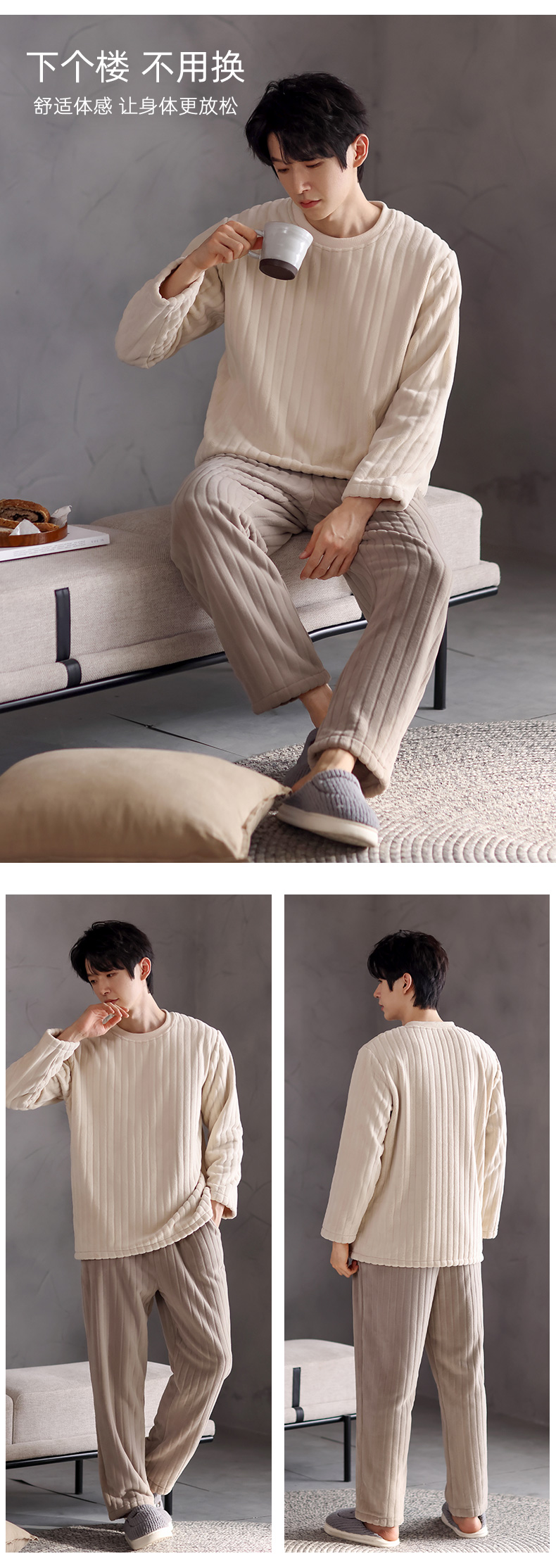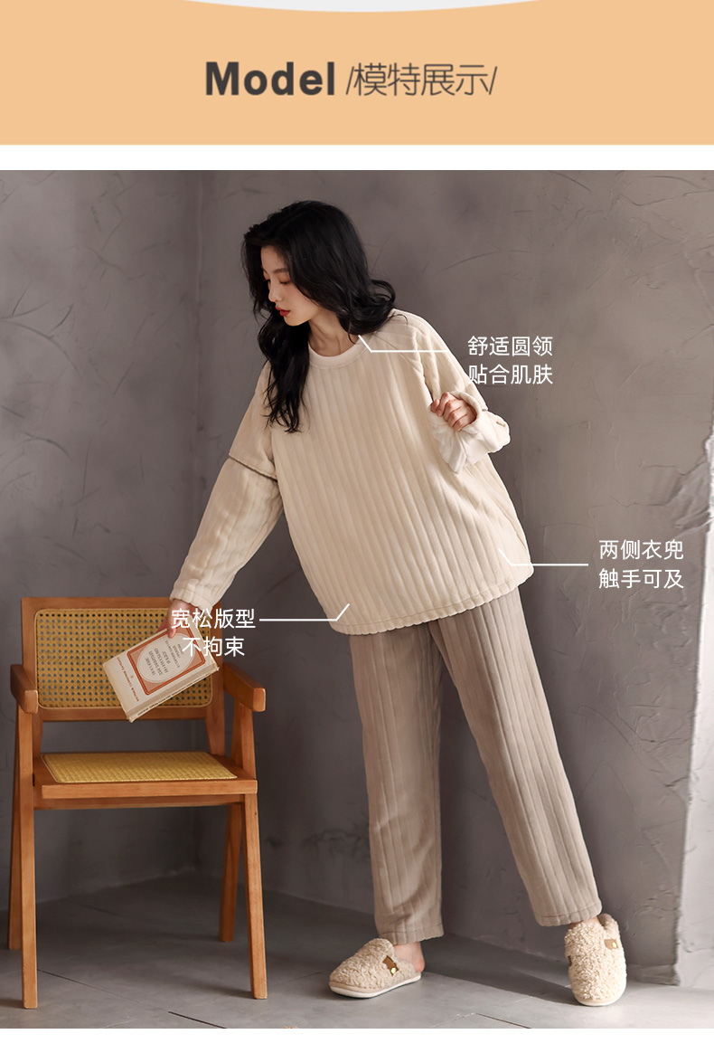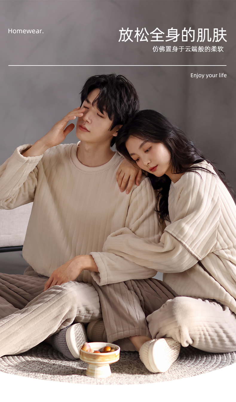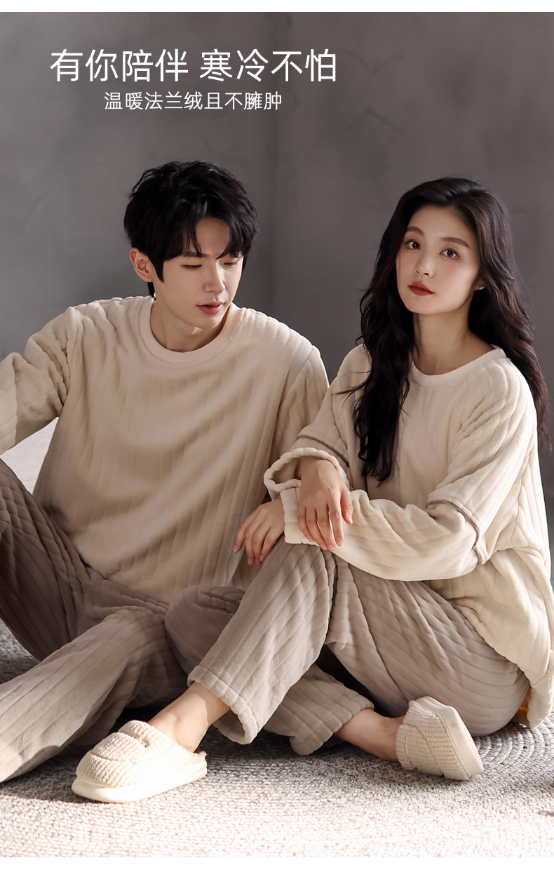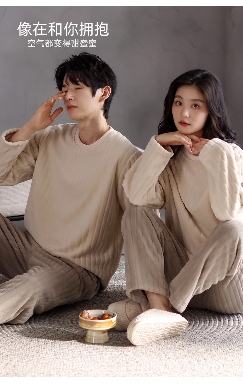 【冬季迎新】洁丽雅温暖珊瑚绒睡衣情侣大码套头亲肤长袖长裤套装