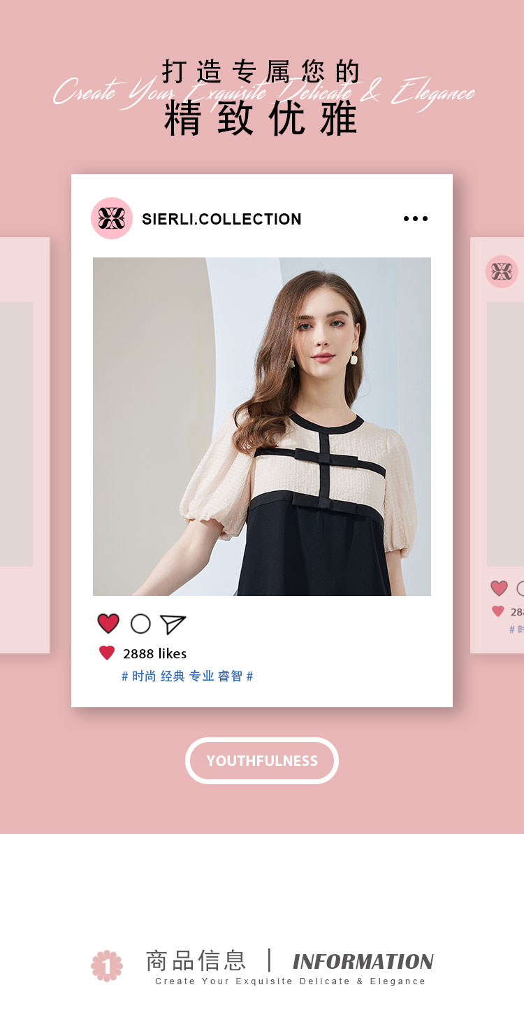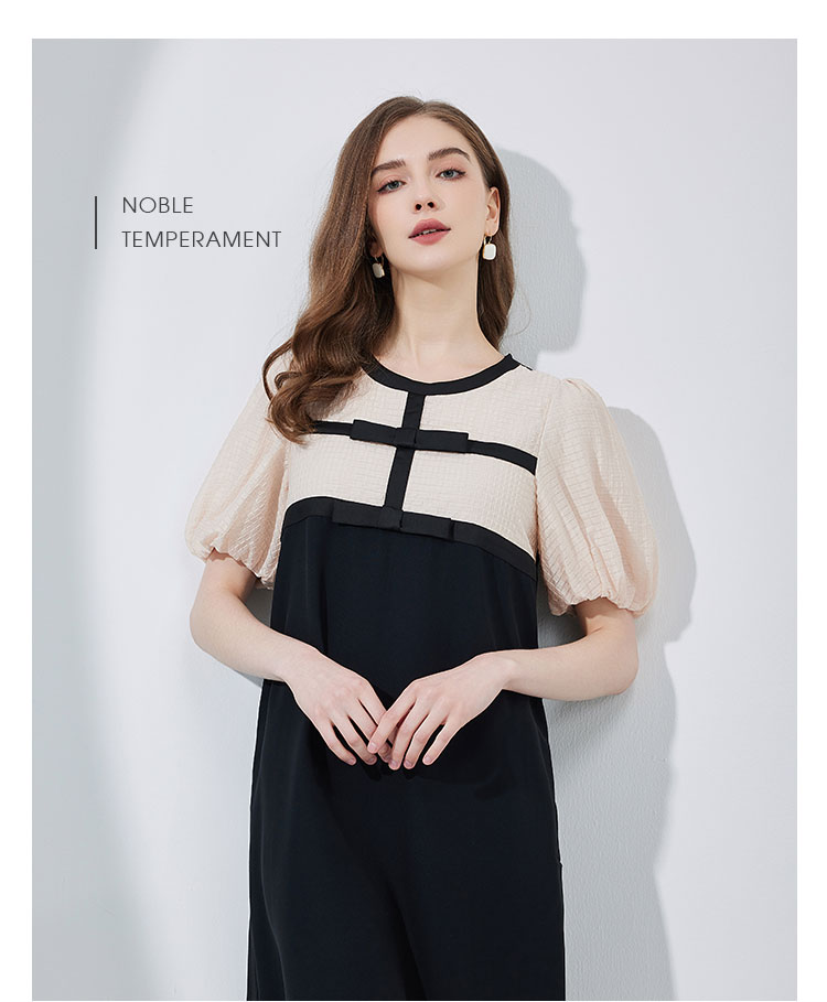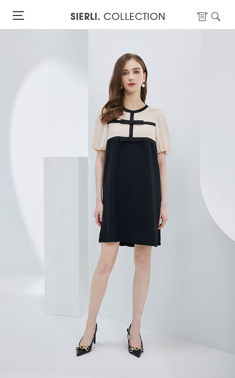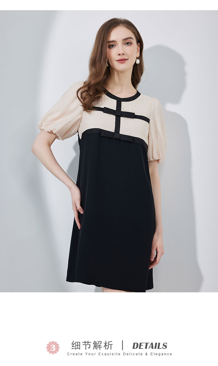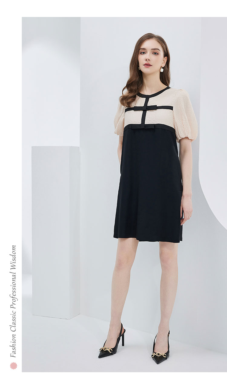 RF8E7斯尔丽瑟俪2023春夏新款撞色拼接高腰节显腿长显瘦减龄女连衣裙