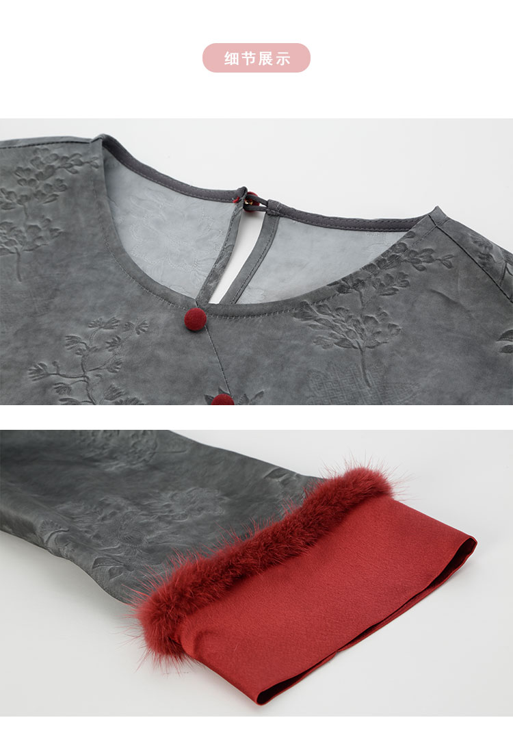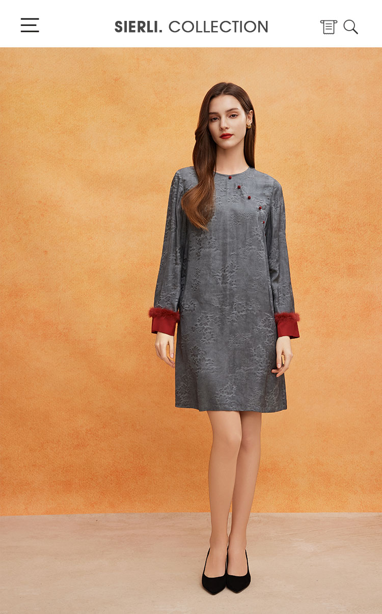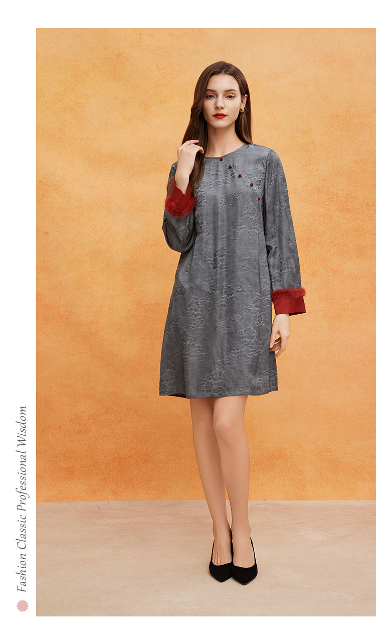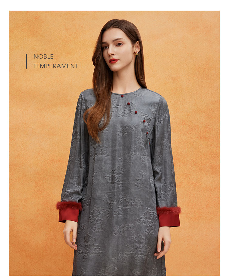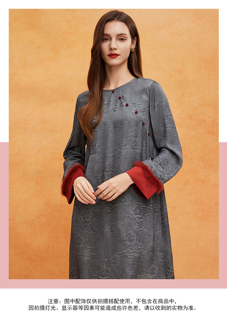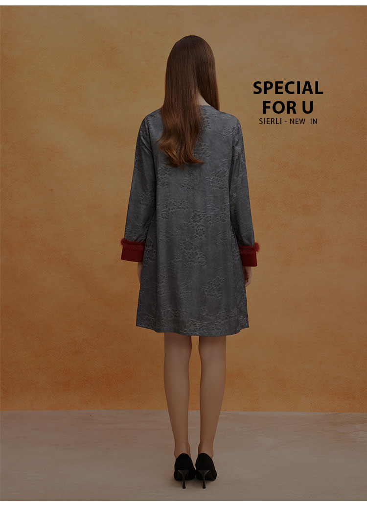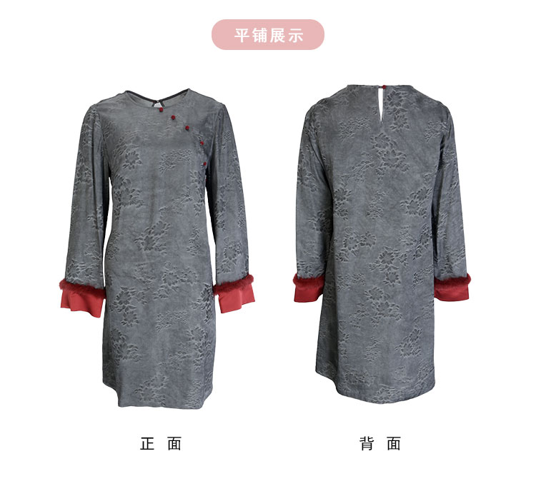 QE823斯尔丽25春季新款独家印花高腰拼接丝绒修身放摆净色长连衣裙