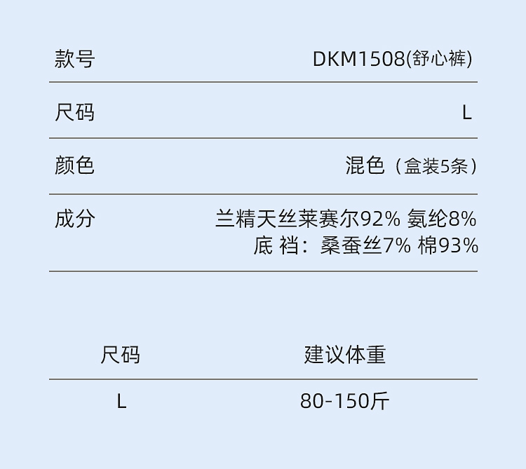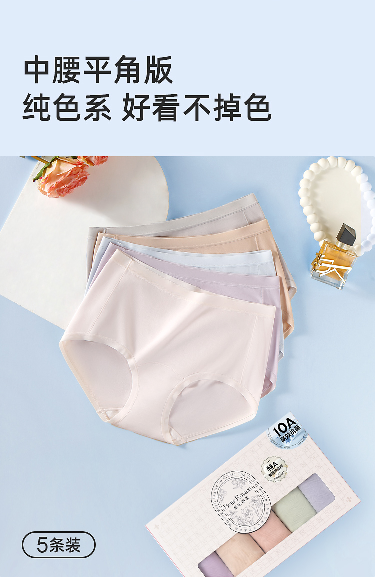 (一盒5条装)皇家丽美 女士舒心裤2.0A 类婴儿棉内裤 蚕丝棉裆抗菌 加大弹力中腰平角裤DKM1508