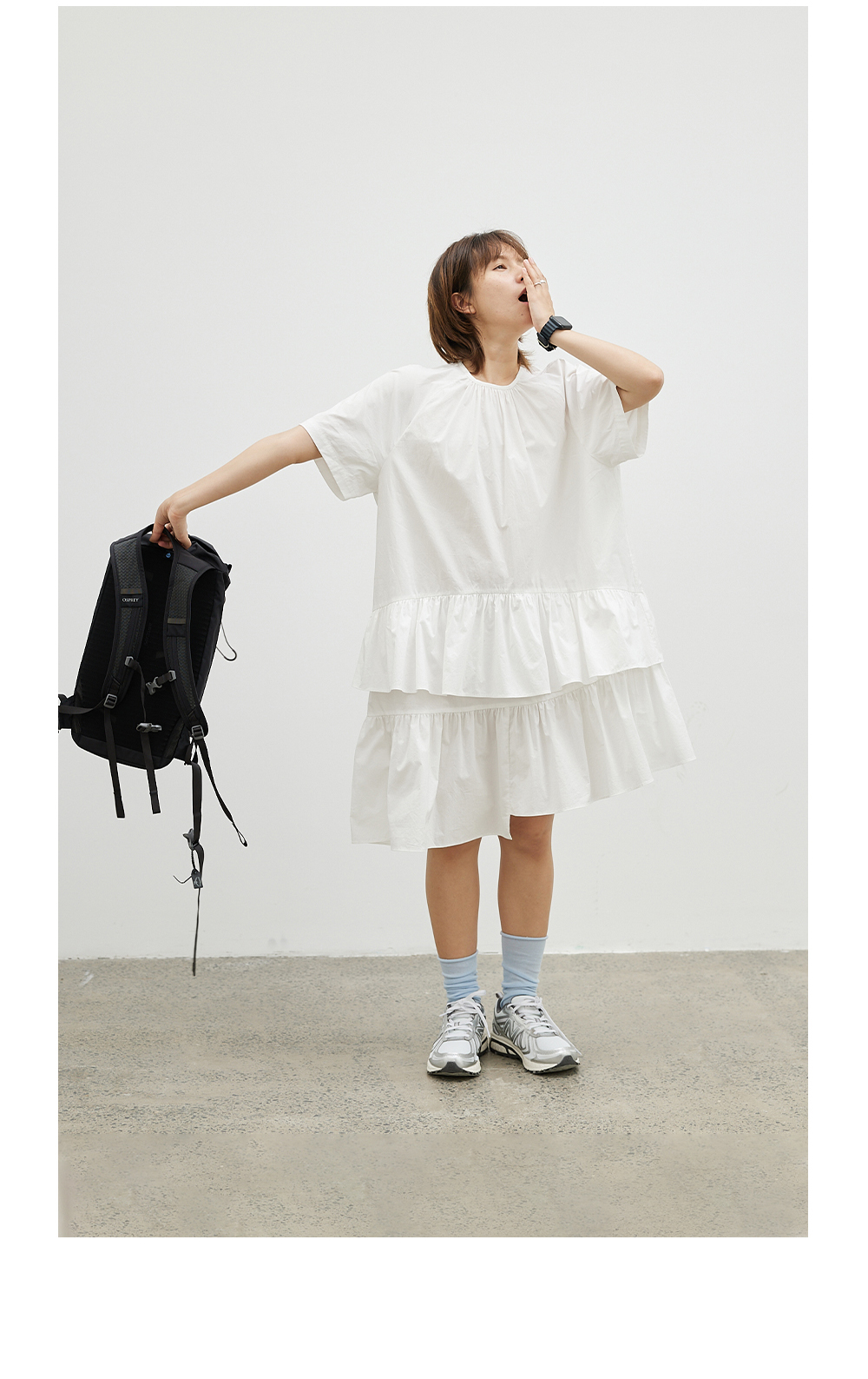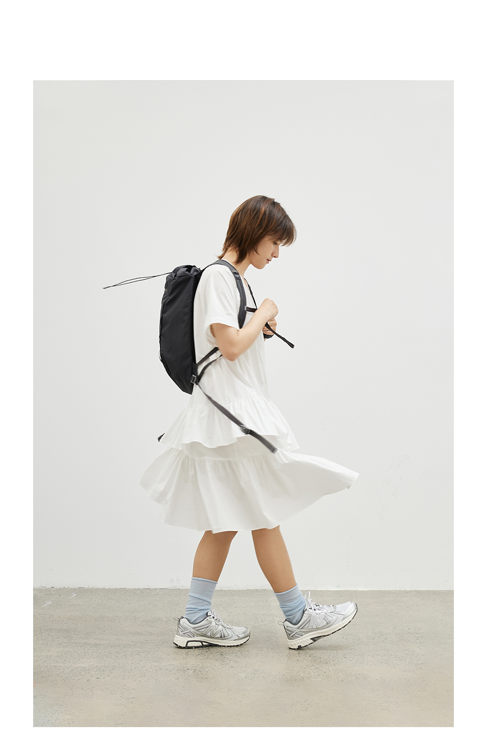 步履不停/4B31122C/不规则裙摆短袖连衣裙