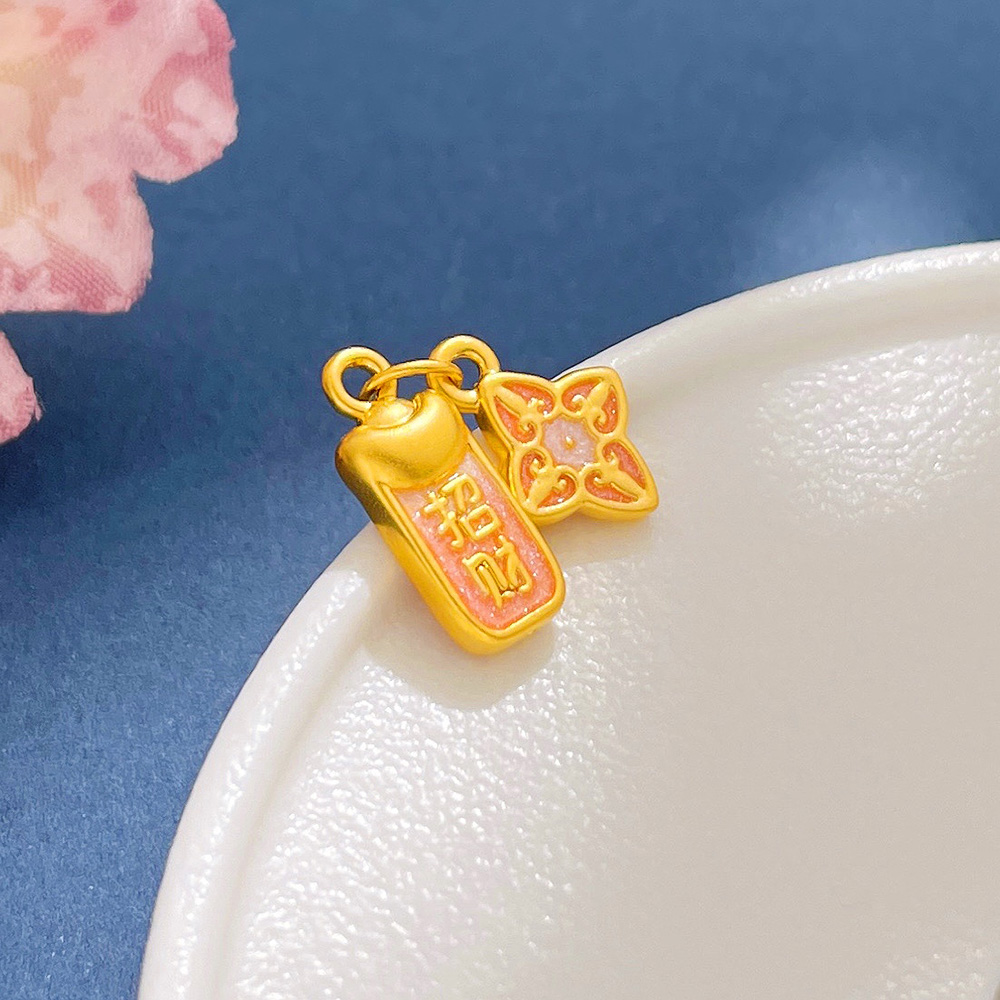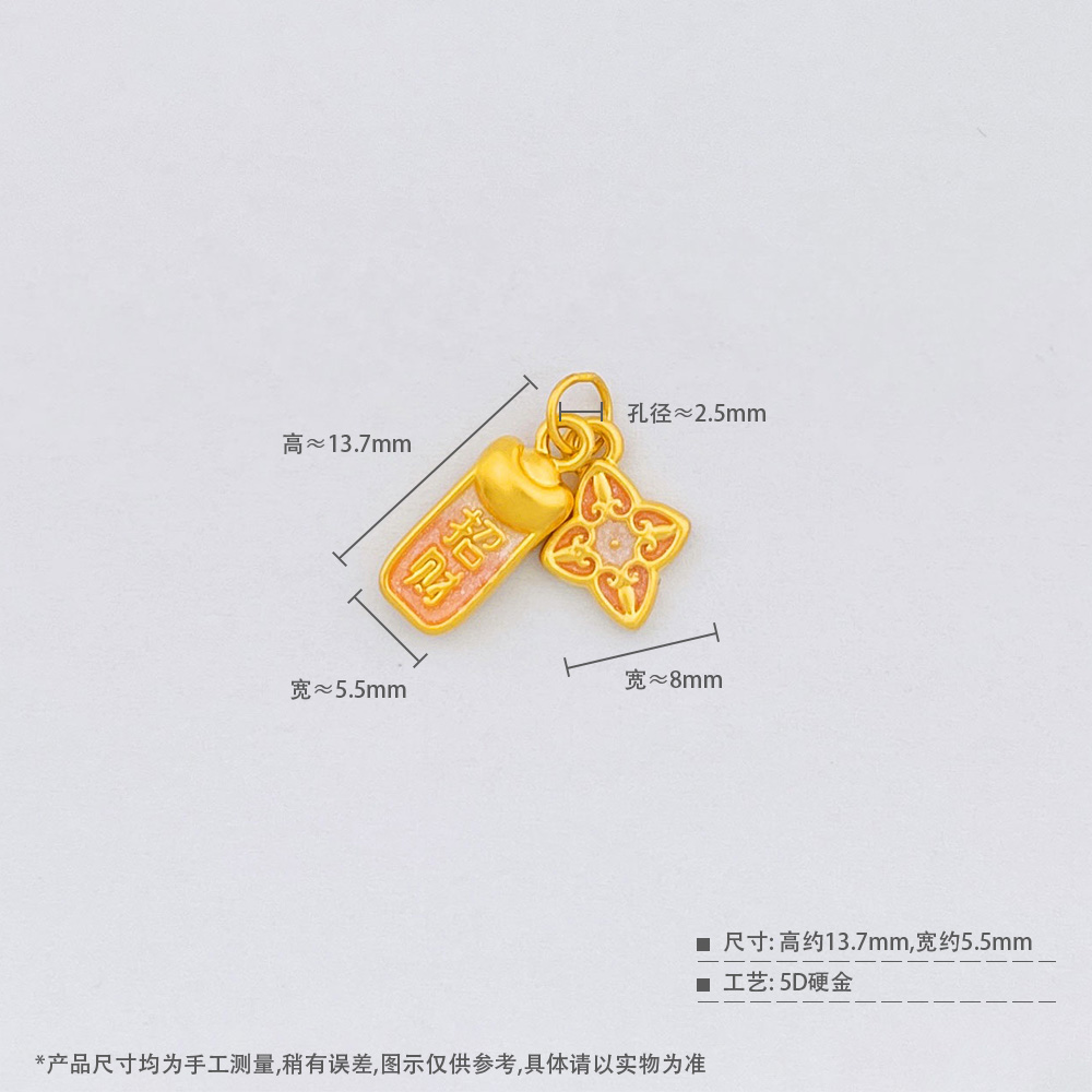 【限时7.5折】【定价黄金】足金 #微硬金 #招财进宝 无氰5D微硬金低温珐琅空心招财方牌如意四叶花手串挂件Diy手串配件(U5DSC00130)(预售产品下单后不退款不退货不换货不补差价)