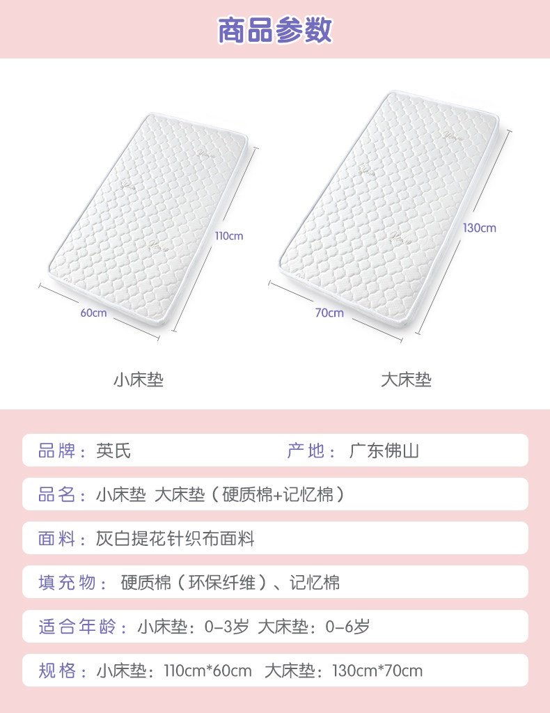 英氏婴儿床垫宝宝记忆棉床垫子舒适透气小床垫110*60cm内径 YBCDJ0P006A01 YBCDJ0P008A01