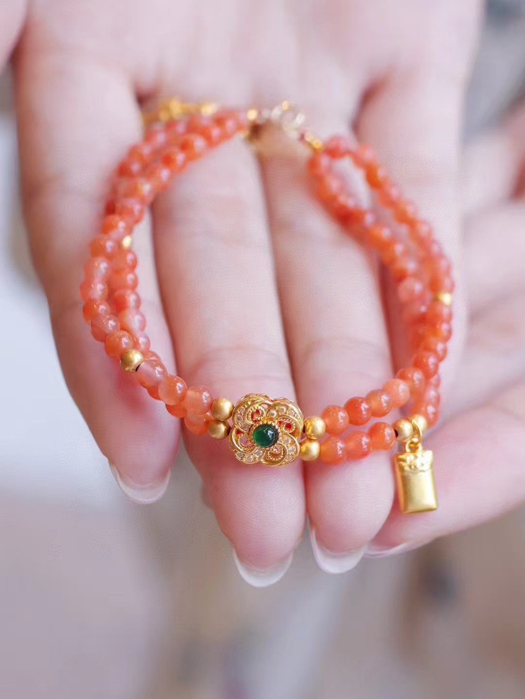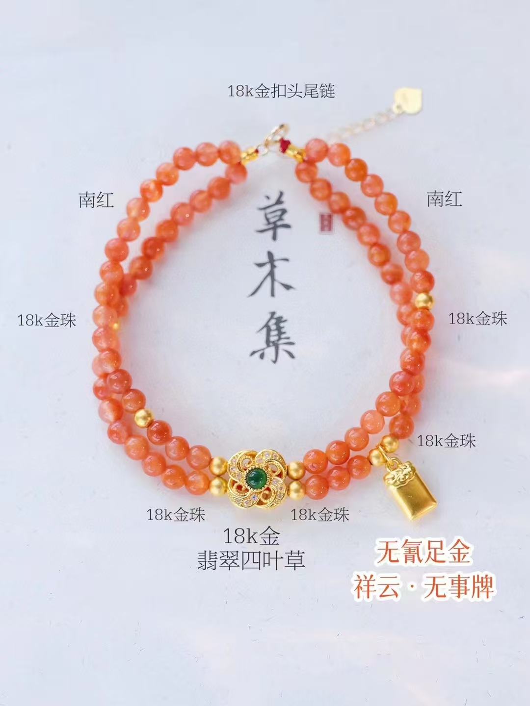 【38甄选】999足金无事牌+18k金南红手链/高级礼盒包装