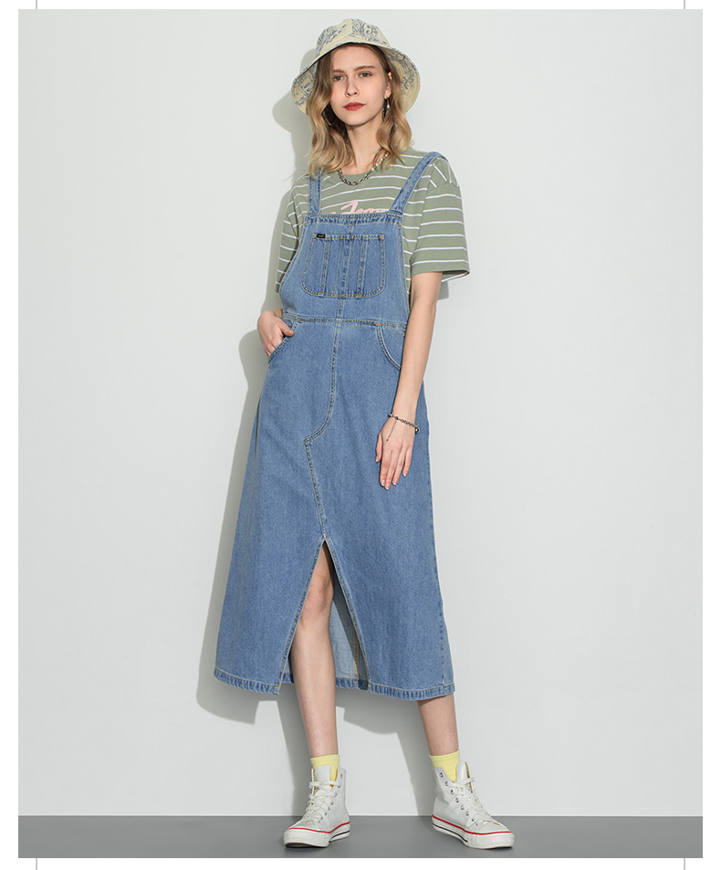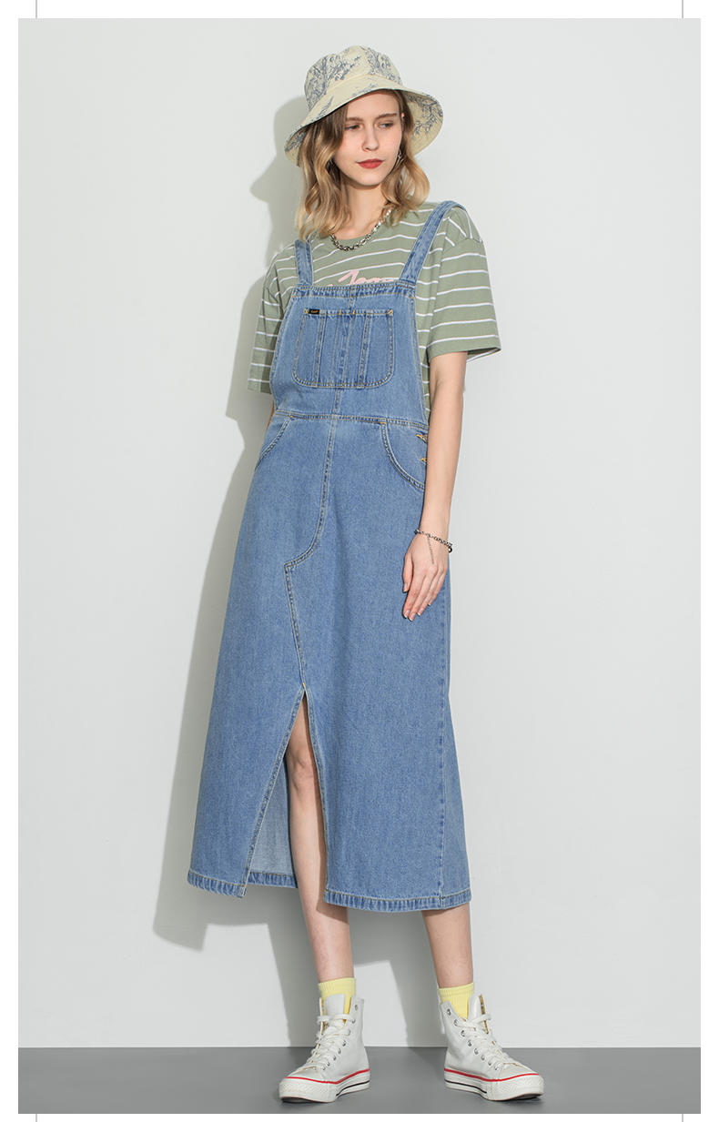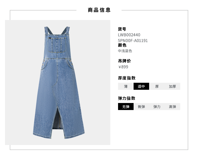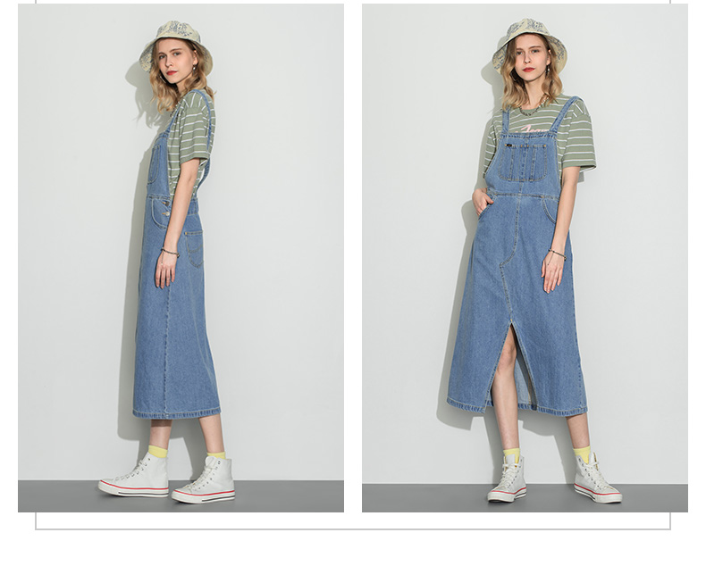 Lee商场同款22春夏新品中浅蓝色女牛仔背带裙潮LWB0024405PN-191