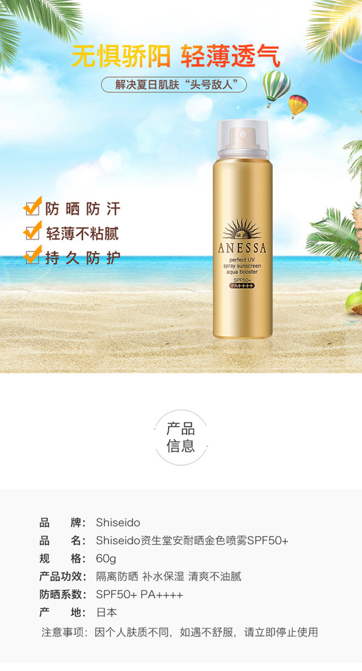 新款安耐晒金瓶防晒喷雾60ml