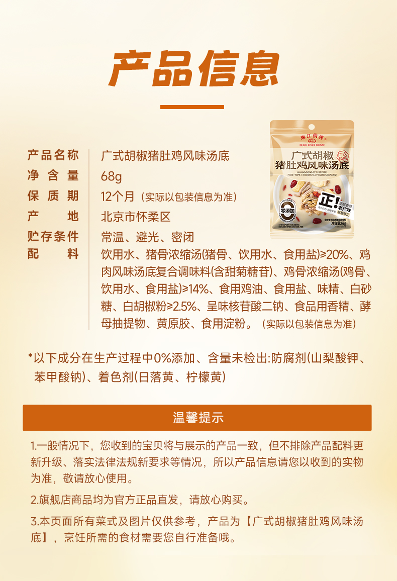 珠江桥牌 广式胡椒猪肚鸡汤底68g小袋装