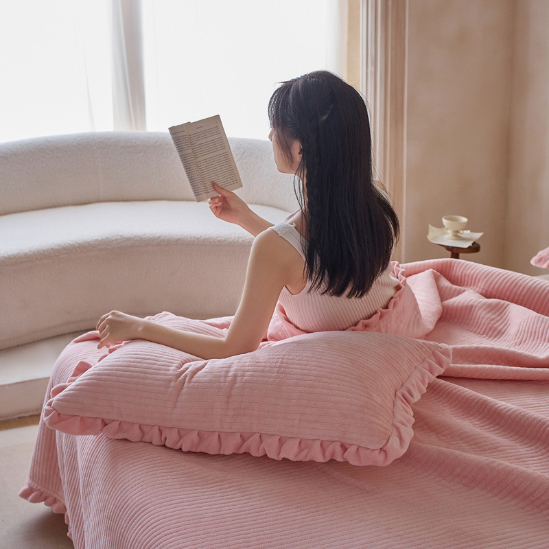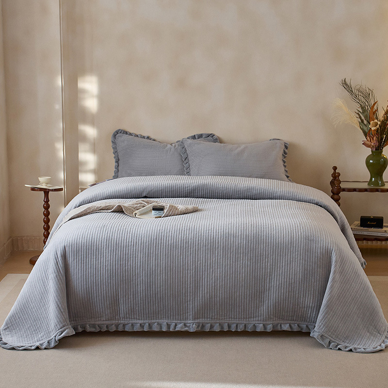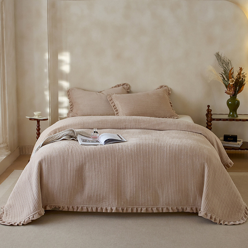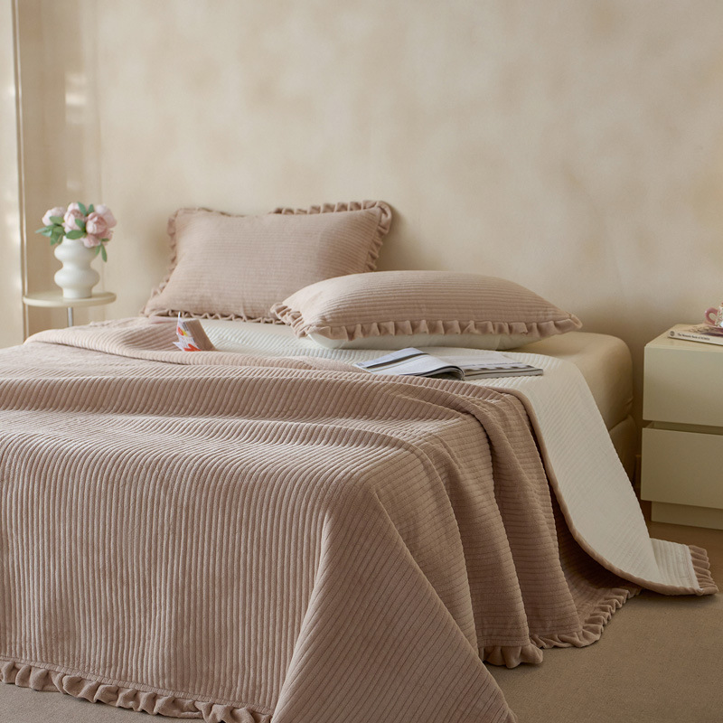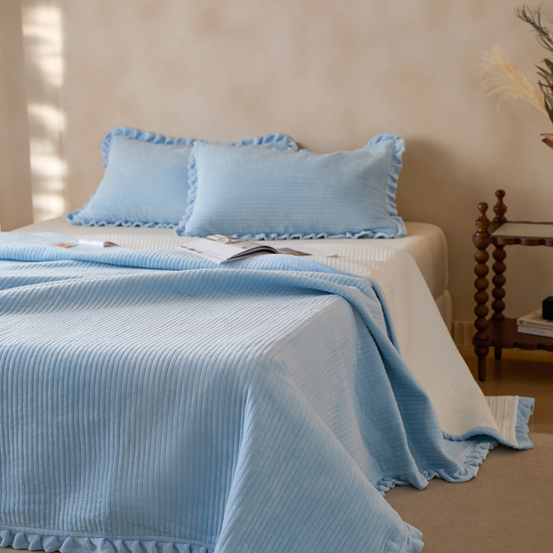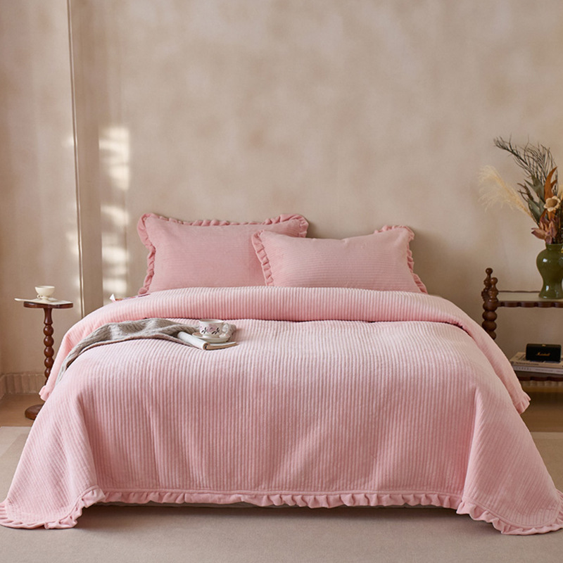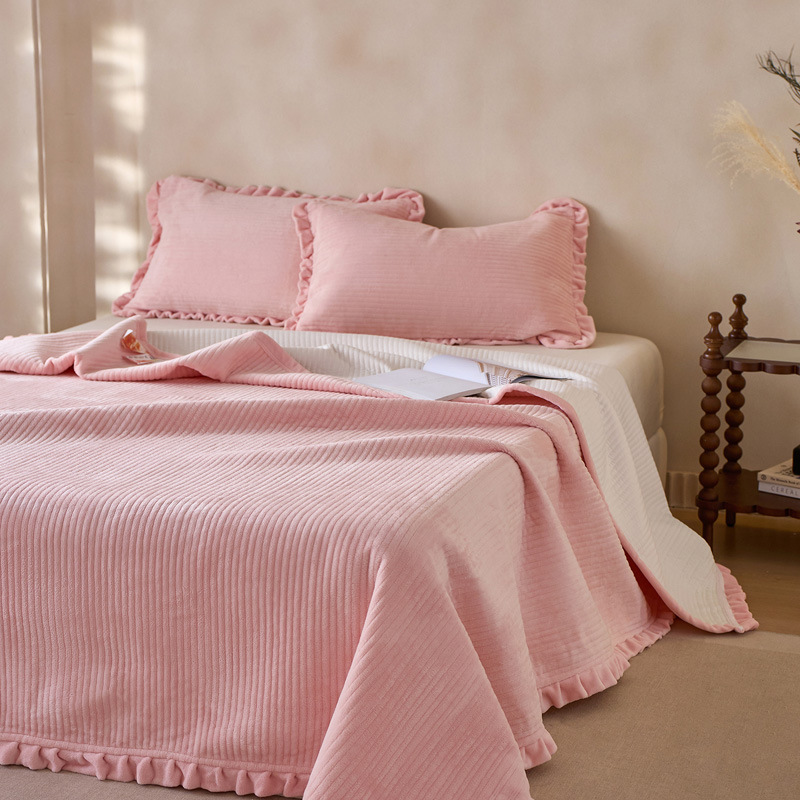 【牛奶绒床盖】牛奶绒床盖三件套秋冬保暖床单纯色绒布毯子床盖枕套
