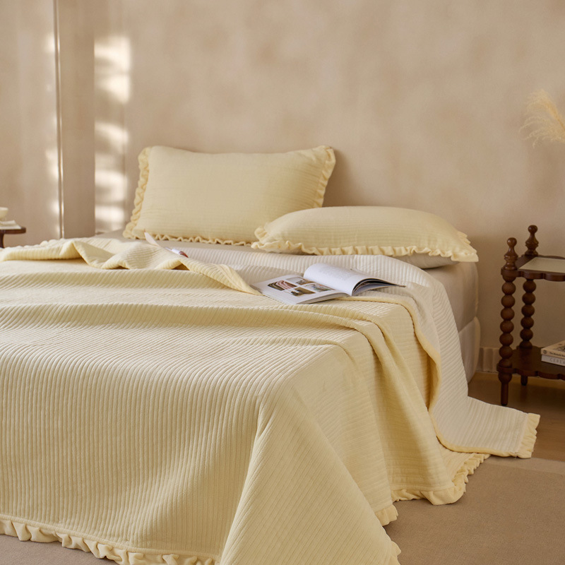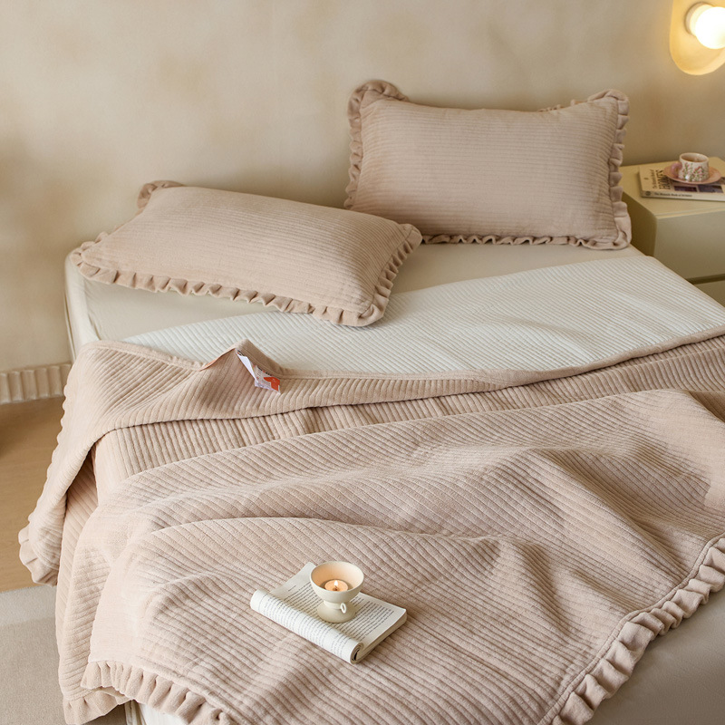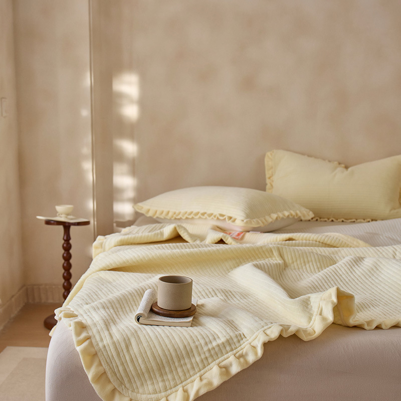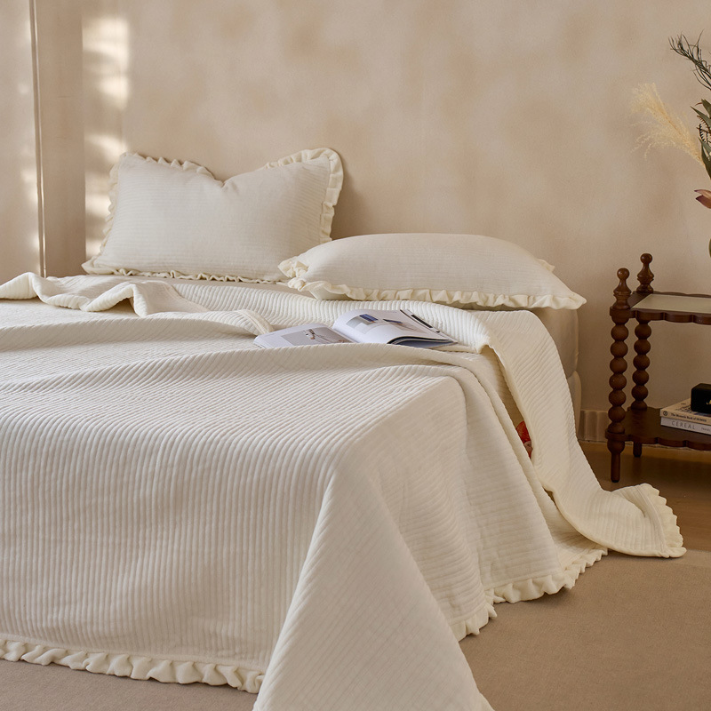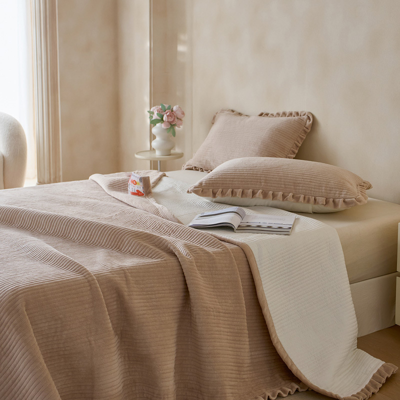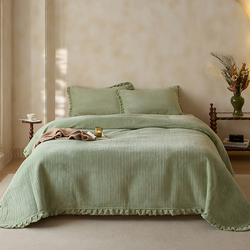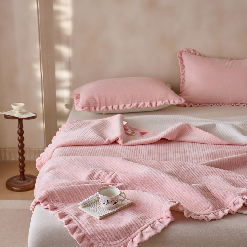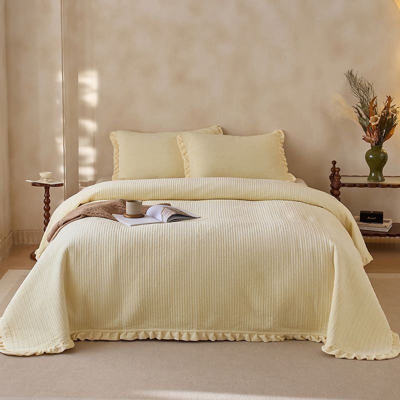 【牛奶绒床盖】牛奶绒床盖三件套秋冬保暖床单纯色绒布毯子床盖枕套