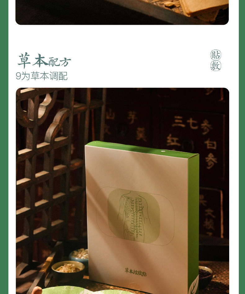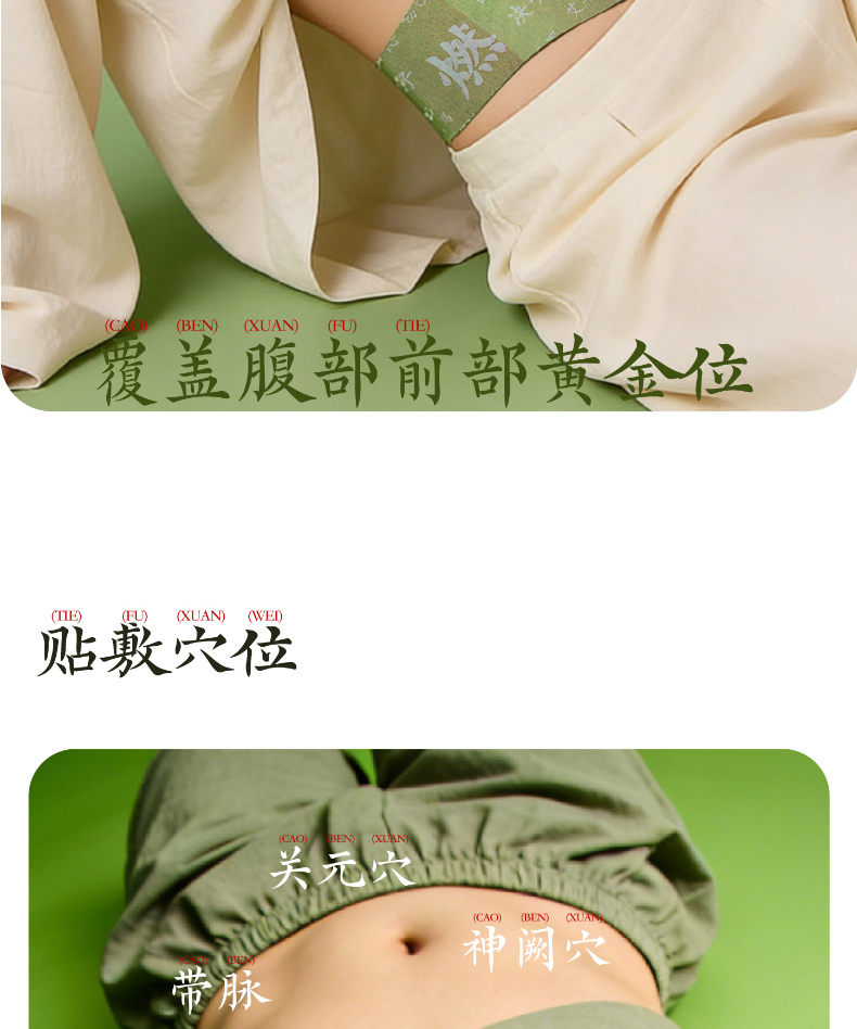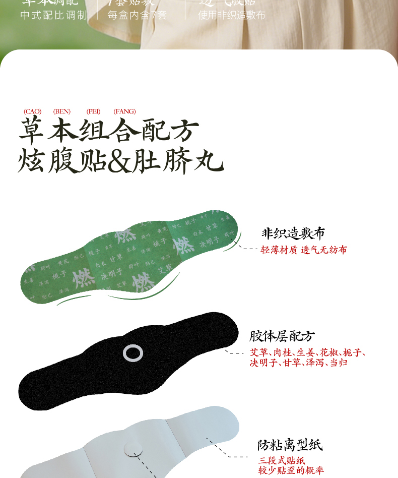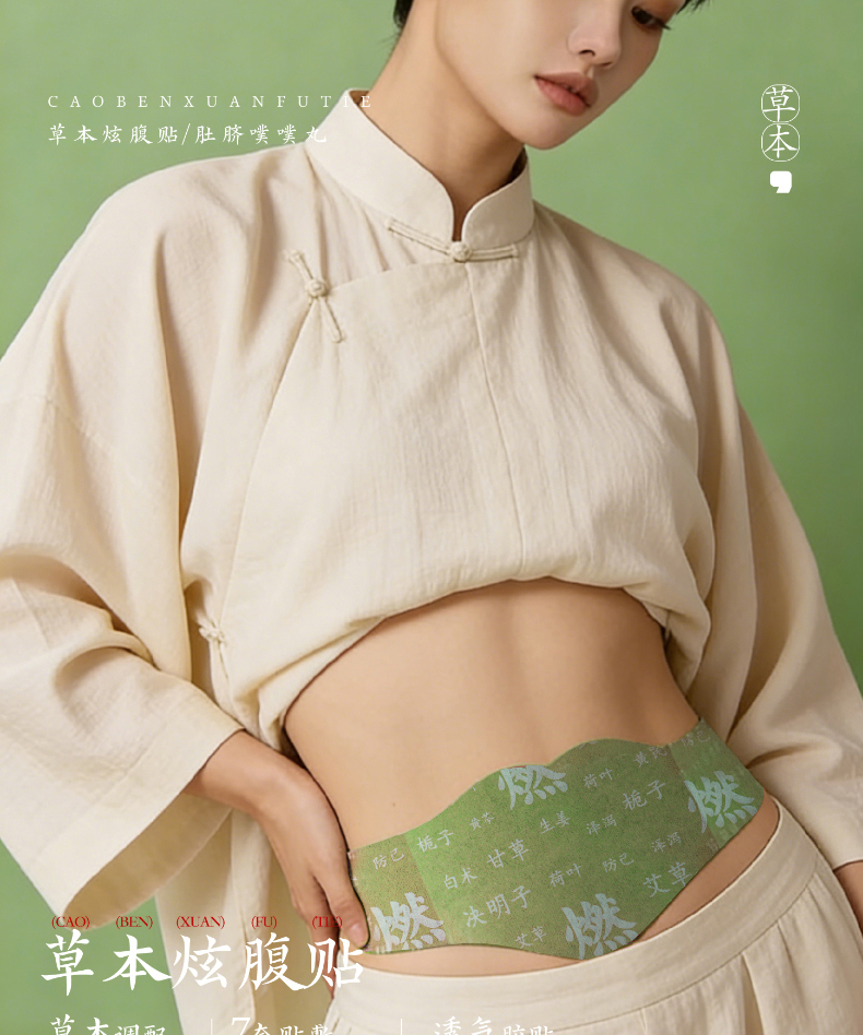 草本炫腹贴 | 艾草腹部敷贴9味草本配方。三段式易贴大尺寸懒人肚脐贴肚脐贴。艾草肉桂生姜花椒栀子决明子甘草泽泻当归胶体层配方。