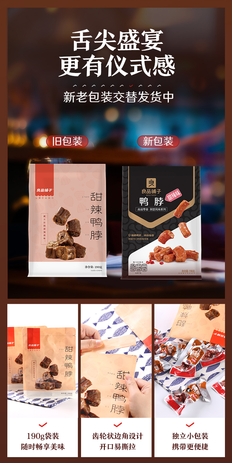 心选丨良品铺子|【直降】鸭脖(甜辣味)190g*3袋
