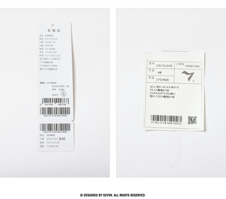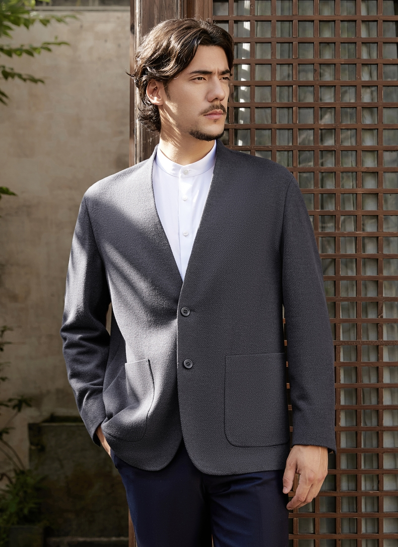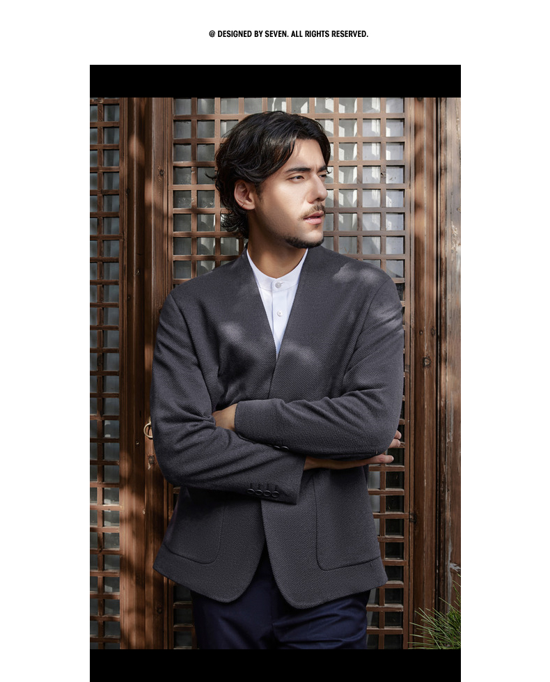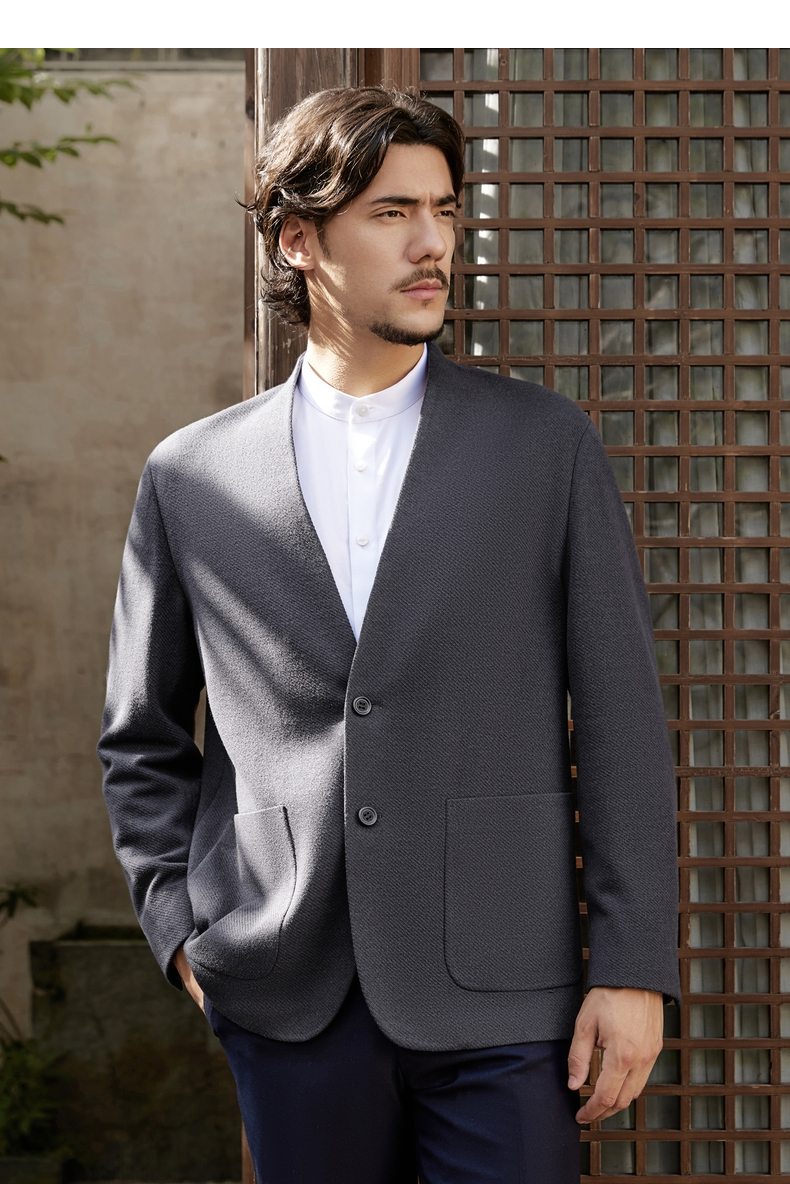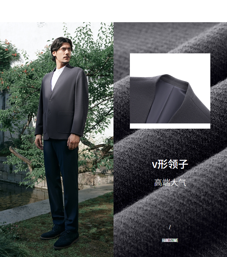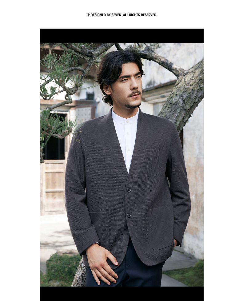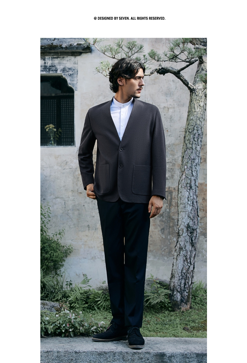 【国风新中式/含羊毛】柒牌休闲西装外套2025V领商务休闲男士单西129C70110