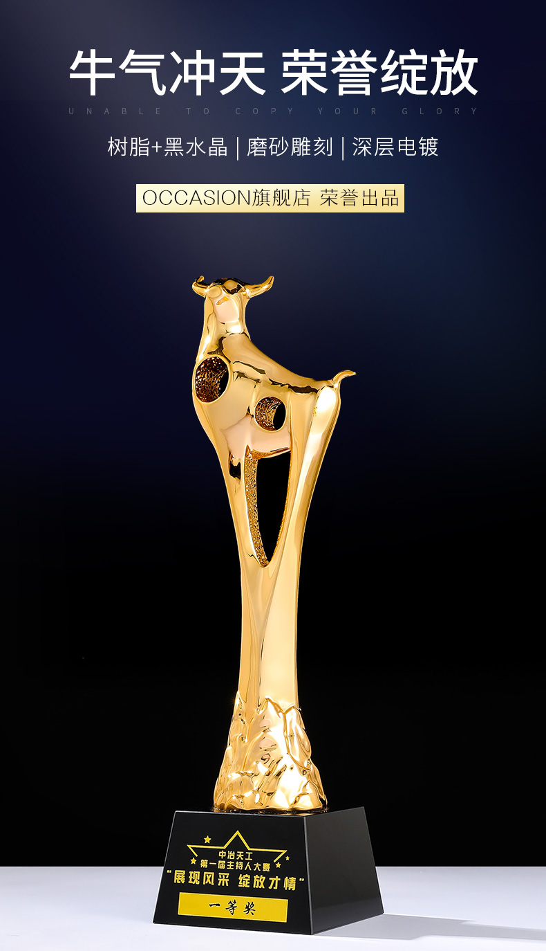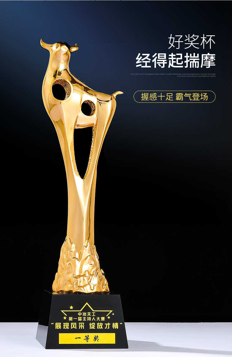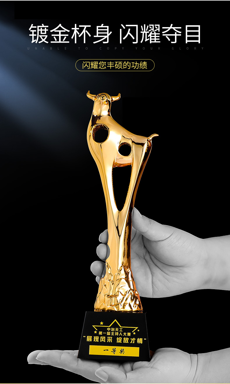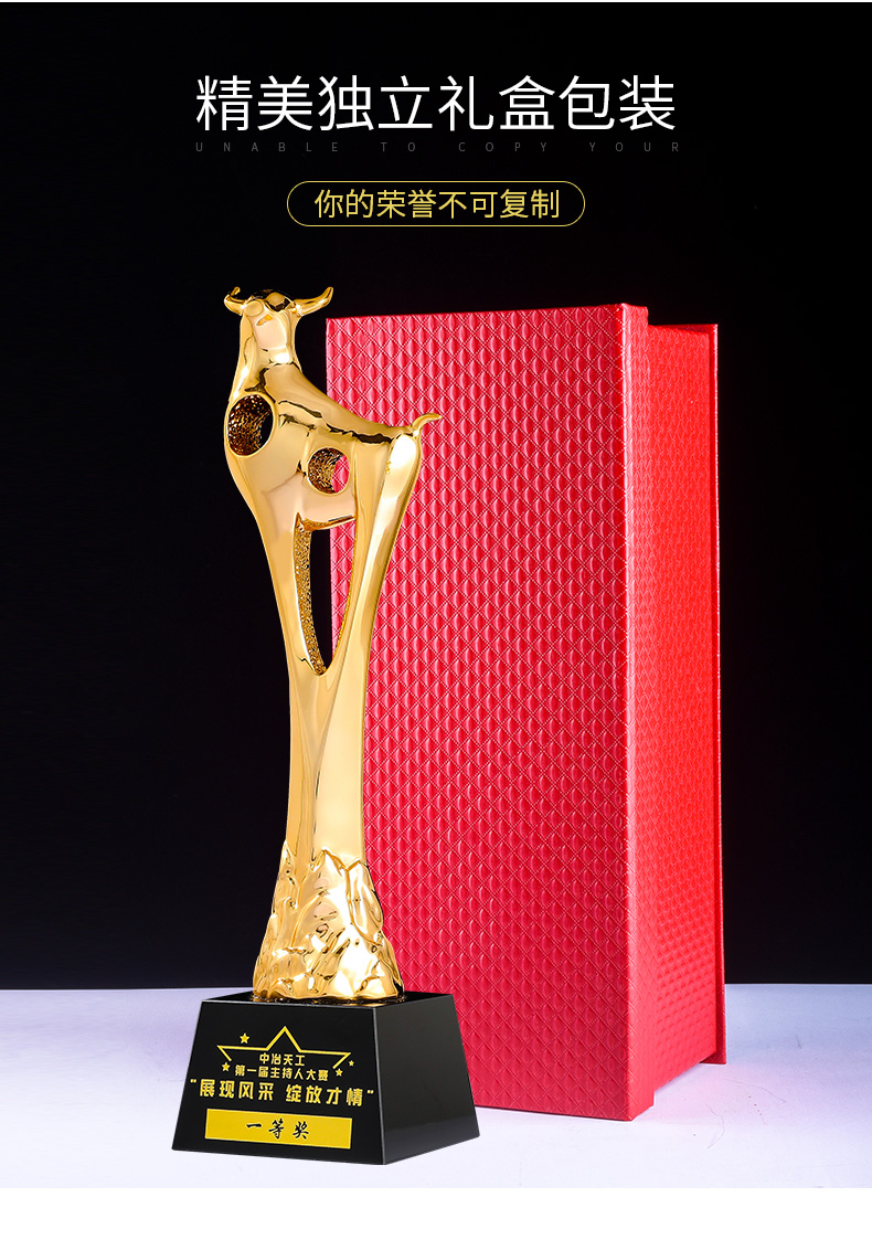 奖杯定制定做牛2021新款高档荣誉表彰奖品纪念品优秀员工比赛刻字