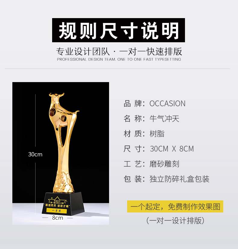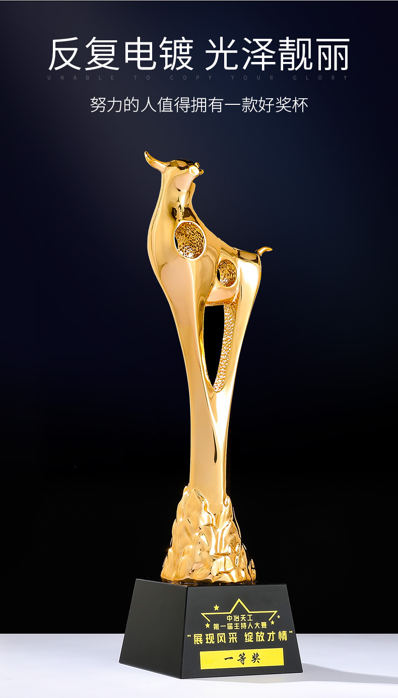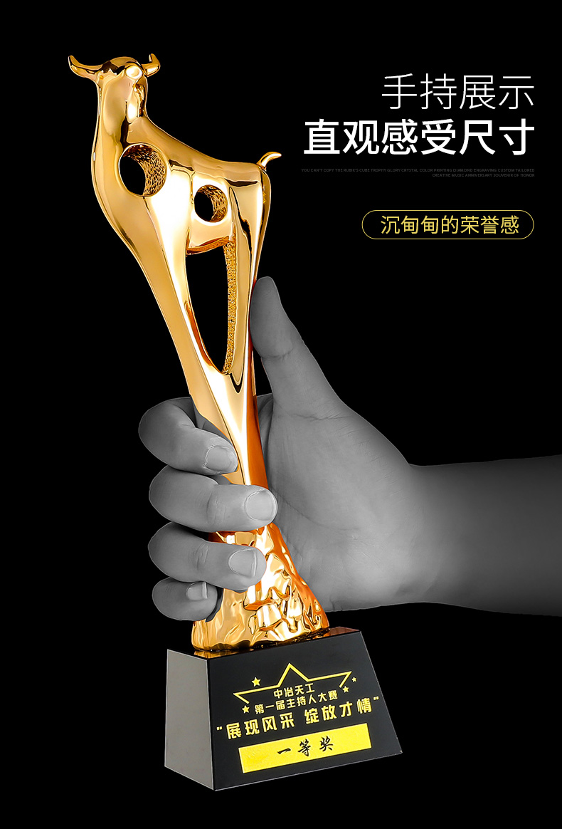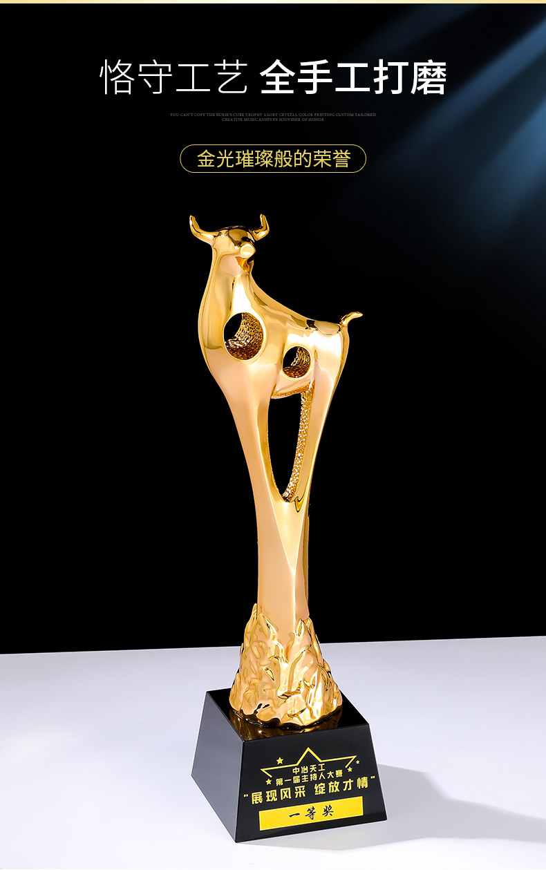 奖杯定制定做牛2021新款高档荣誉表彰奖品纪念品优秀员工比赛刻字