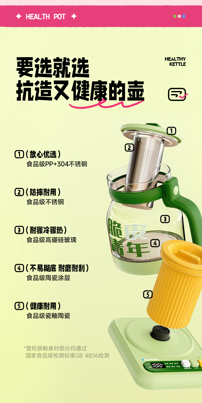 【产品明细】:底座、壶身、茶滤网、壶盖、说明书
