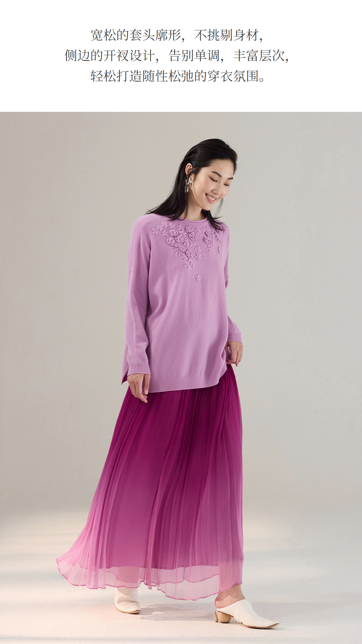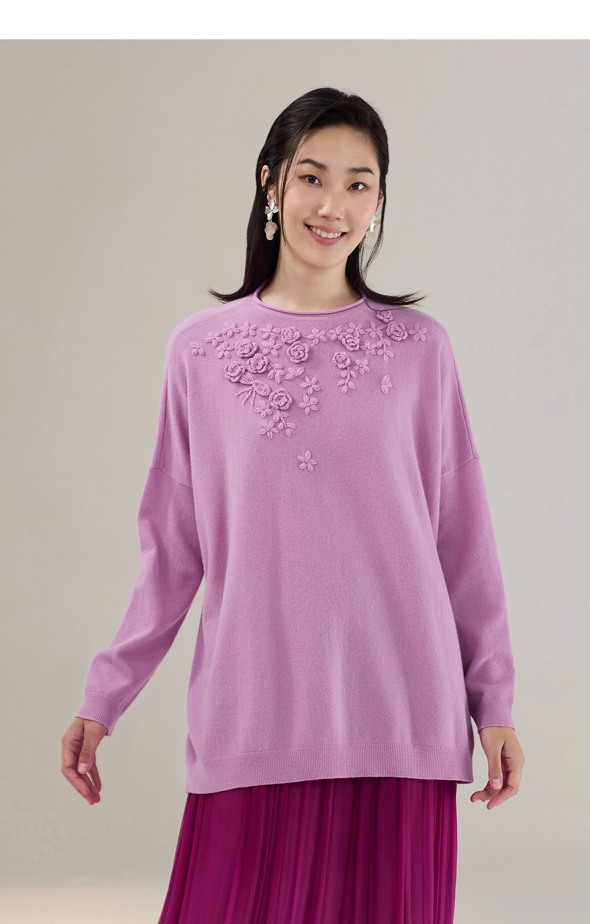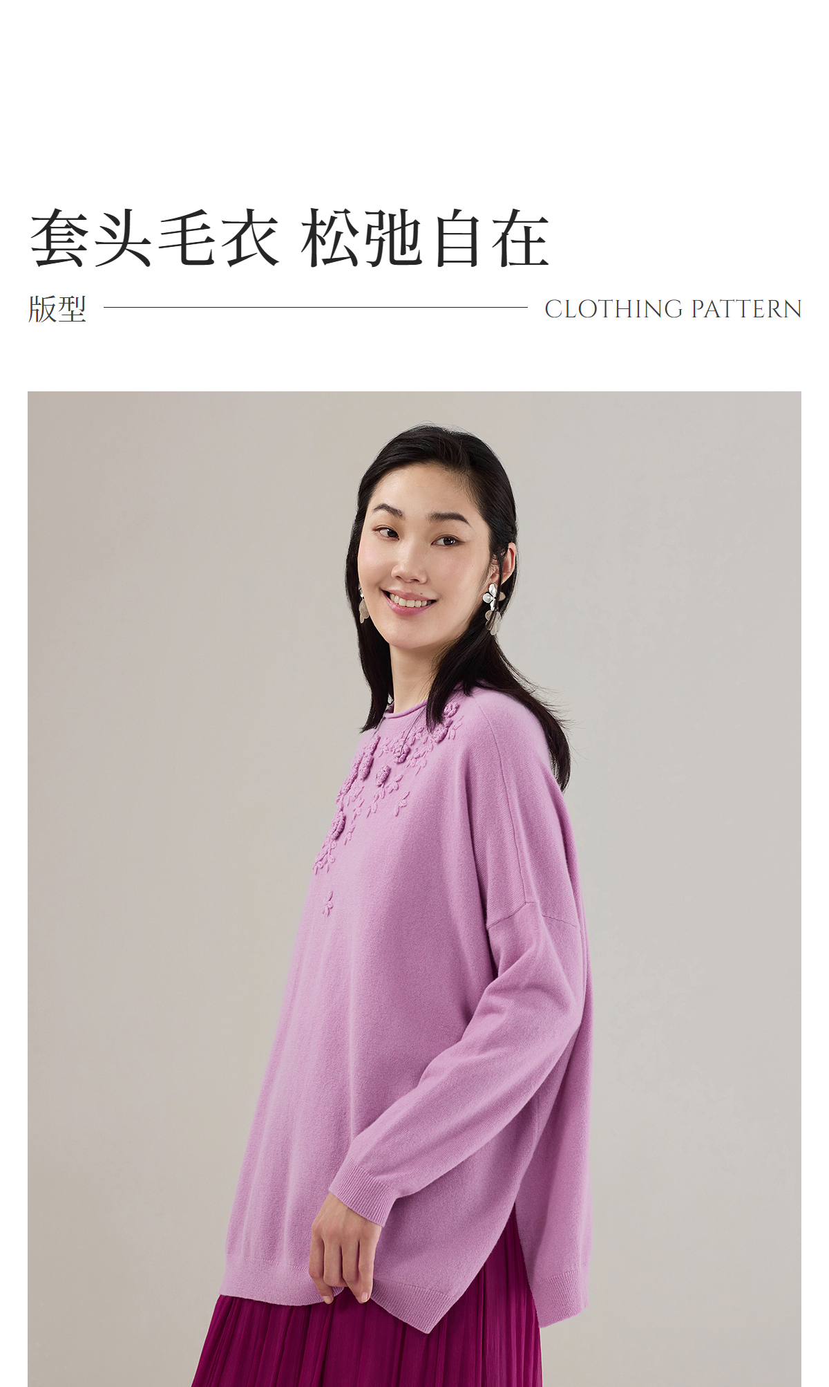 【林栖设计小店】【手工钩花】木槿听风系列绵羊毛毛织上衣绣花2025秋季新款套头毛衣女1953020
