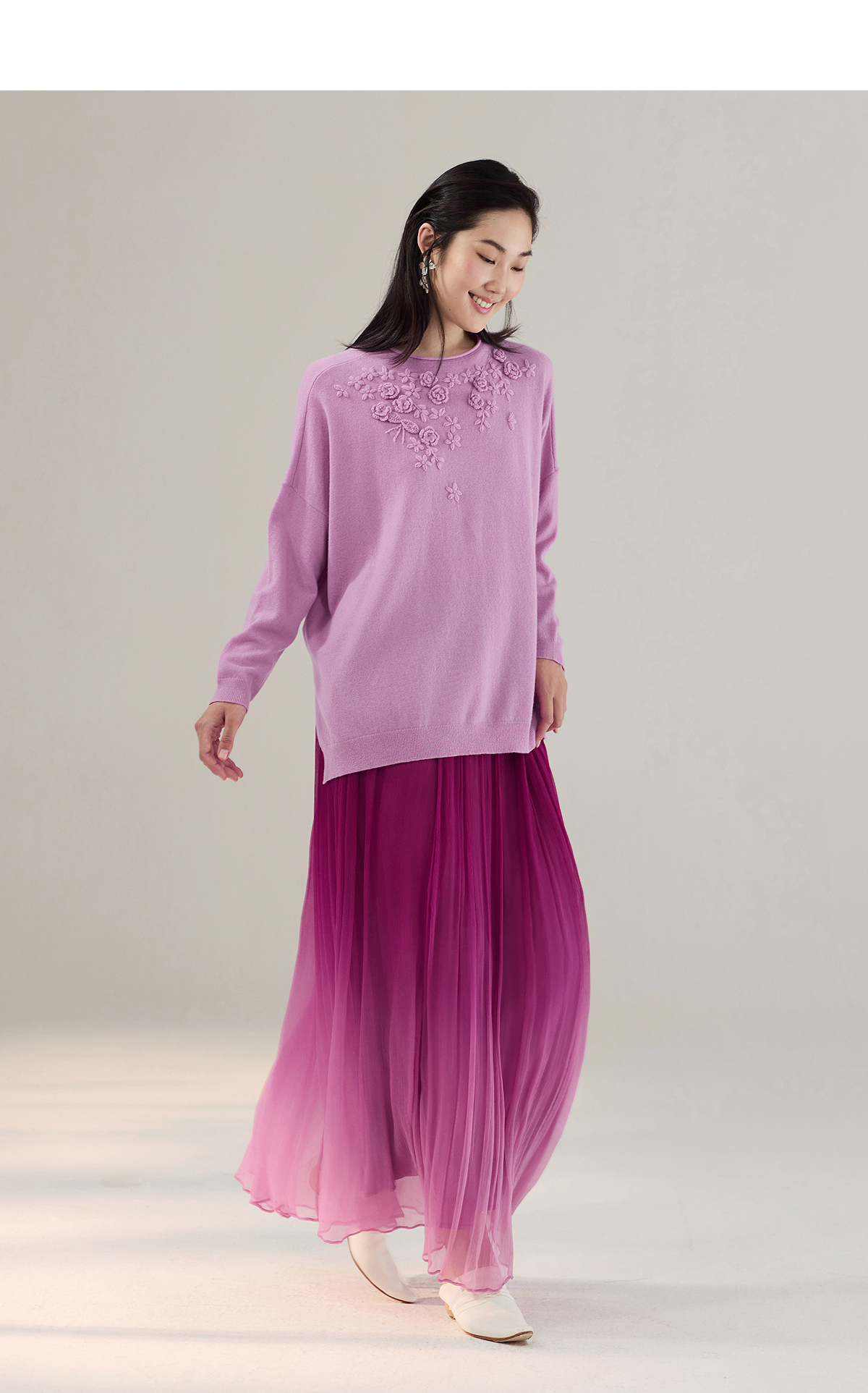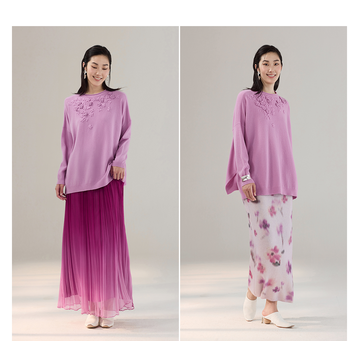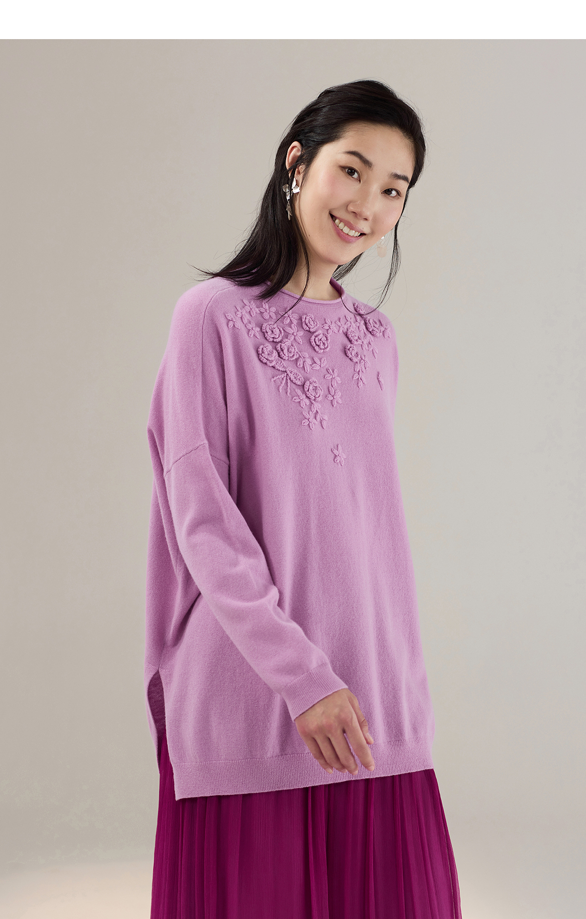【林栖设计小店】【手工钩花】木槿听风系列绵羊毛毛织上衣绣花2025秋季新款套头毛衣女1953020